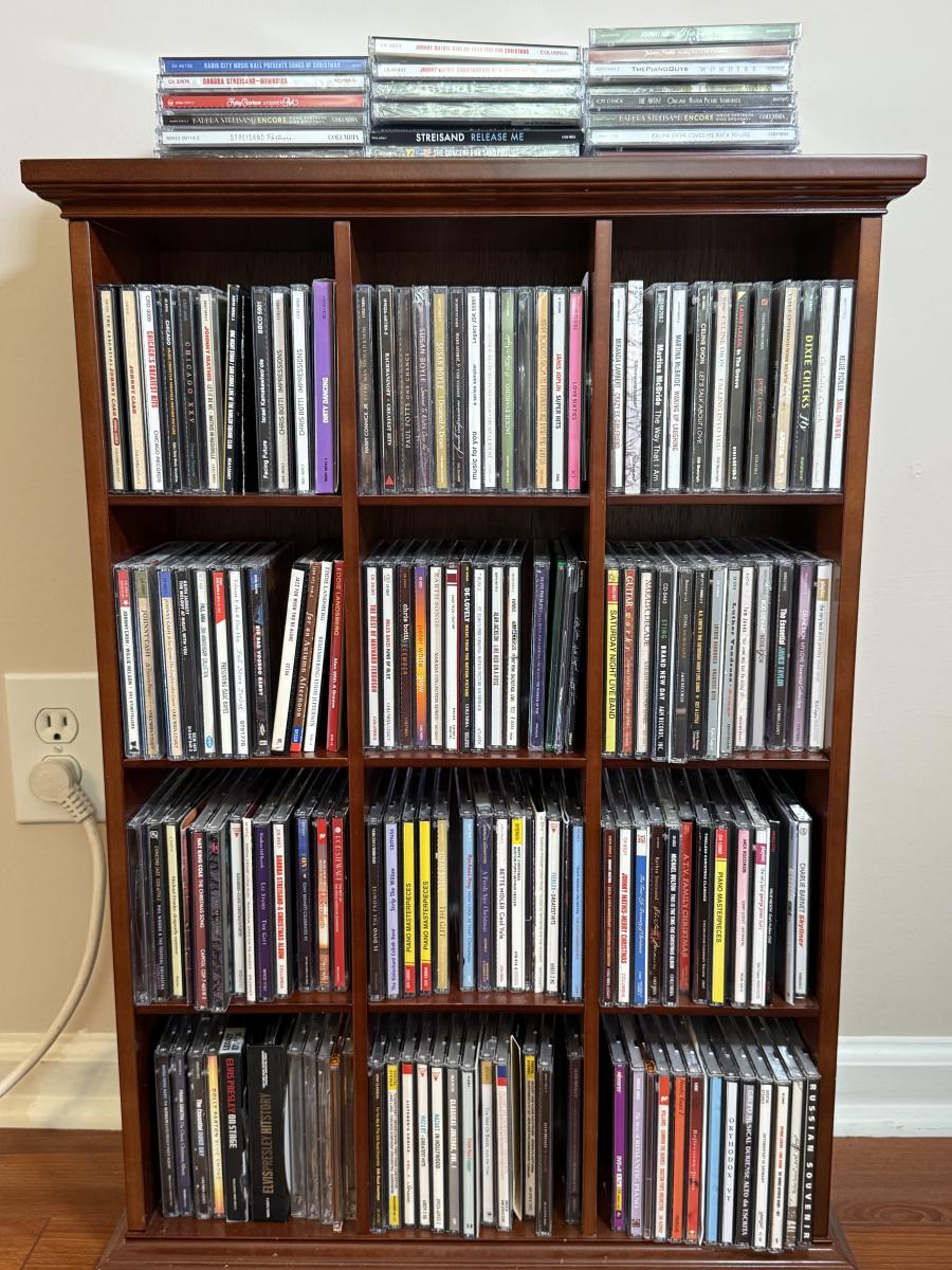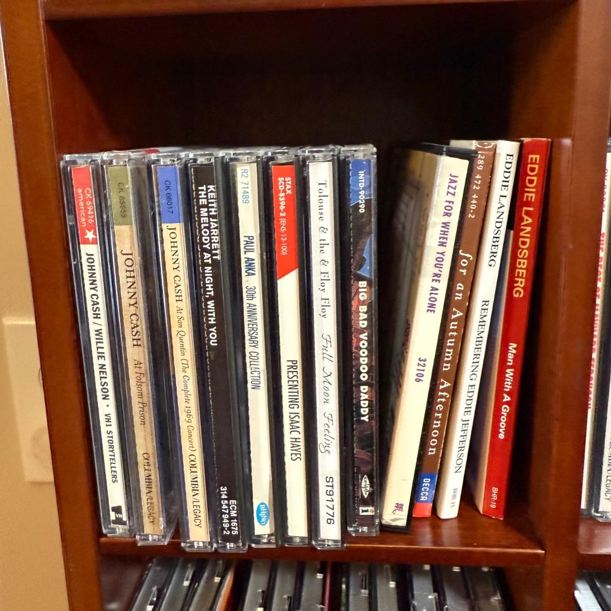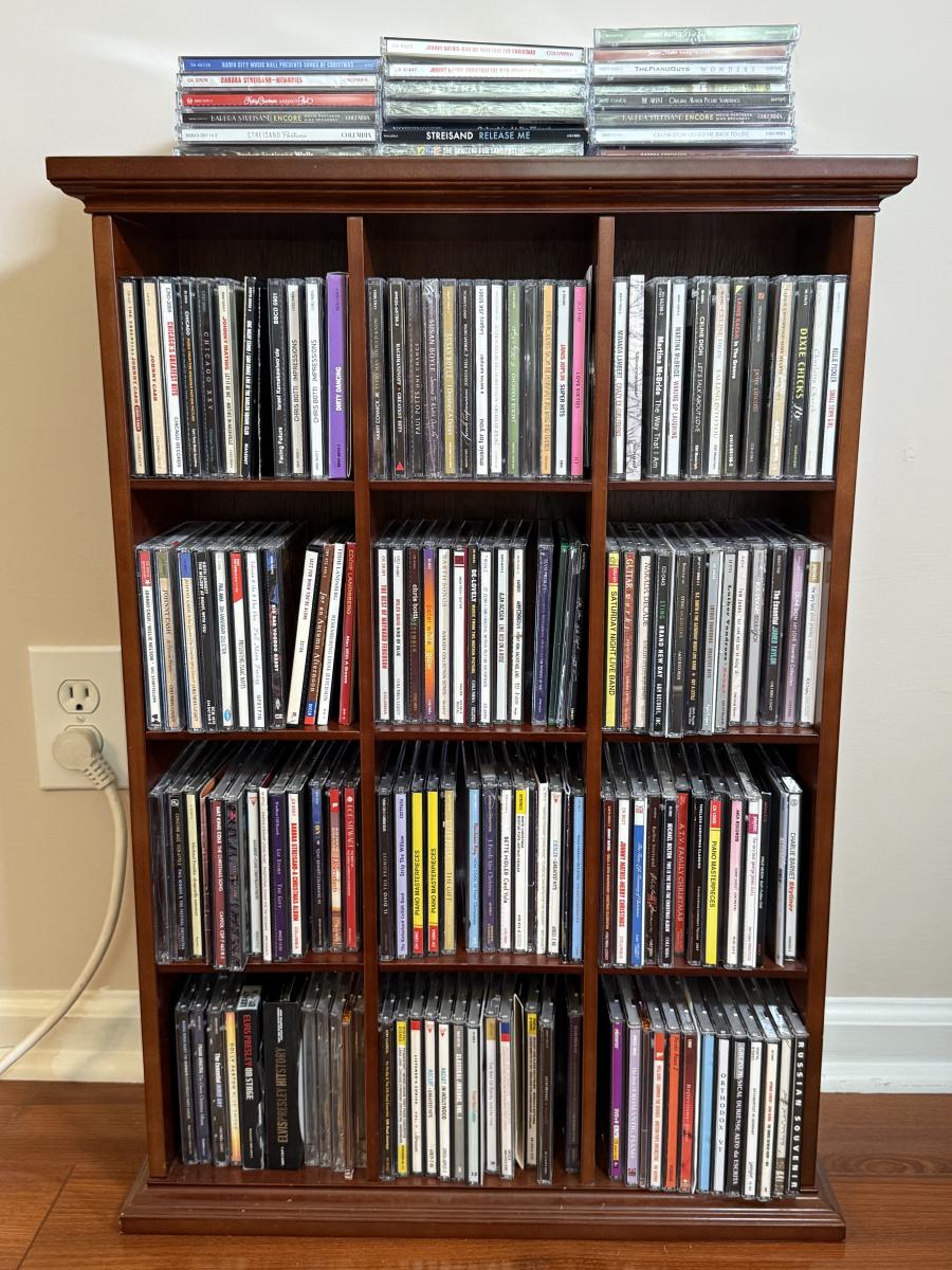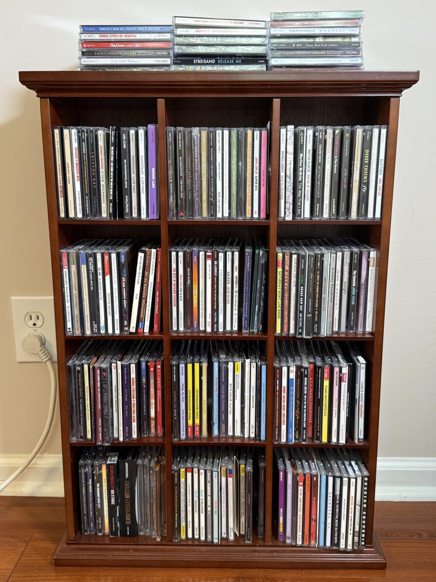 LOT 36D: Wood CD Display Shelf w/ Huge Collection of CDs - Variety of Artists & Genres