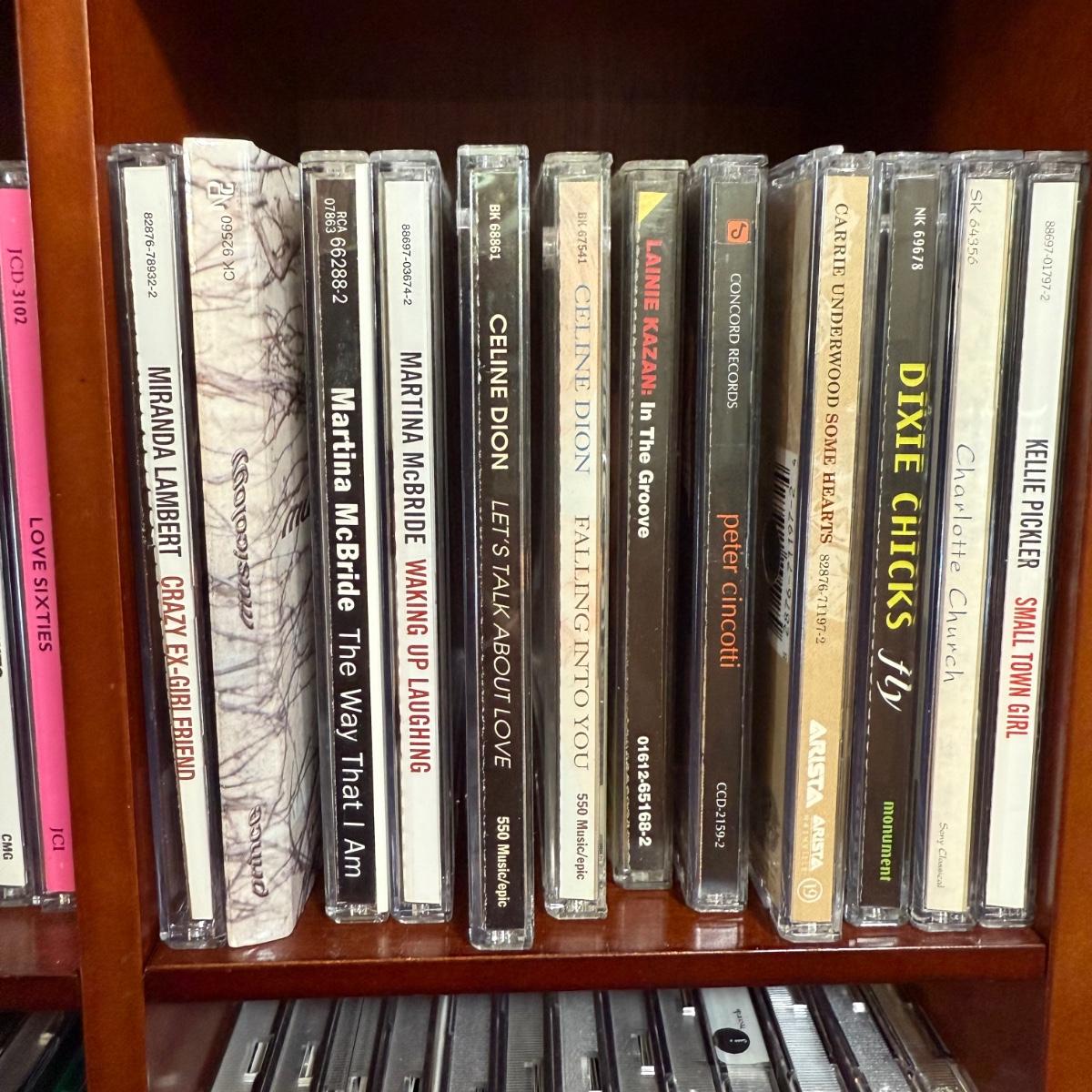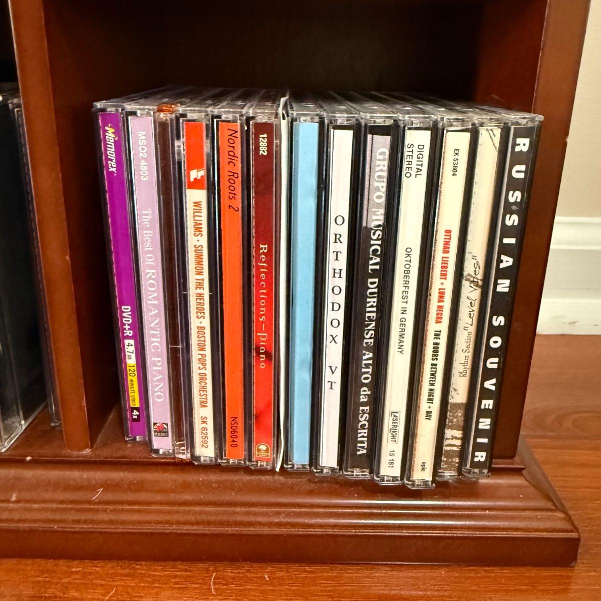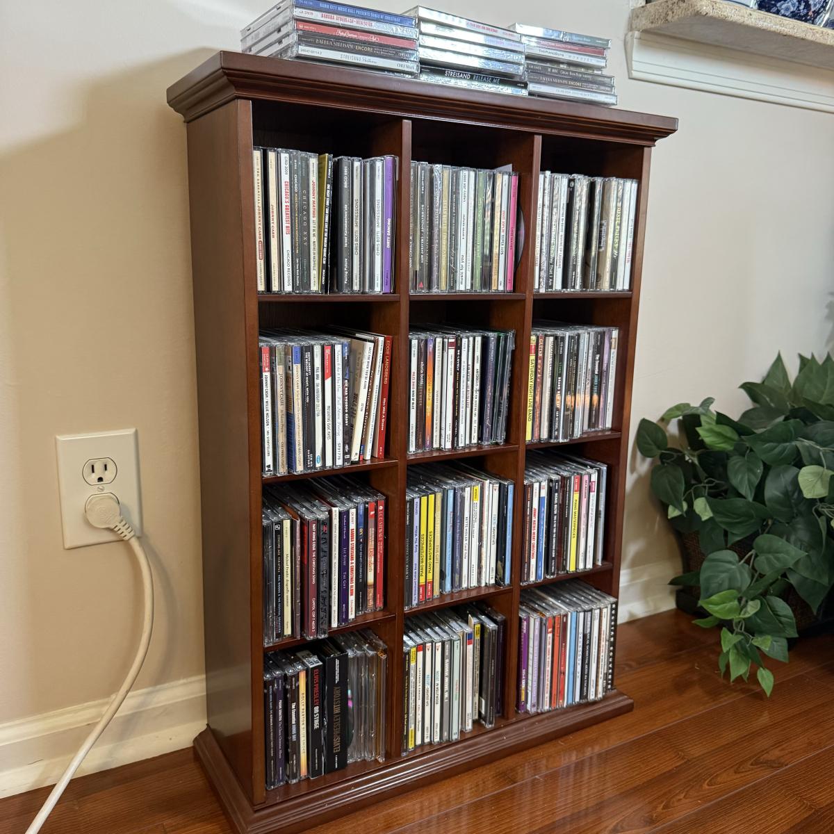 LOT 36D: Wood CD Display Shelf w/ Huge Collection of CDs - Variety of Artists & Genres