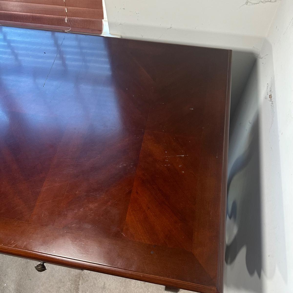 56x28x30”, some scratches on desk and chair has some condition issues - Please see all pictures as they are the best representation of the items. The pictures show condition, measurements if taken, and what is included in the lot. Due to the large amount that we photograph and the time frame, we are not always able to take measurements. All items unless noted, are pre-owned and have been used. If you purchased furniture, you must bring help. We do not allow one person to carry large furniture out on their own. Bring help, tools and a truck for the safety of our client’s homes, and your personal safety. Any damages that result to the property including walls, and floors due to moving of the furniture will be charged to the buyer. Company policy. Thank you.