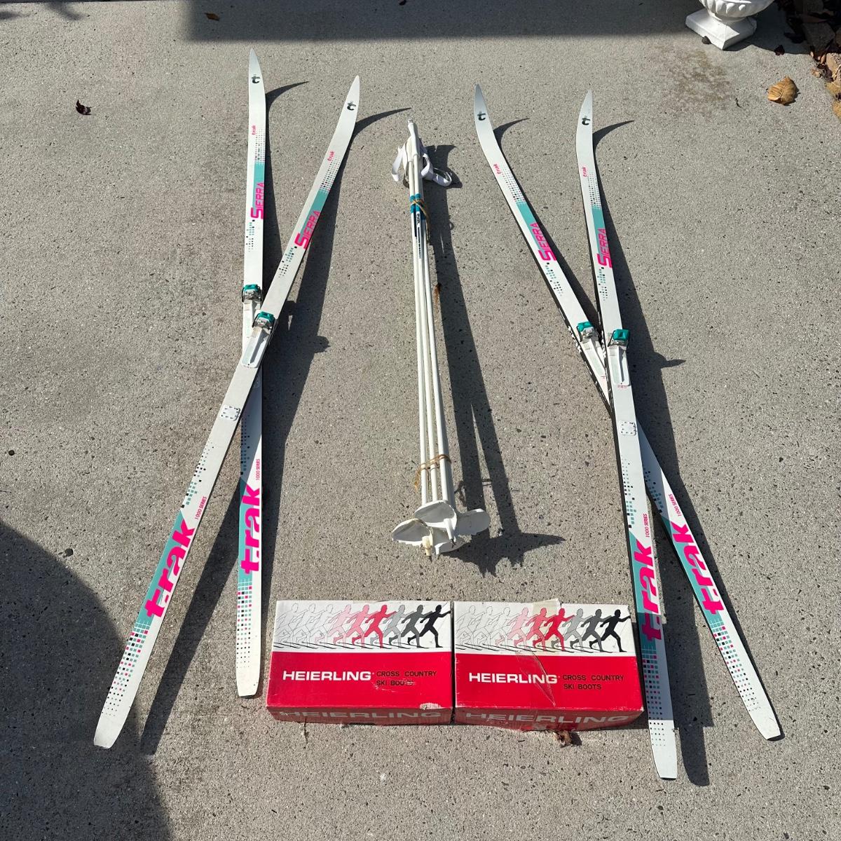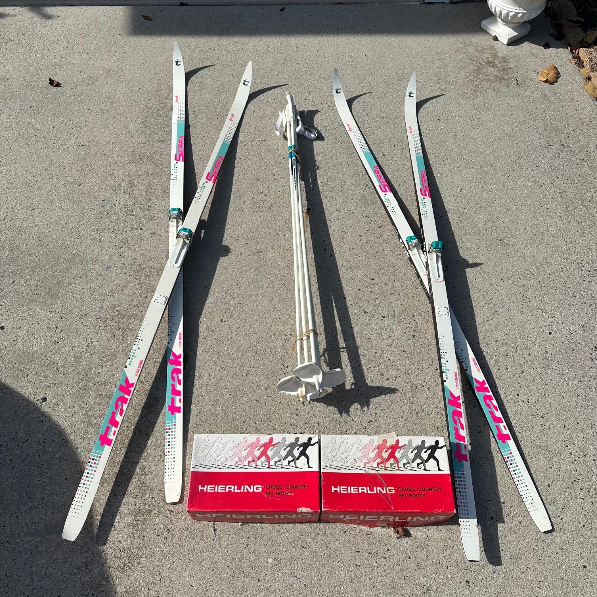 LOT 68G: 2 Sets Of Trak 1000 Series Cross Country Skis, Poles & 2 Pairs of Heierling Ski Boots
