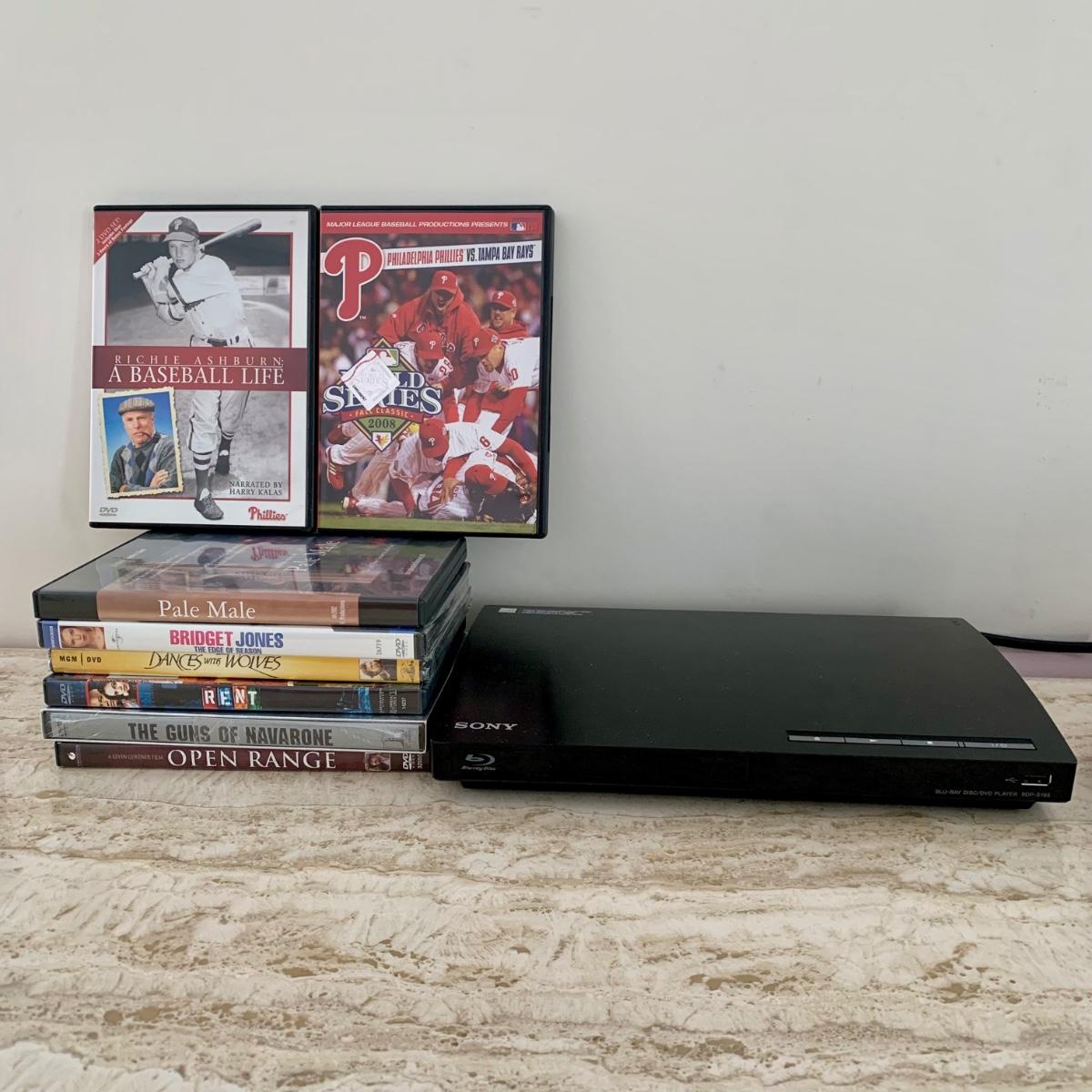 LOT 85 M: Sony Blue-Ray Disc / DVD Player Model #BDP-S185 & DVDs: World Series Fall Classic 2008 Phillies VS Rays, Richie Ashburn A Baseball Life, & More