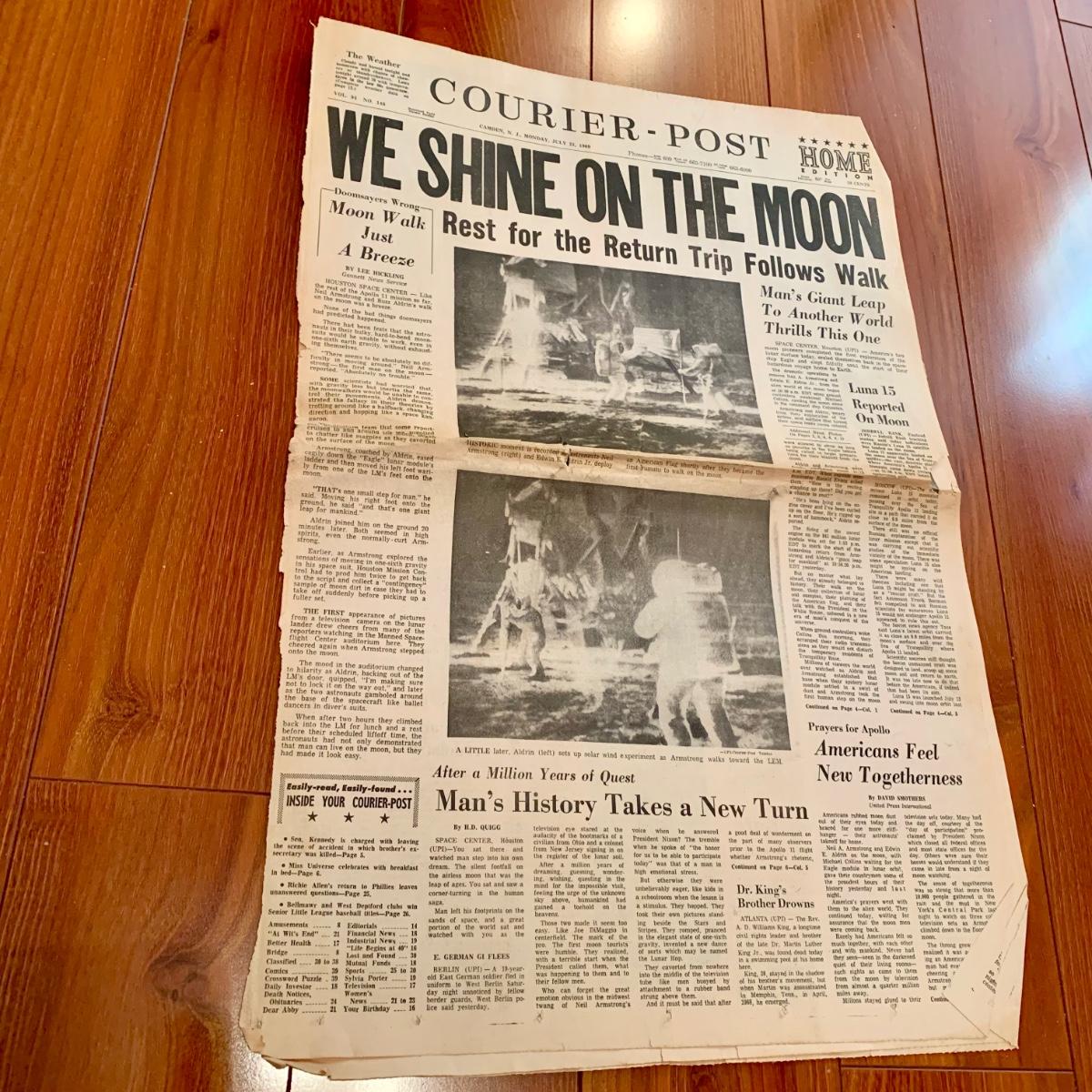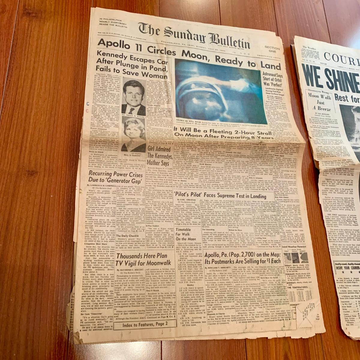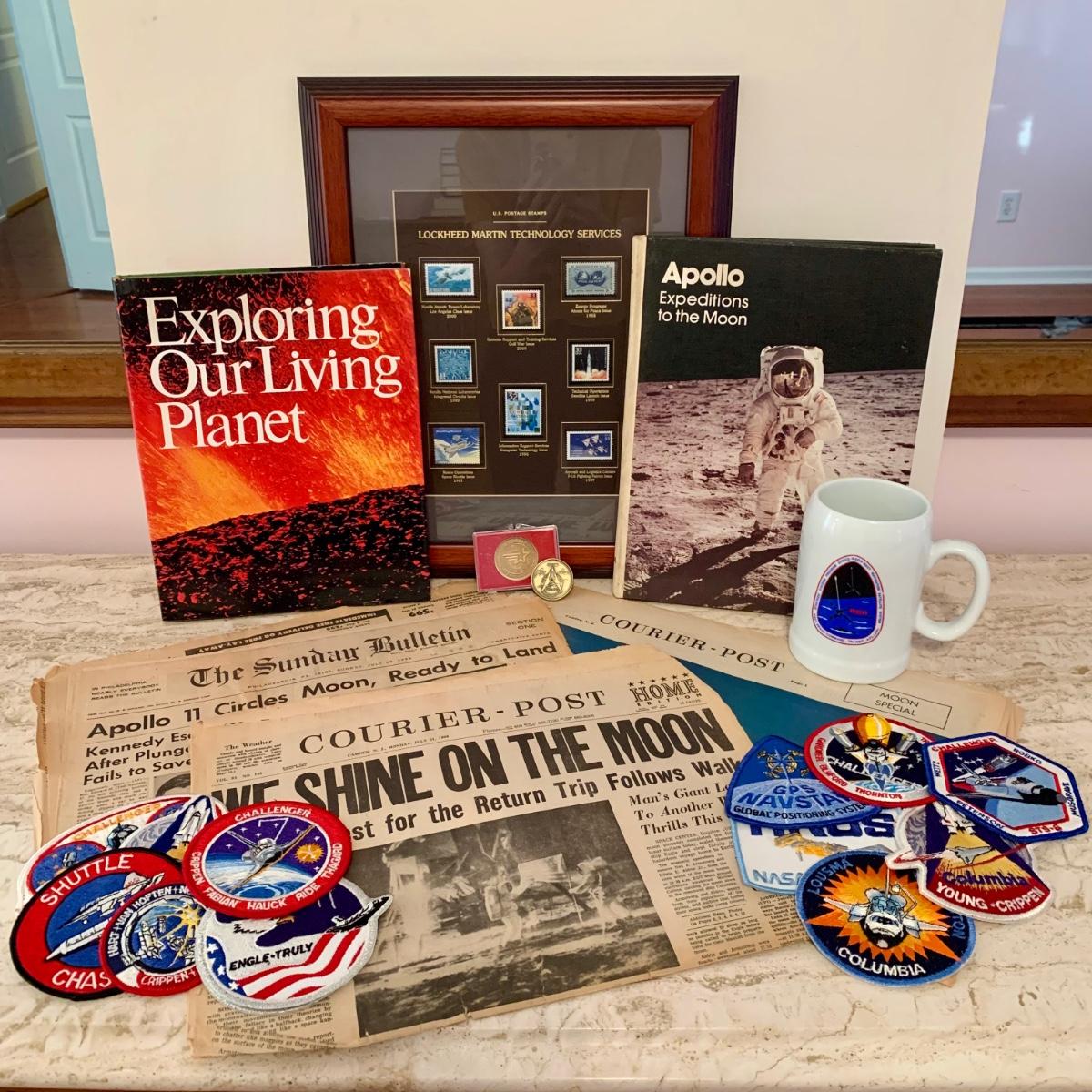 LOT 91 M: Space Collection: Stamps, Books, Mug, 1969 Newspapers, Collector Coins, & Embroidered Patches