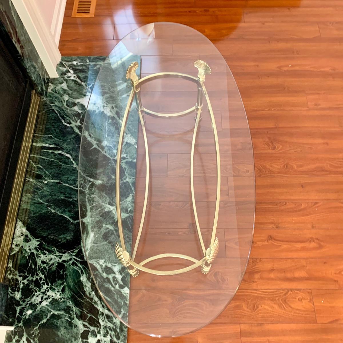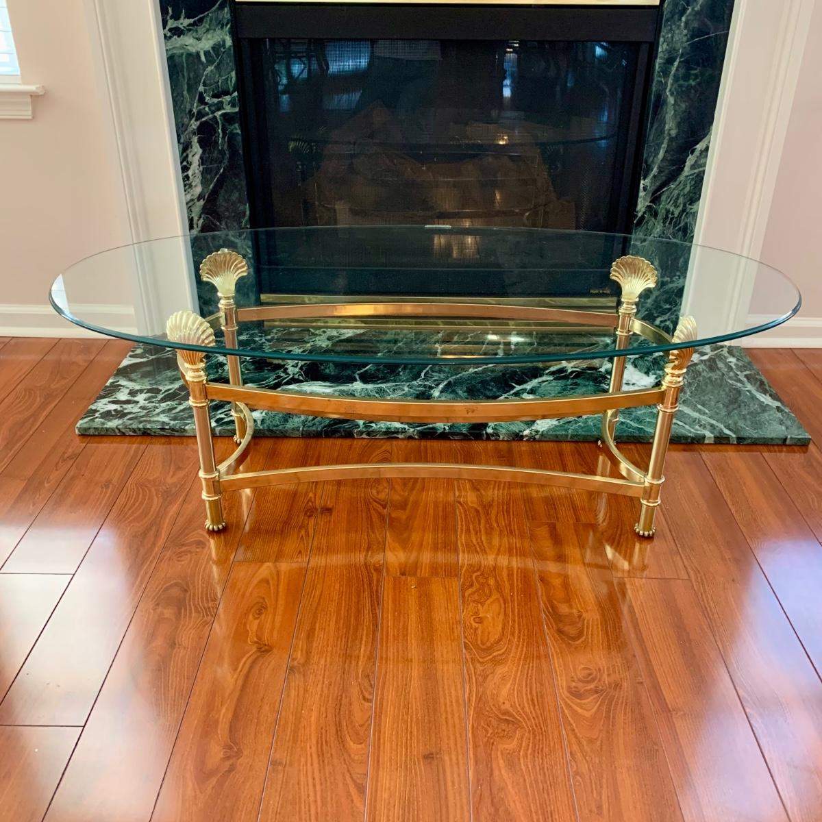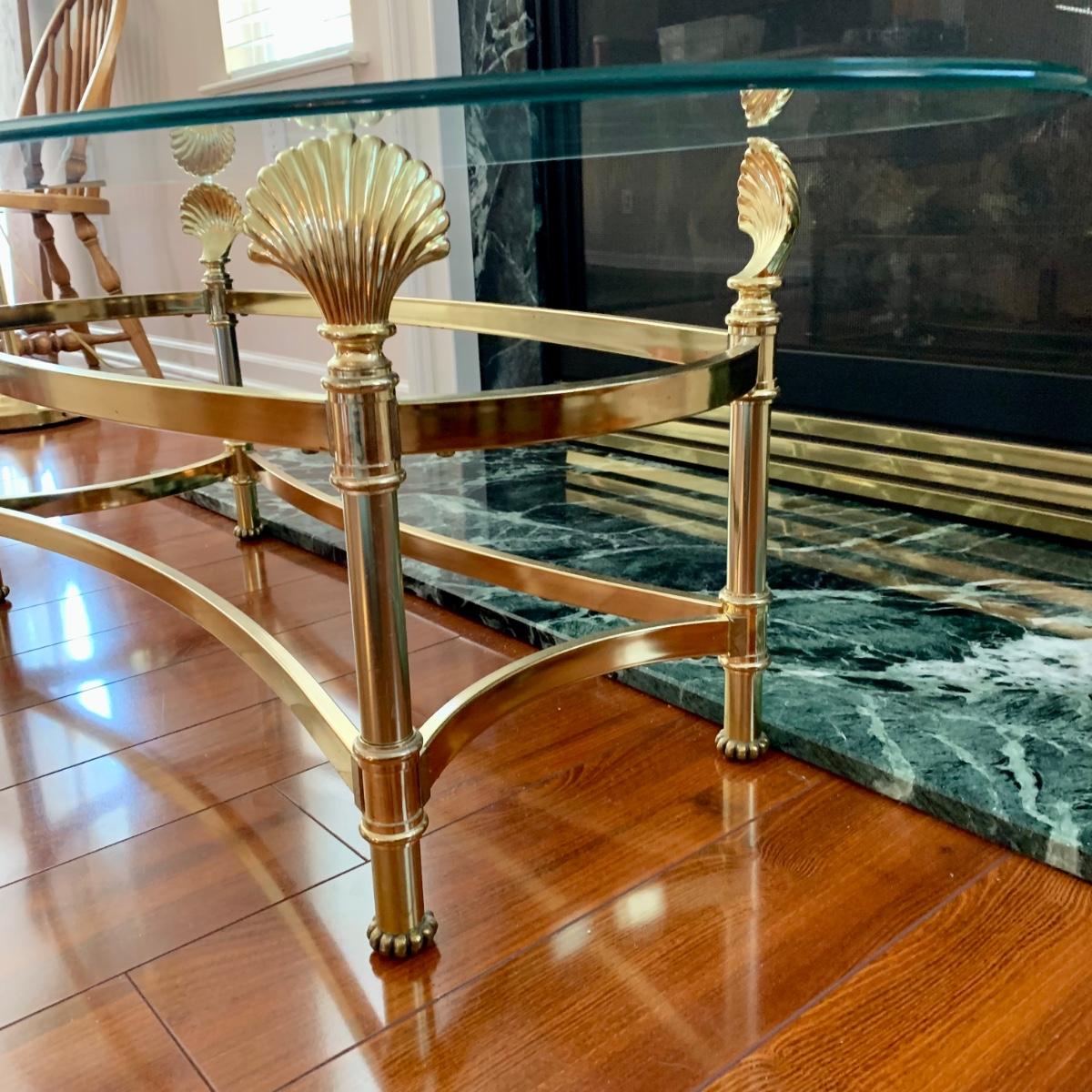LOT 96 D: Vintage Hollywood Regency MCM Brass Shell Glass Top Coffee Table