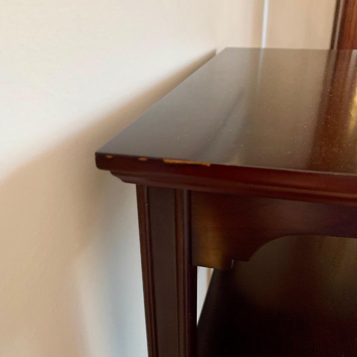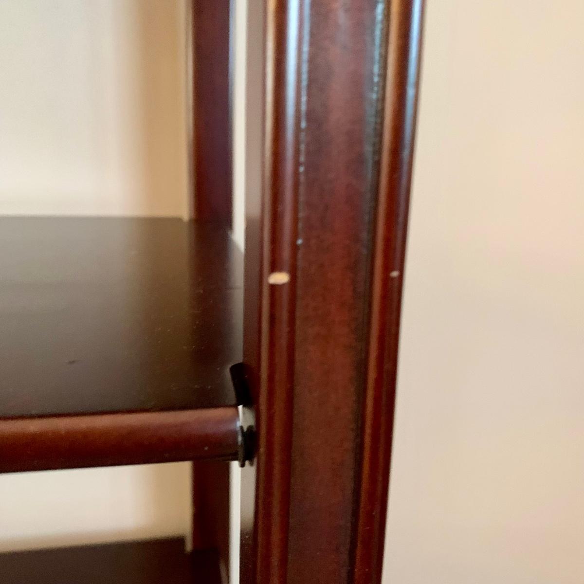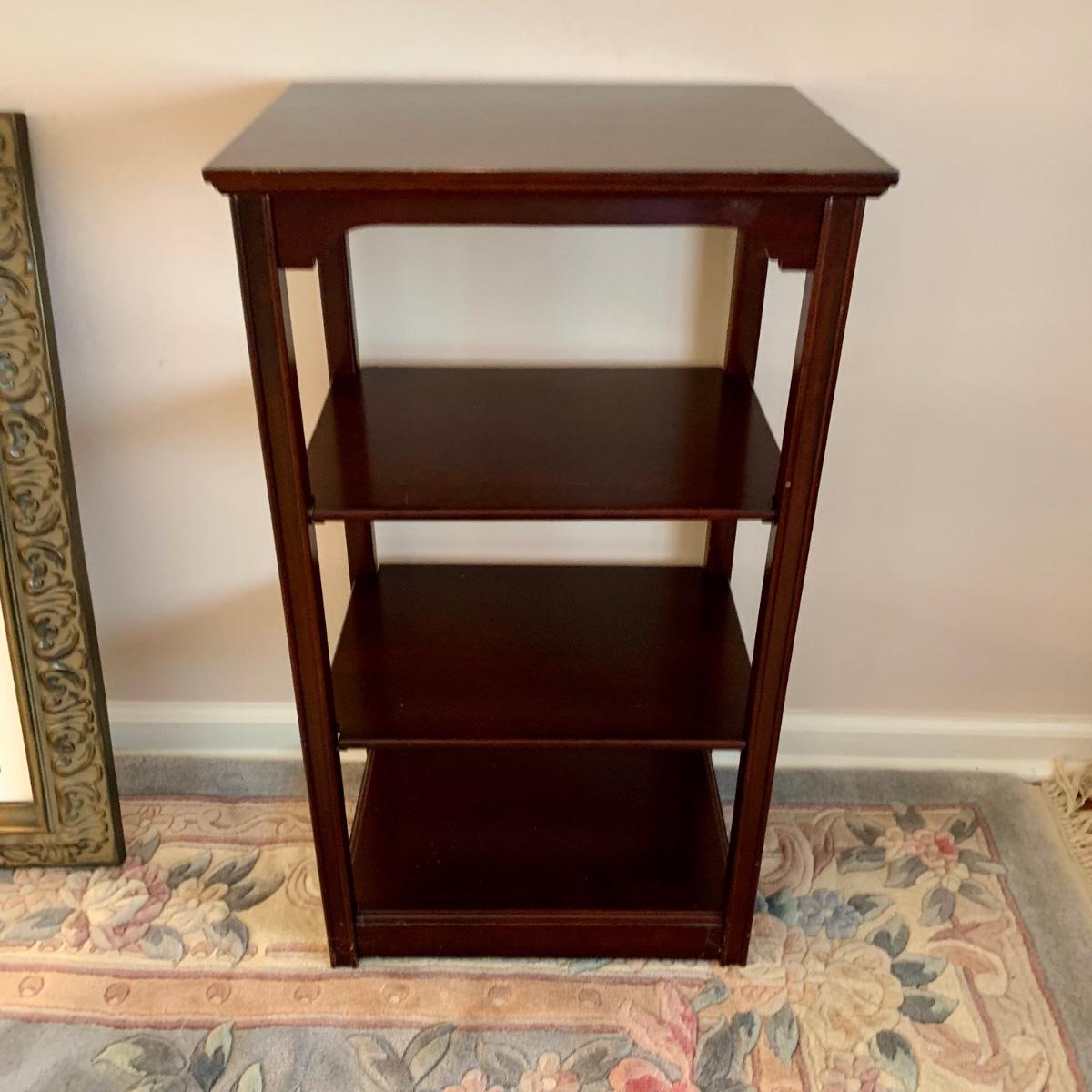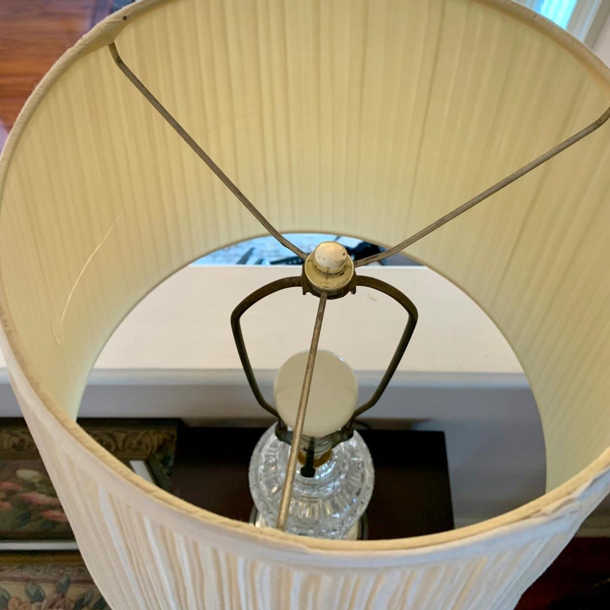 LOT 98 D: 4 Tier Shelf Side Table, Cut Crystal Lamp, & Framed Floral Print