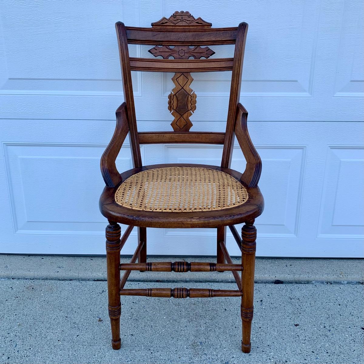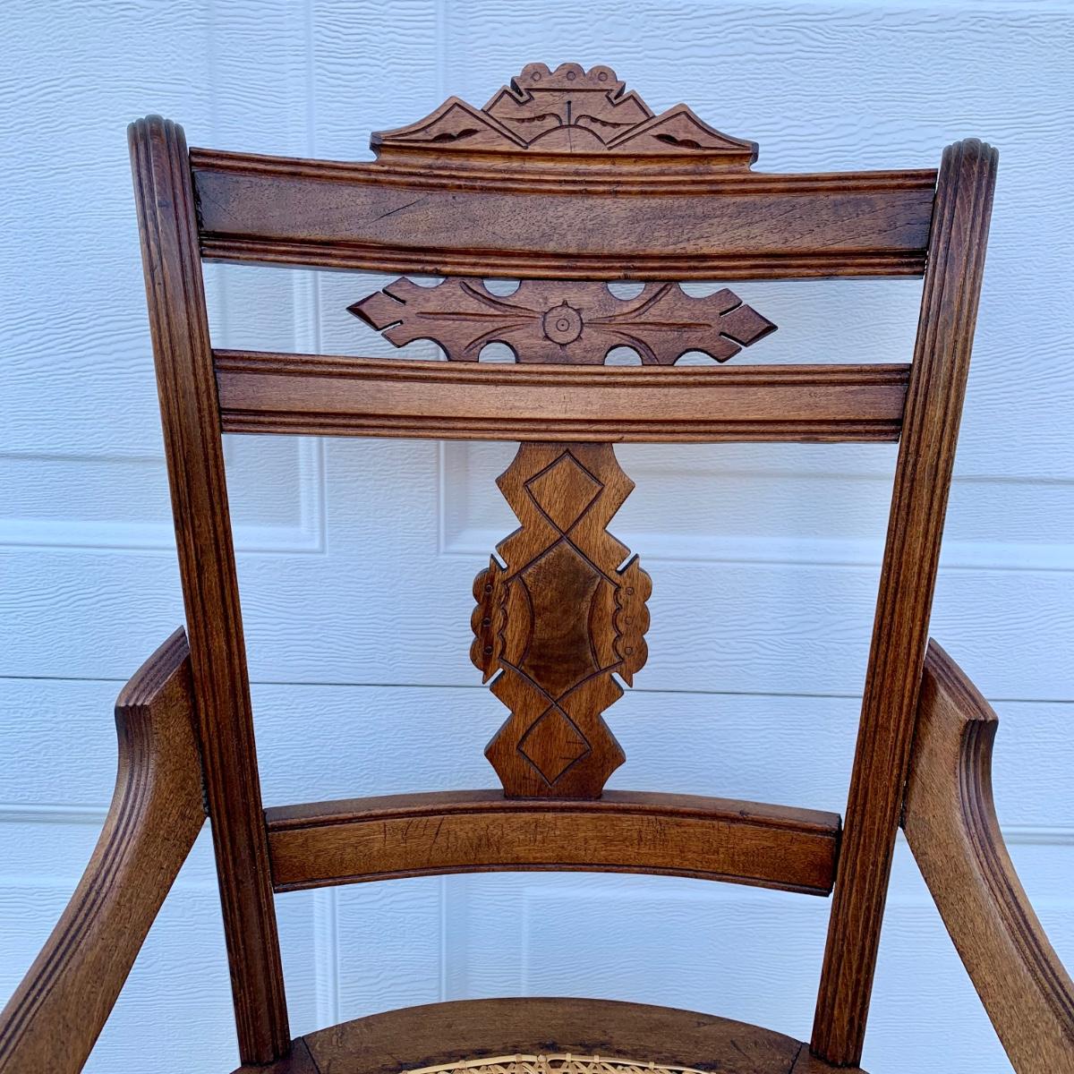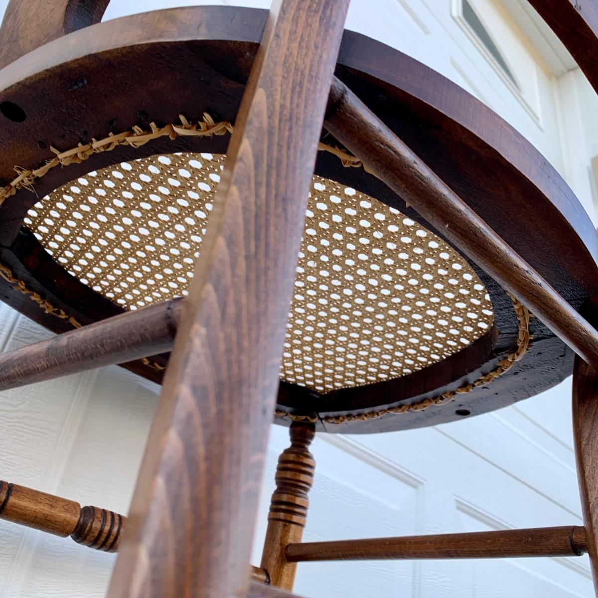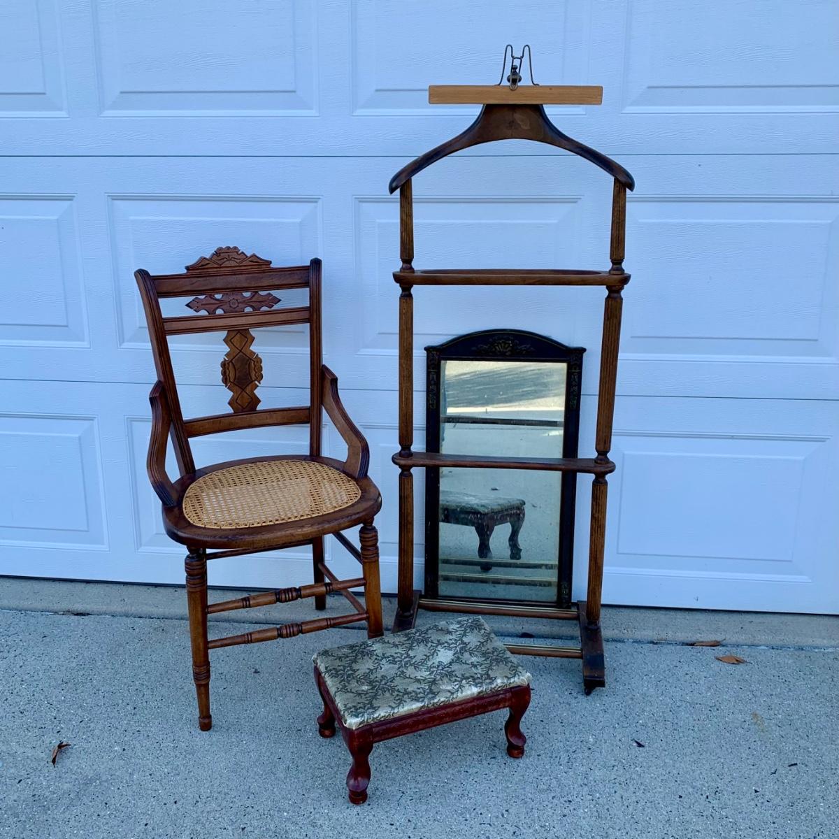 LOT 102 M: Antique / Vintage Victorian Style Carved Wooden Chair w/ Refurbished Cane Seat, Tall French Butler / Valet Stand, Carved Wooden Mirror, & French Carved Wooden Foot Stool