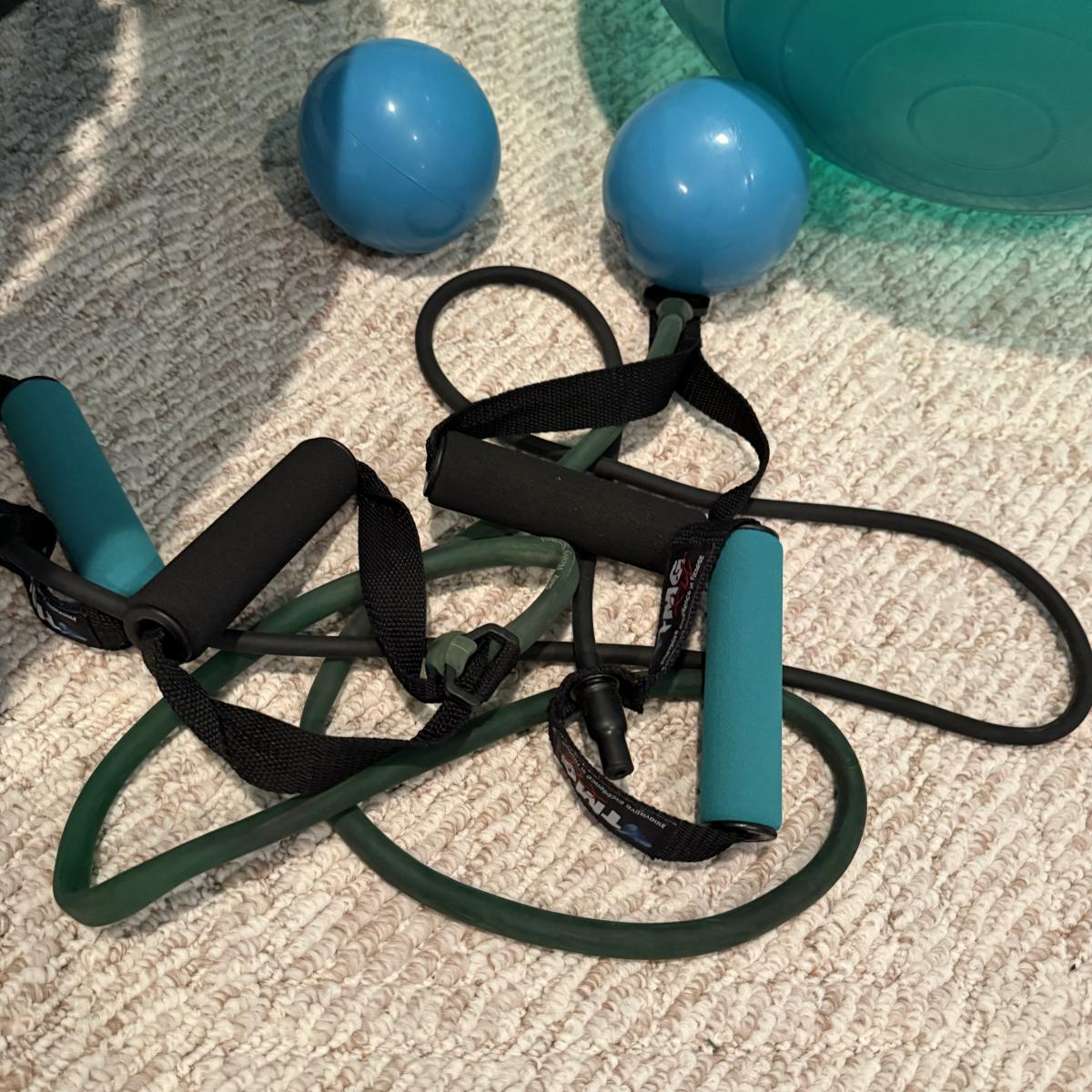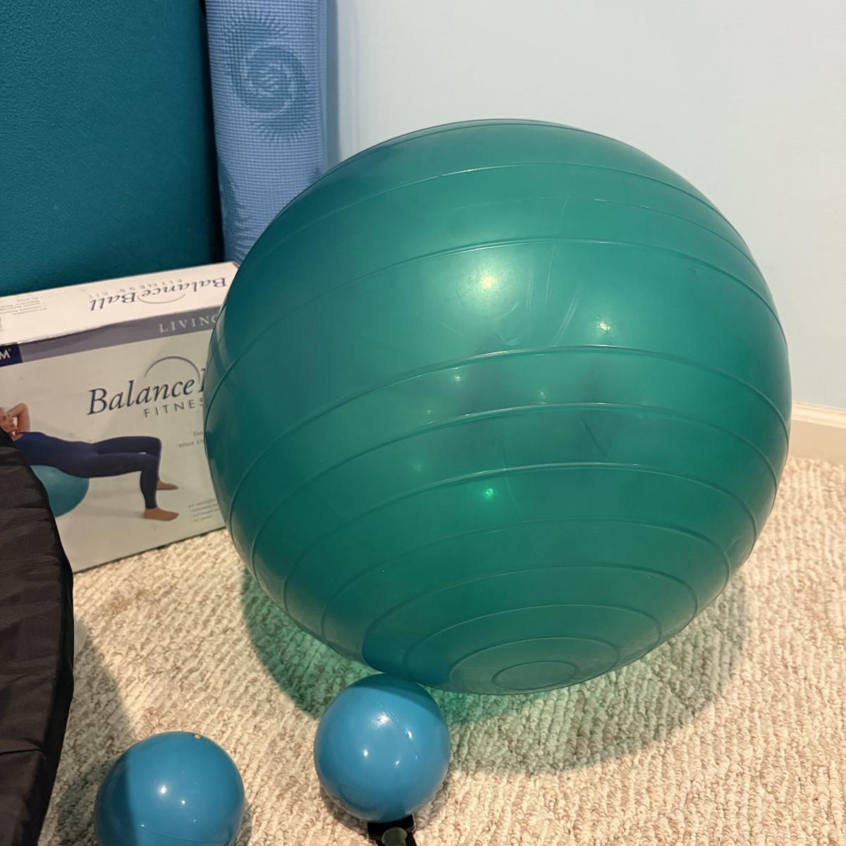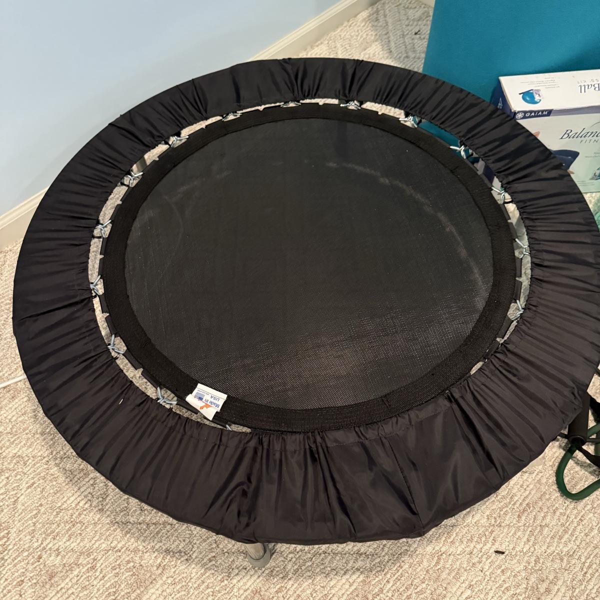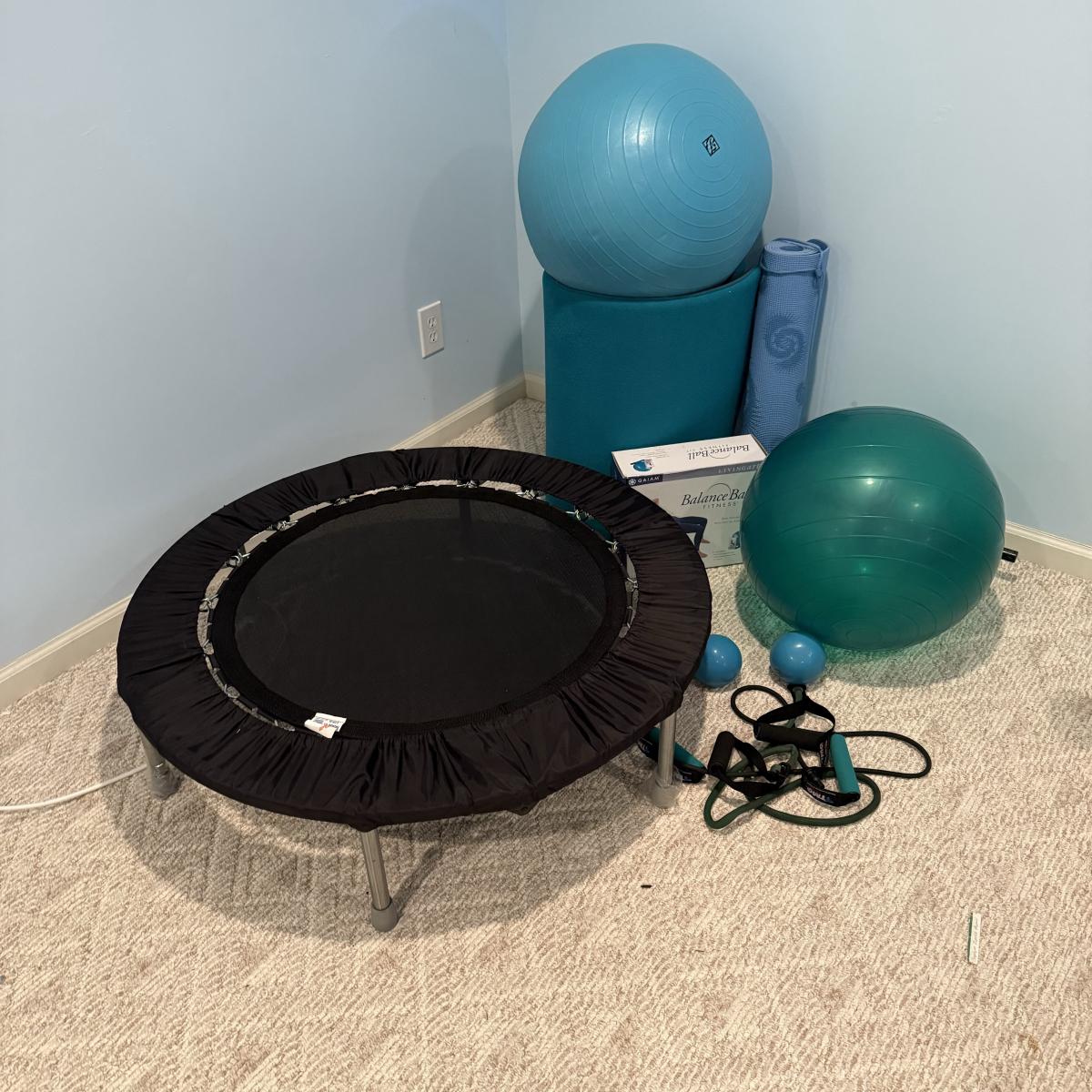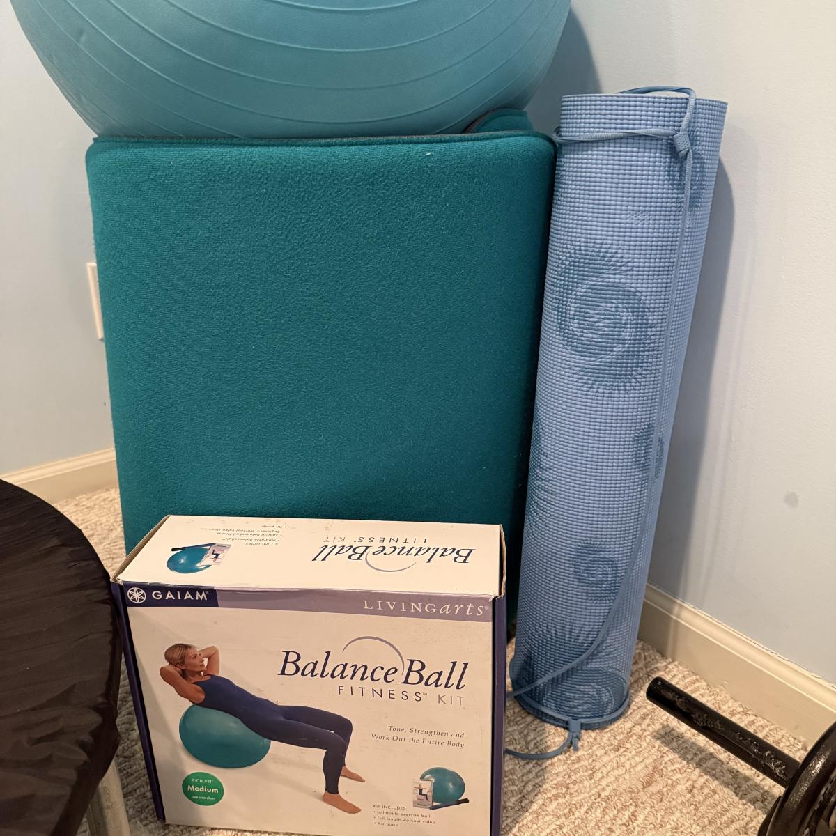 LOT 120B: Home Work Out Equipment- Trampoline, Exercise Balls, Yoga Mat & More