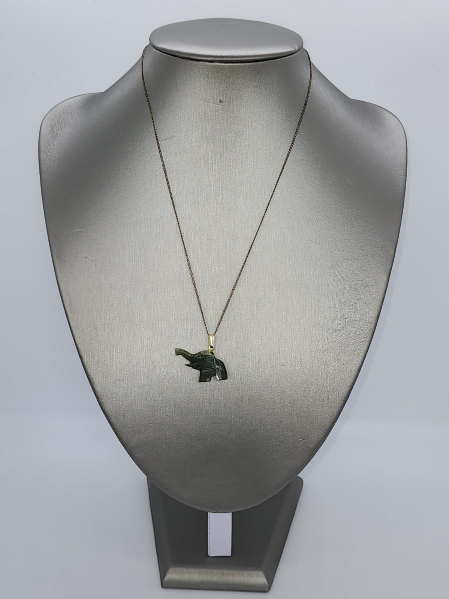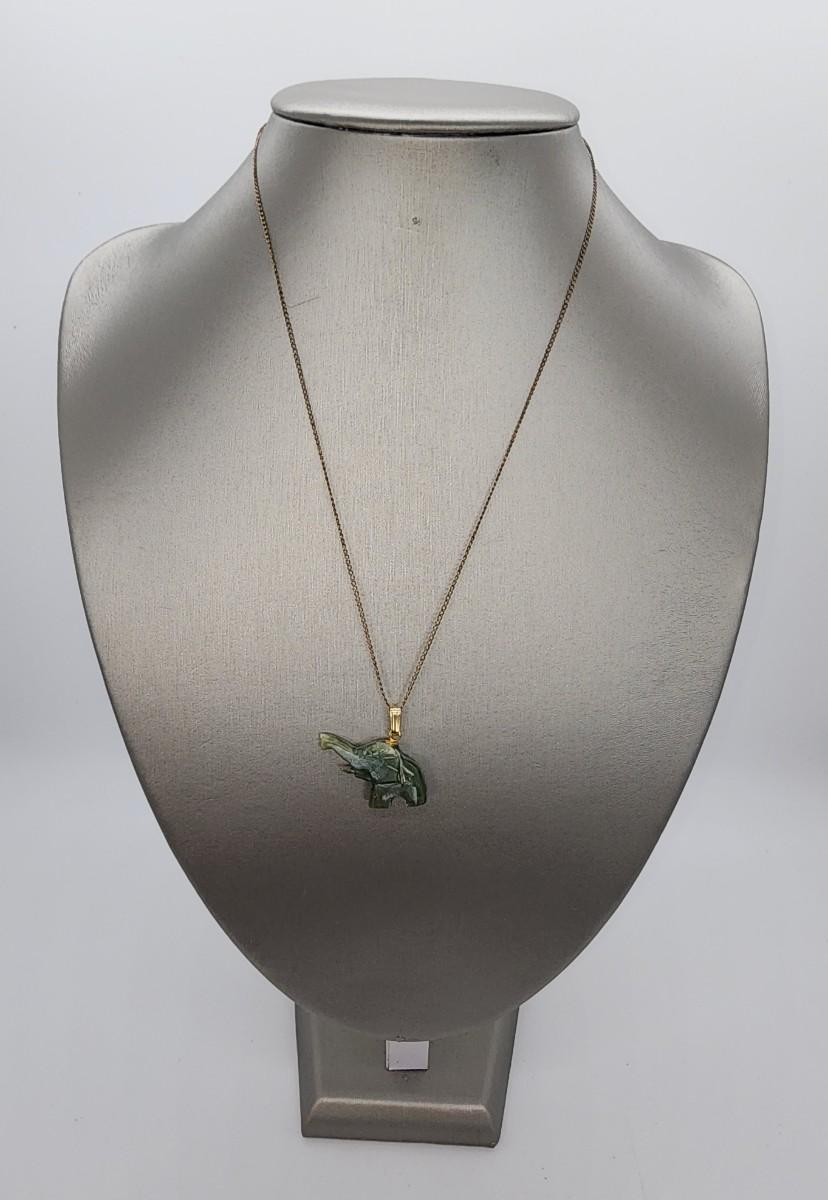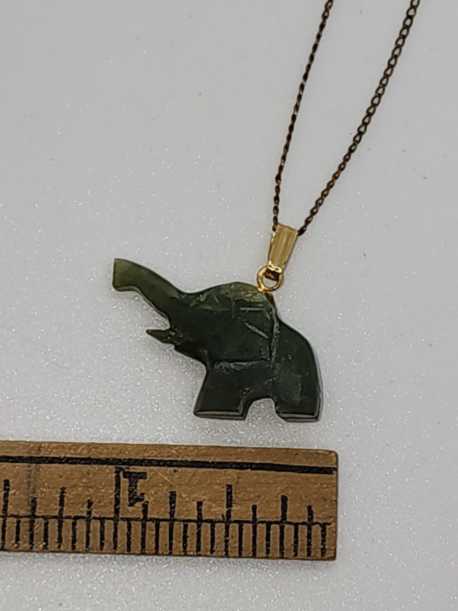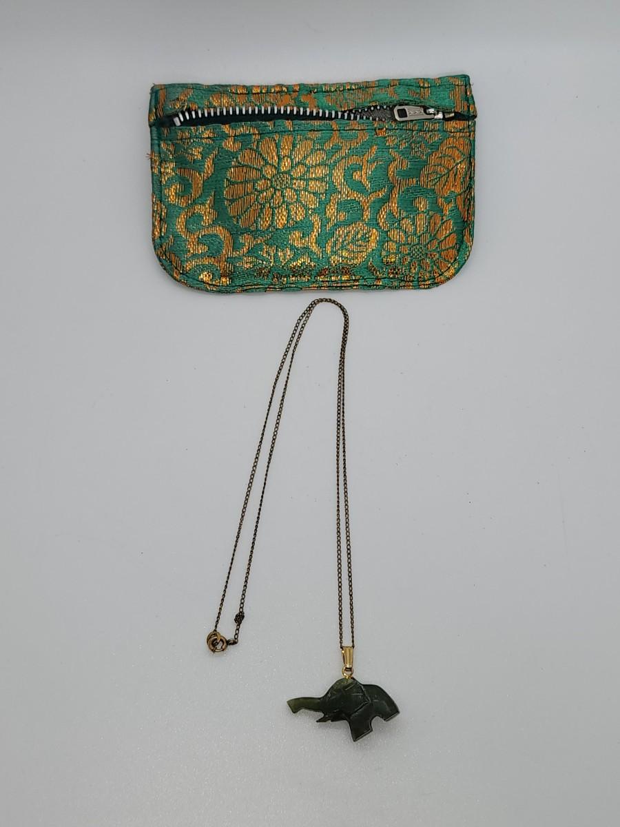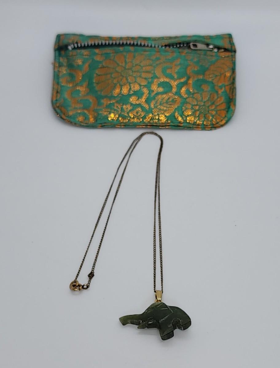 LOT 1 :: Vintage Gold filled Jade Elephant Pendant Necklace 18" L with zipper pouch