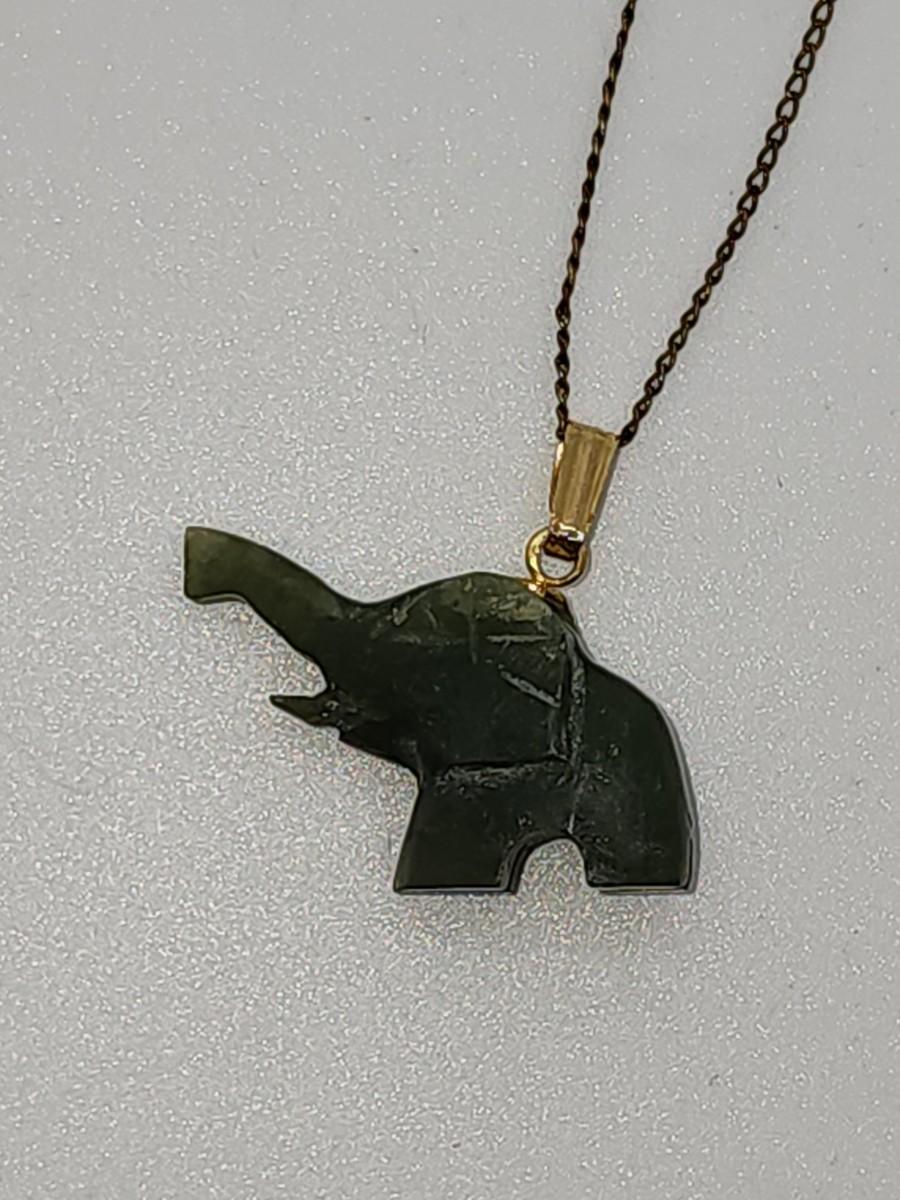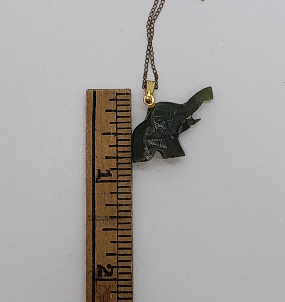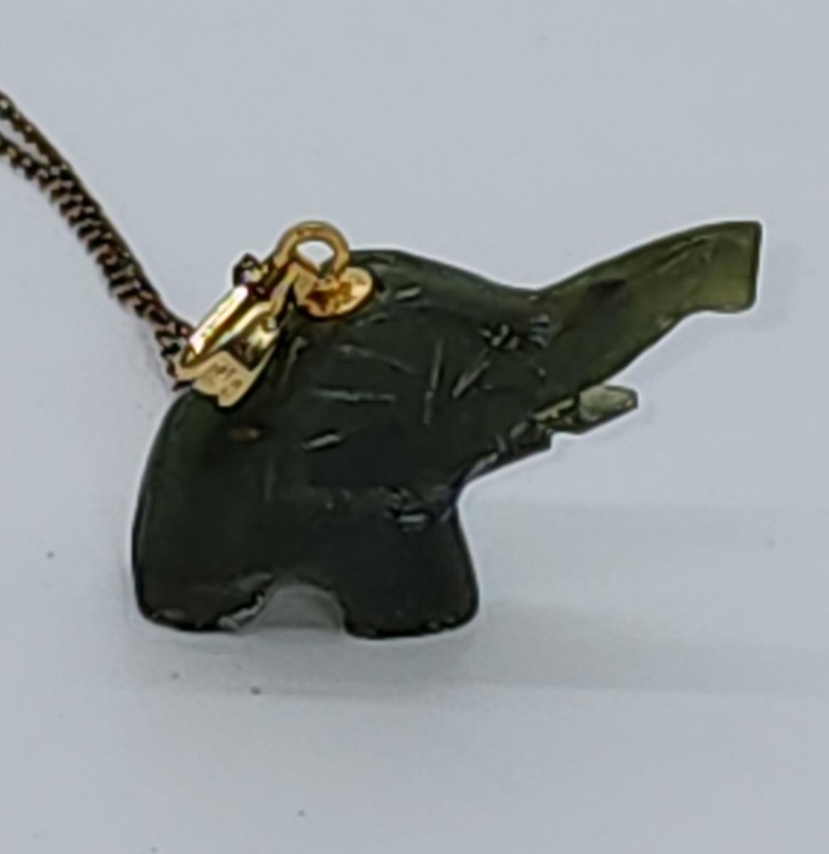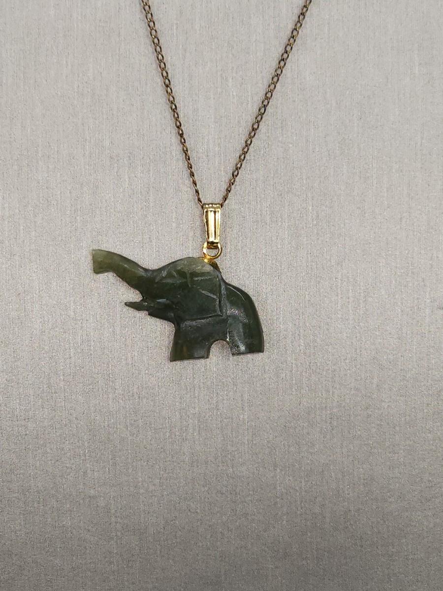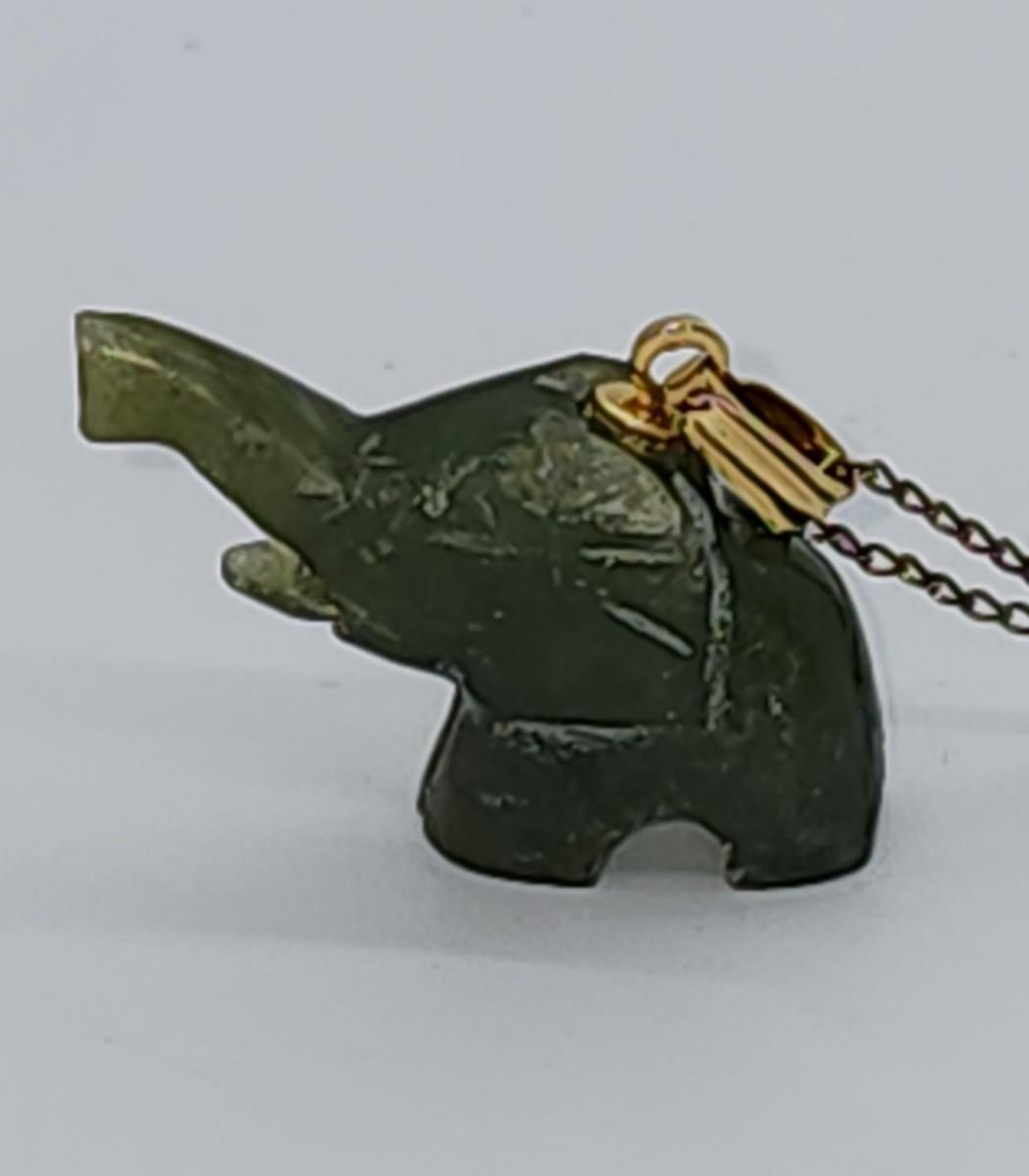 LOT 1 :: Vintage Gold filled Jade Elephant Pendant Necklace 18" L with zipper pouch