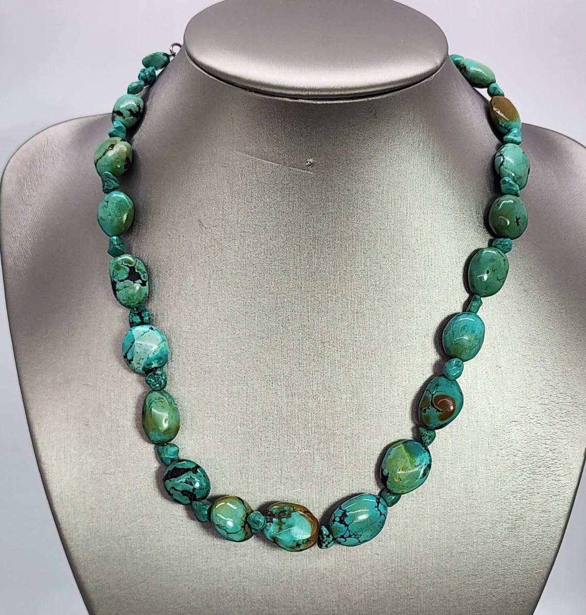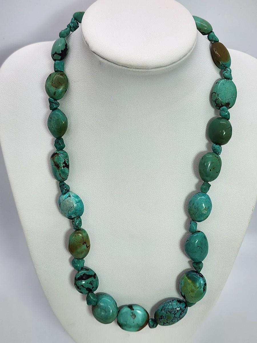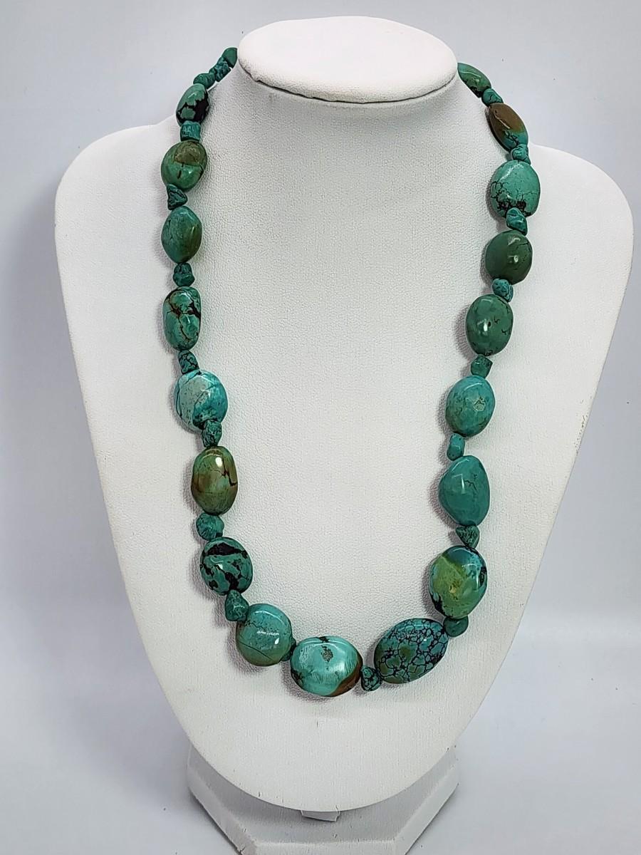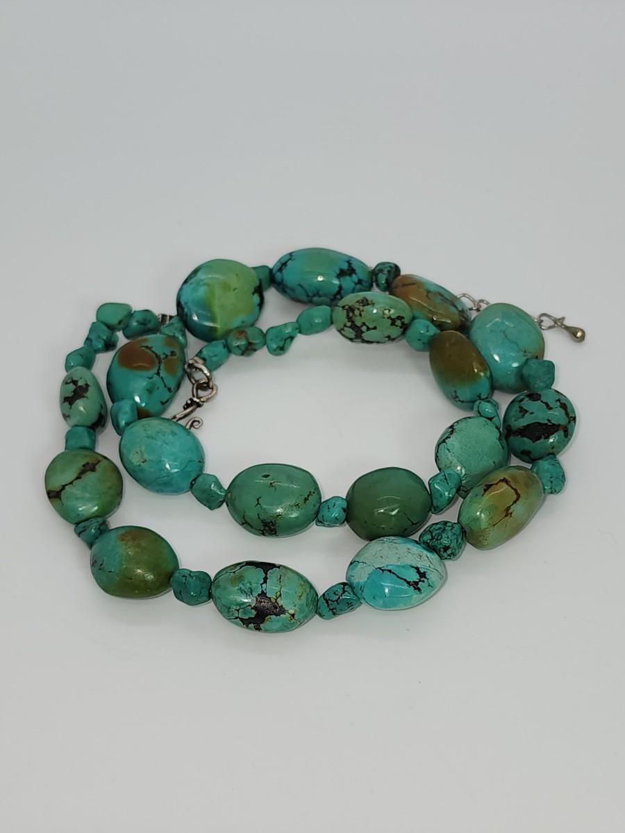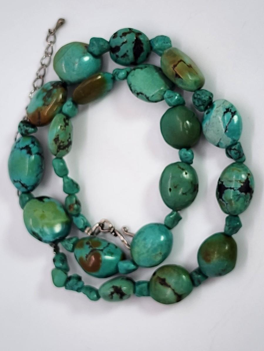 LOT 4:: Turquoise Necklace Sterling 925 clasp and extender 17"L-20.5" L