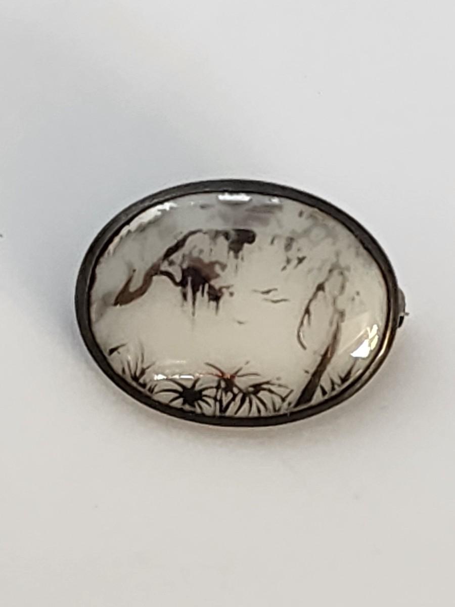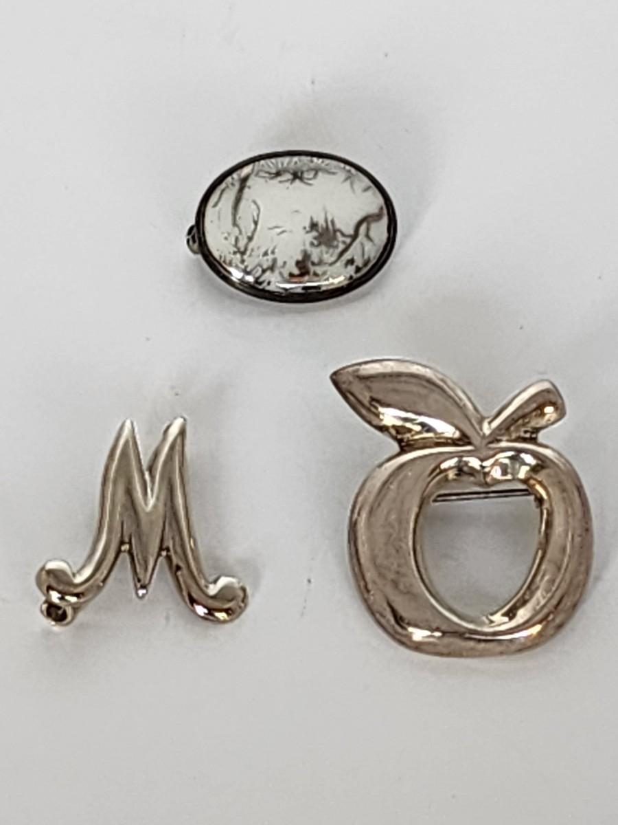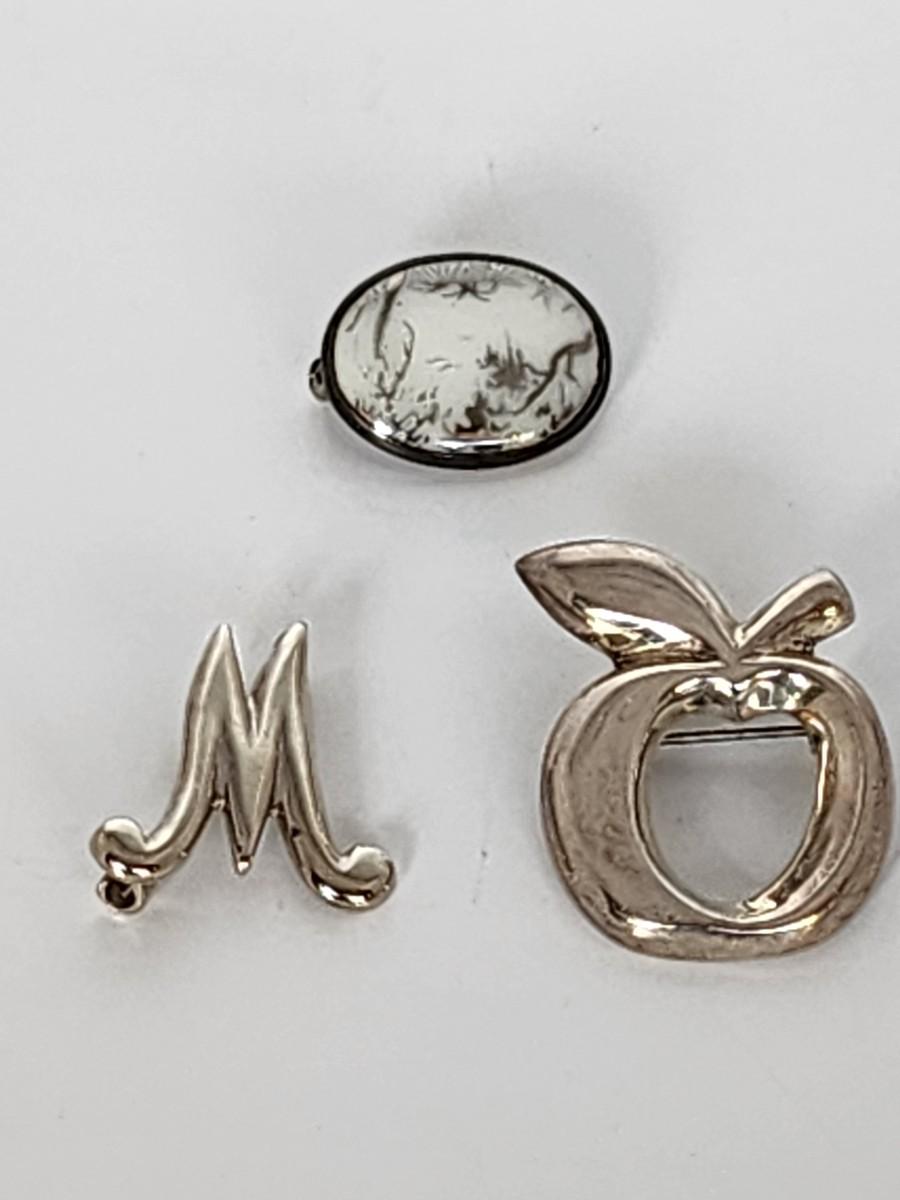 LOT 12 :: Vintage Sterling Pins- Asian hand painted porcelain and more