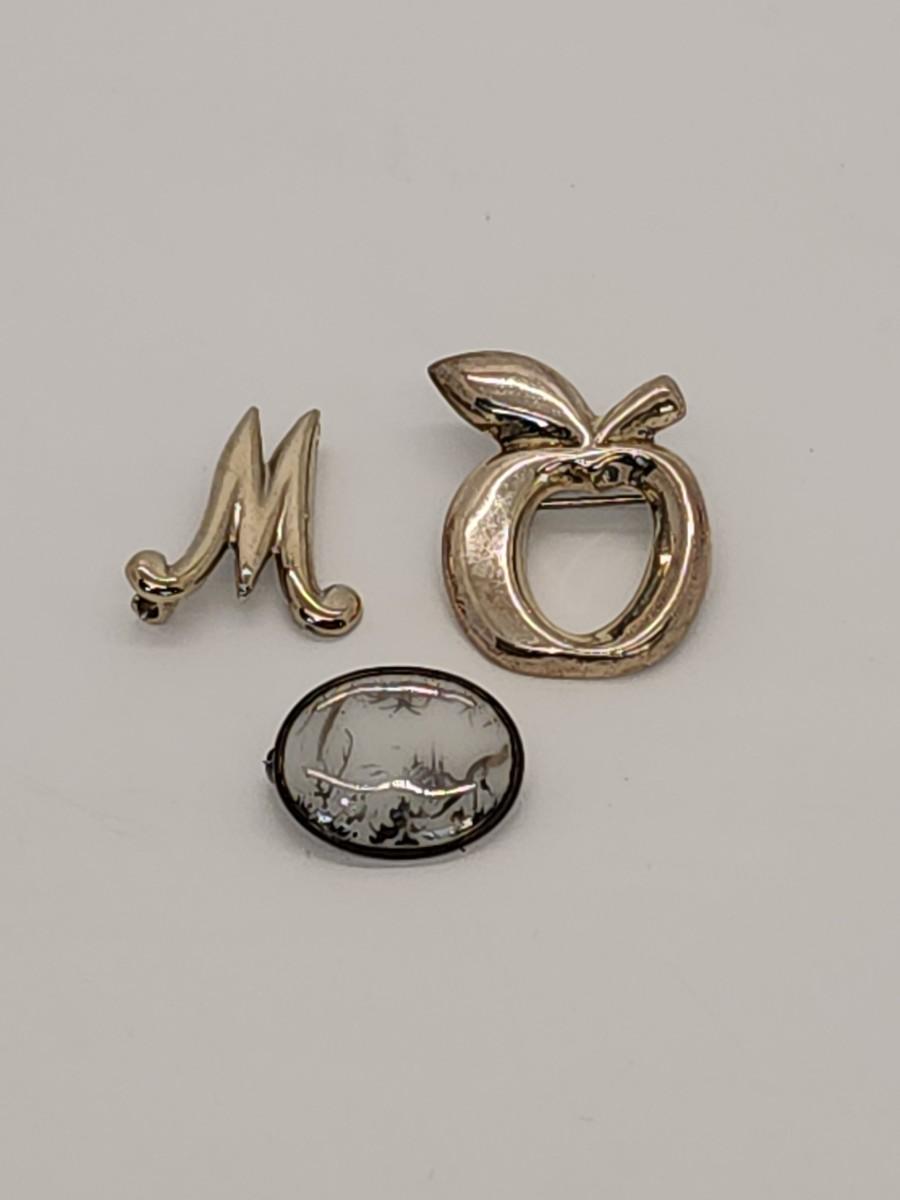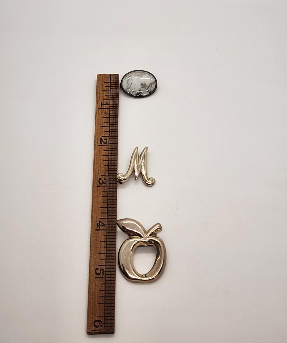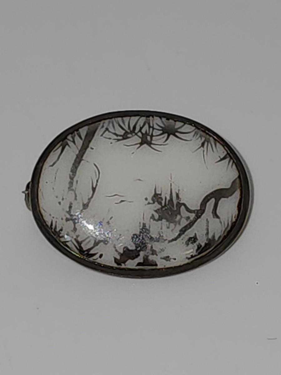 LOT 12 :: Vintage Sterling Pins- Asian hand painted porcelain and more