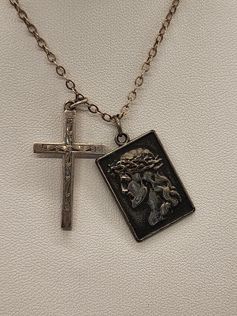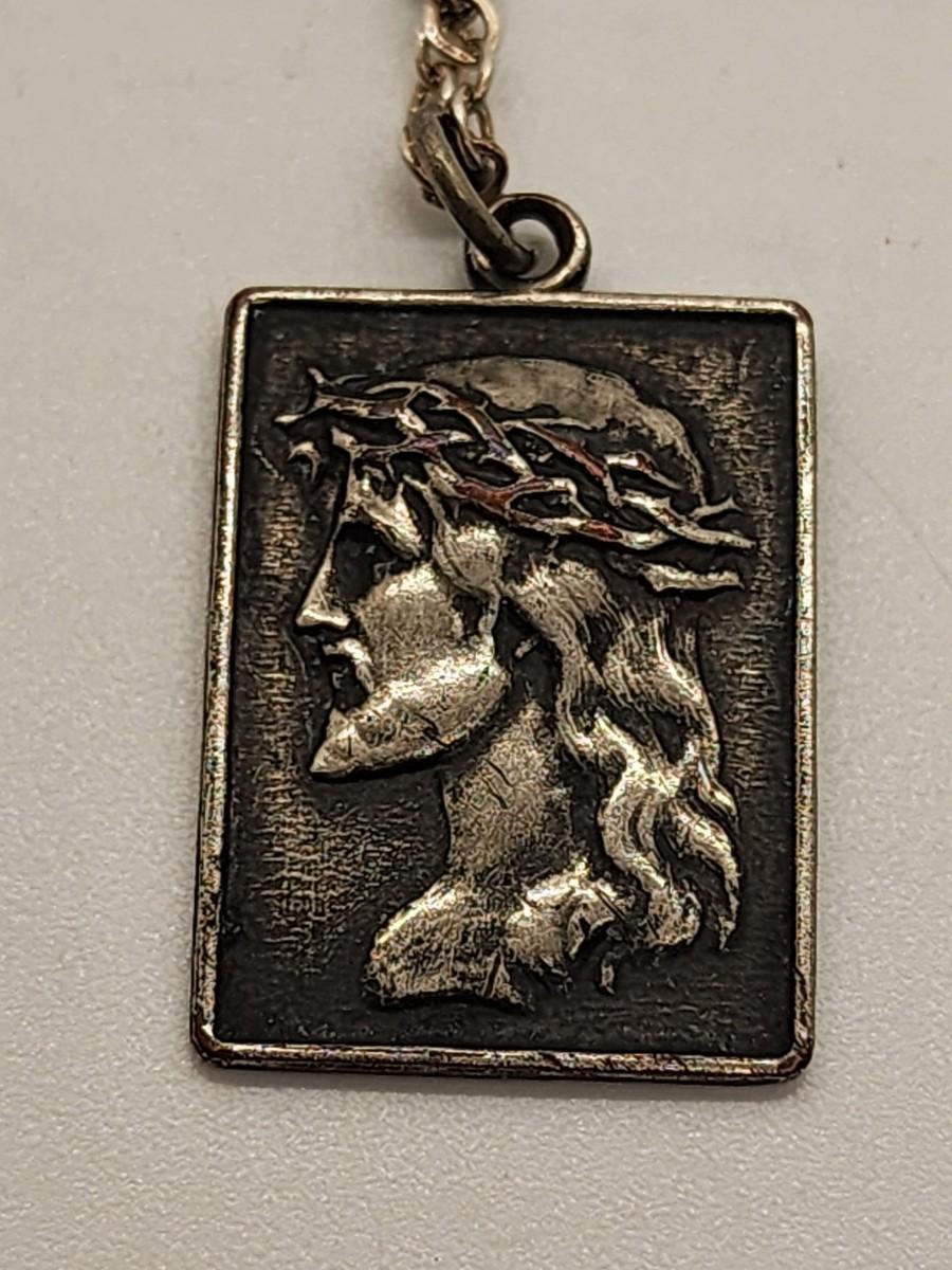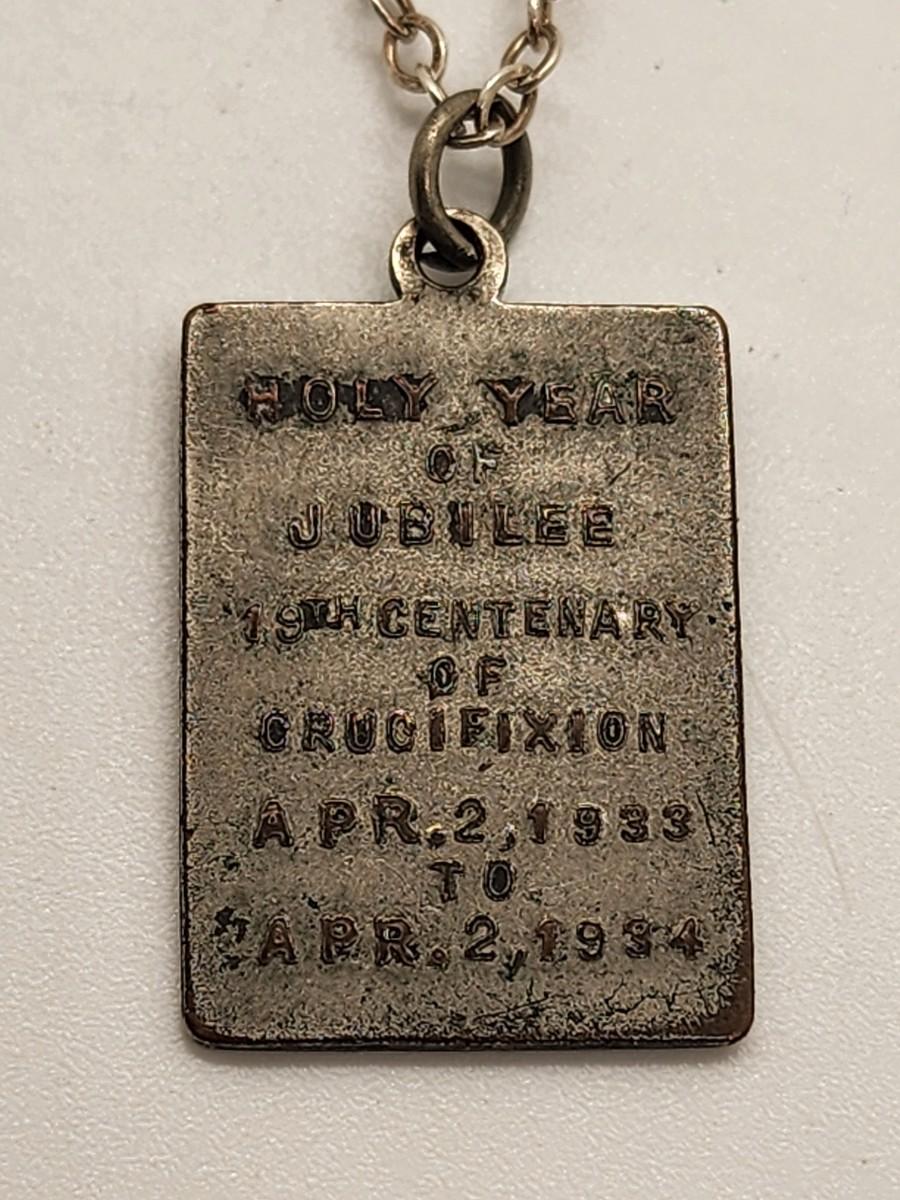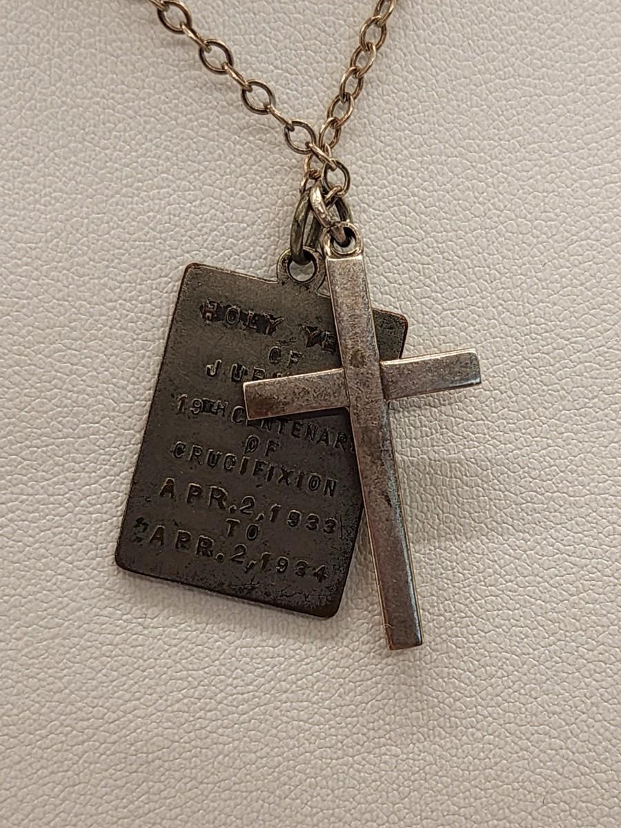 LOT 15:: Vintage Sterling 24"L Chain with Sterling Cross and Unmarked Jesus Jubilee Medal 1933-1934Medal