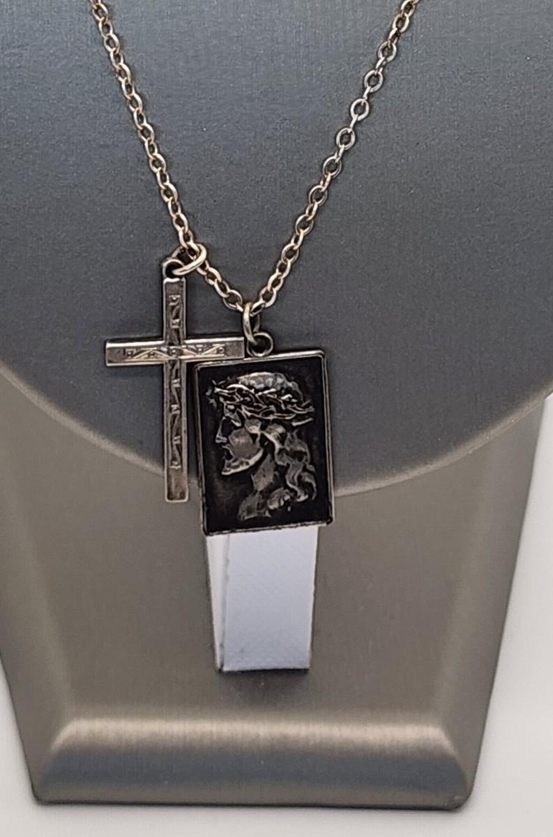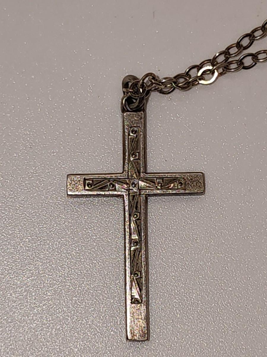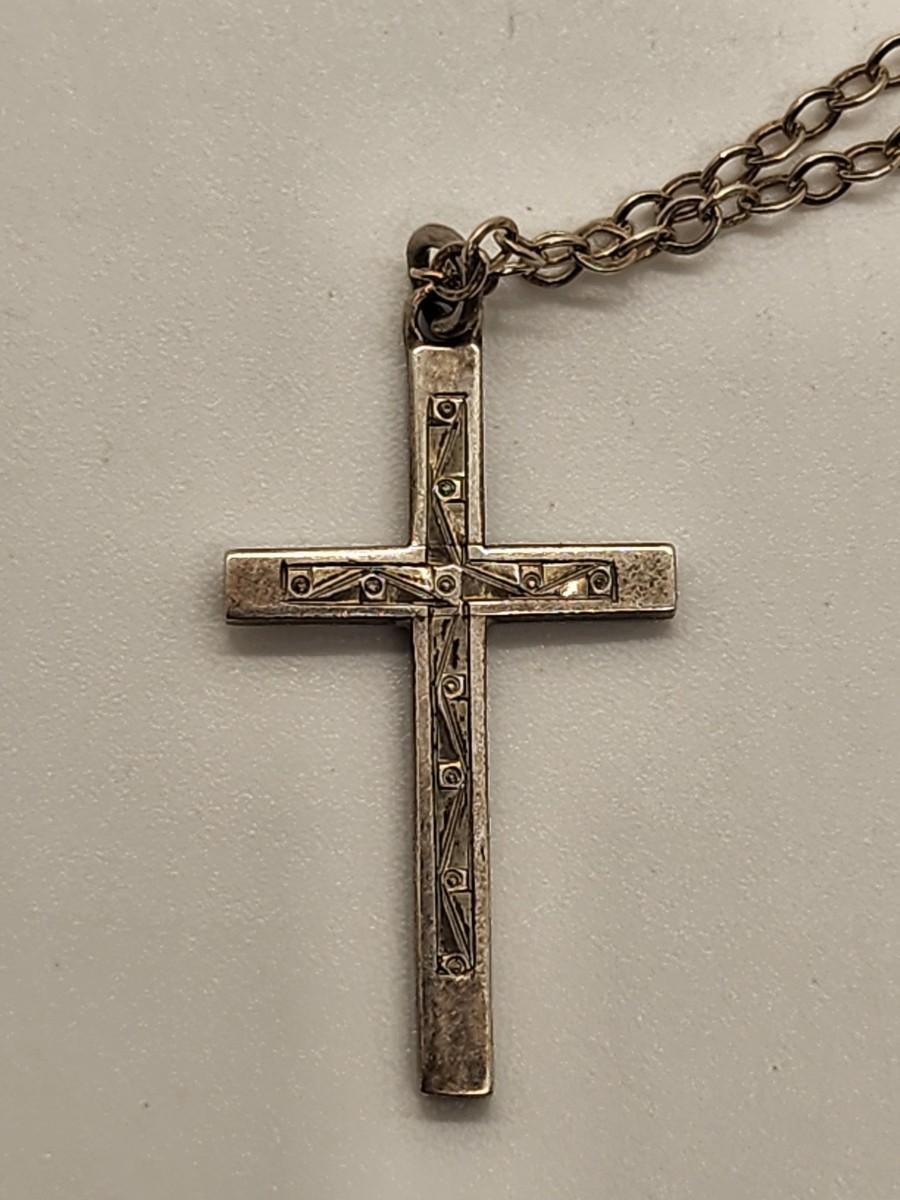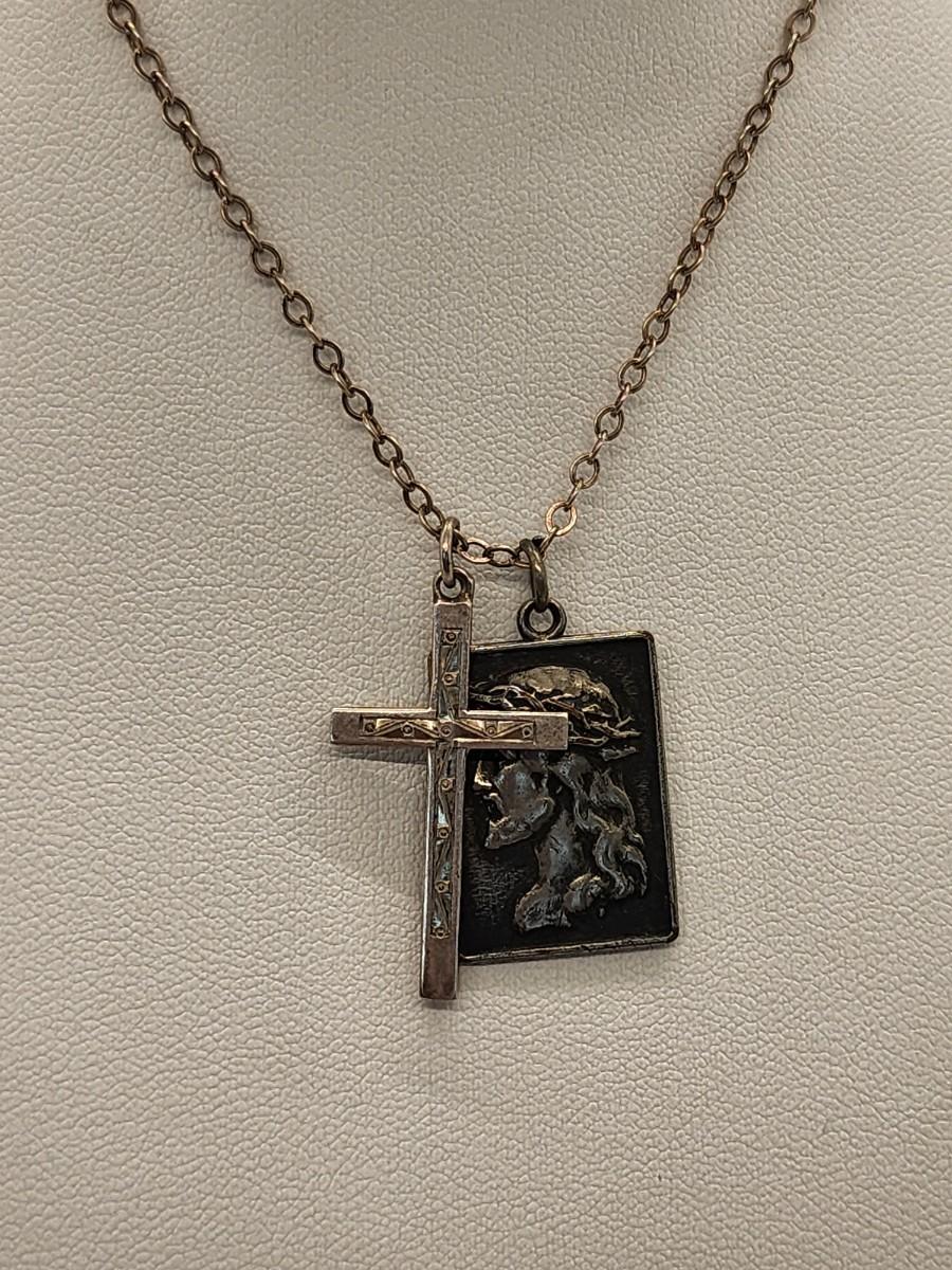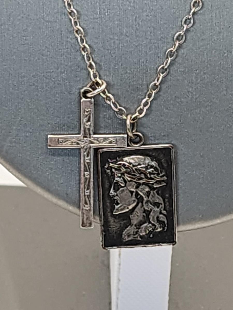 LOT 15:: Vintage Sterling 24"L Chain with Sterling Cross and Unmarked Jesus Jubilee Medal 1933-1934Medal