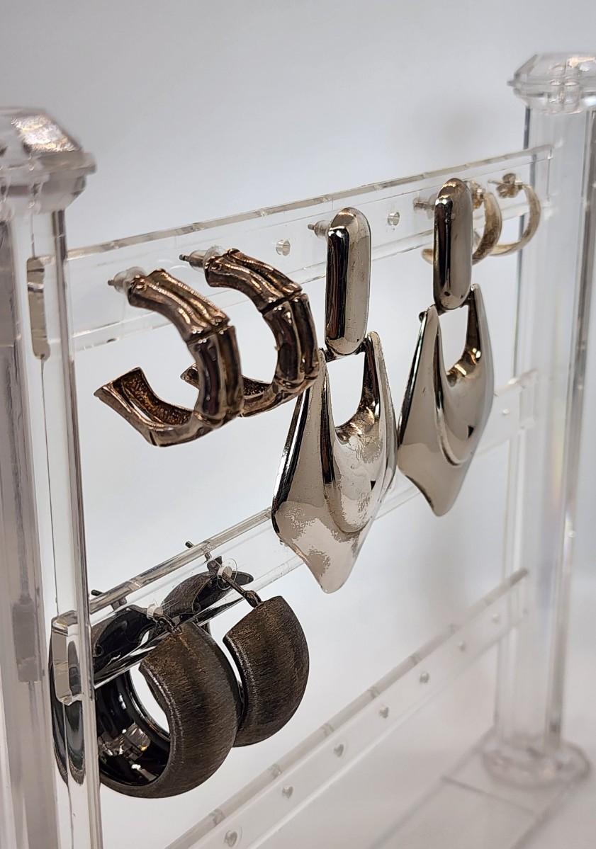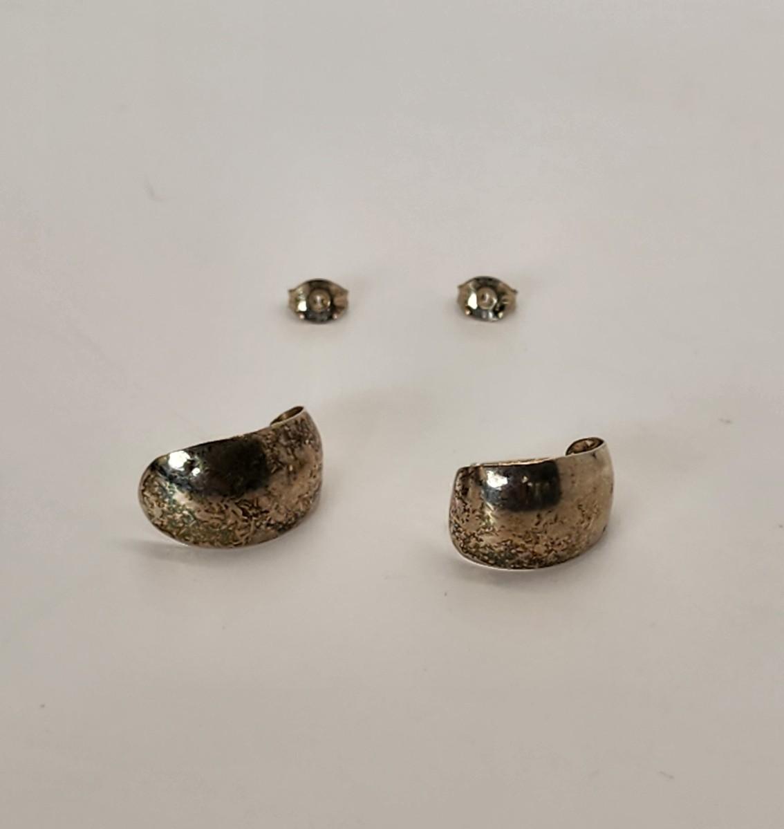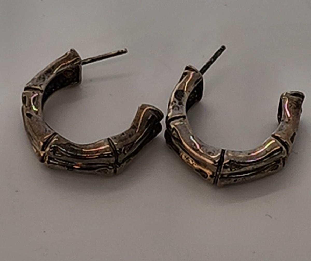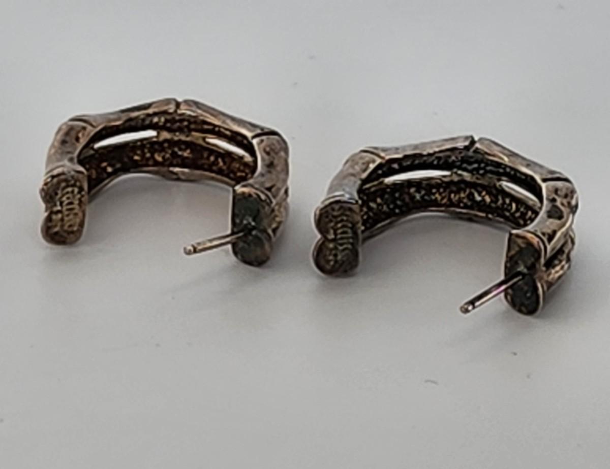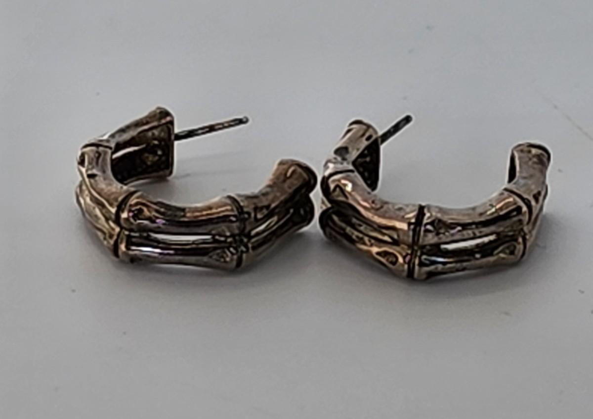 LOT 16:: 29.3gtw- Sterling Silver 925 Pierced Earring Lot featuring Ecclissi double stem bamboo hoops