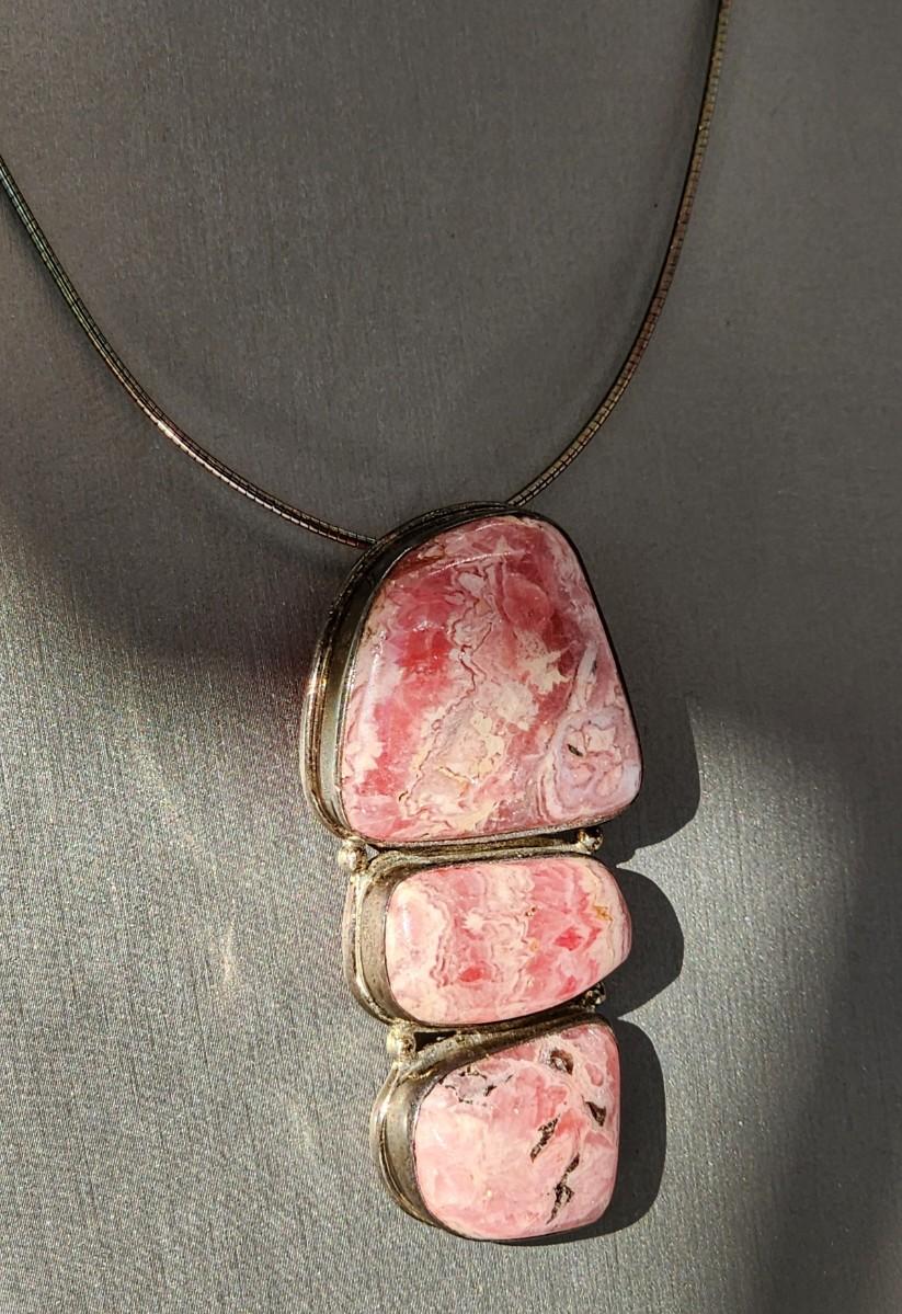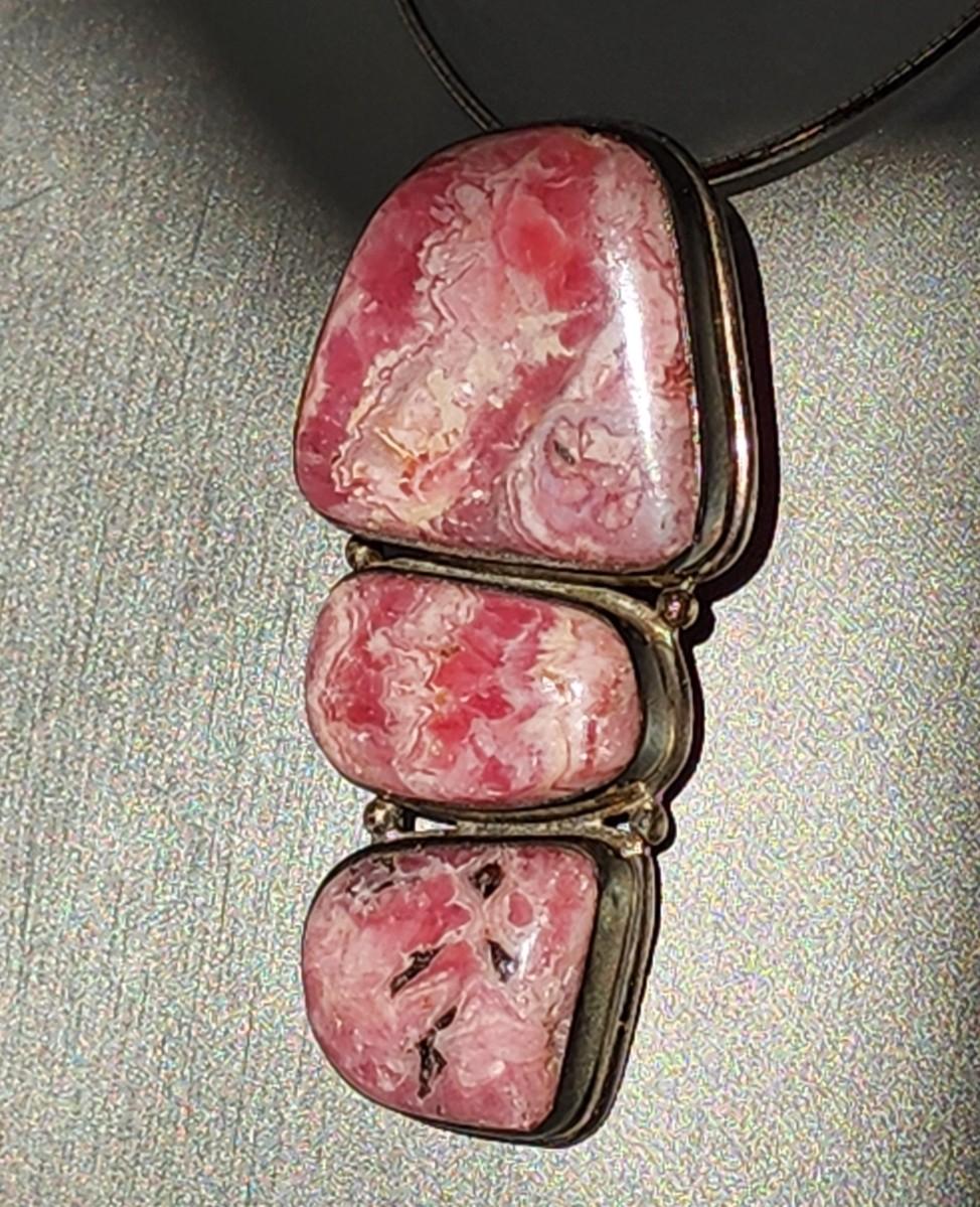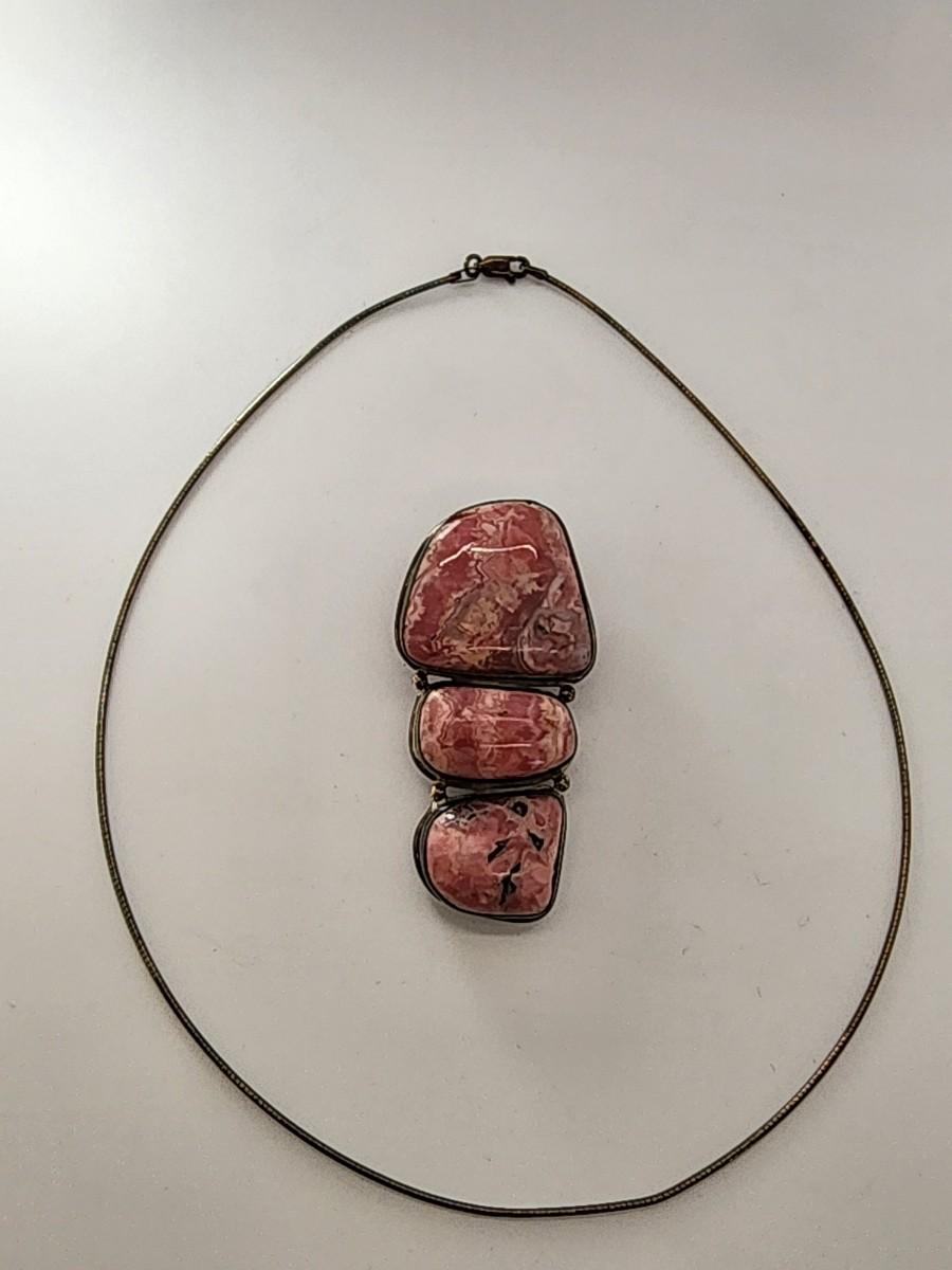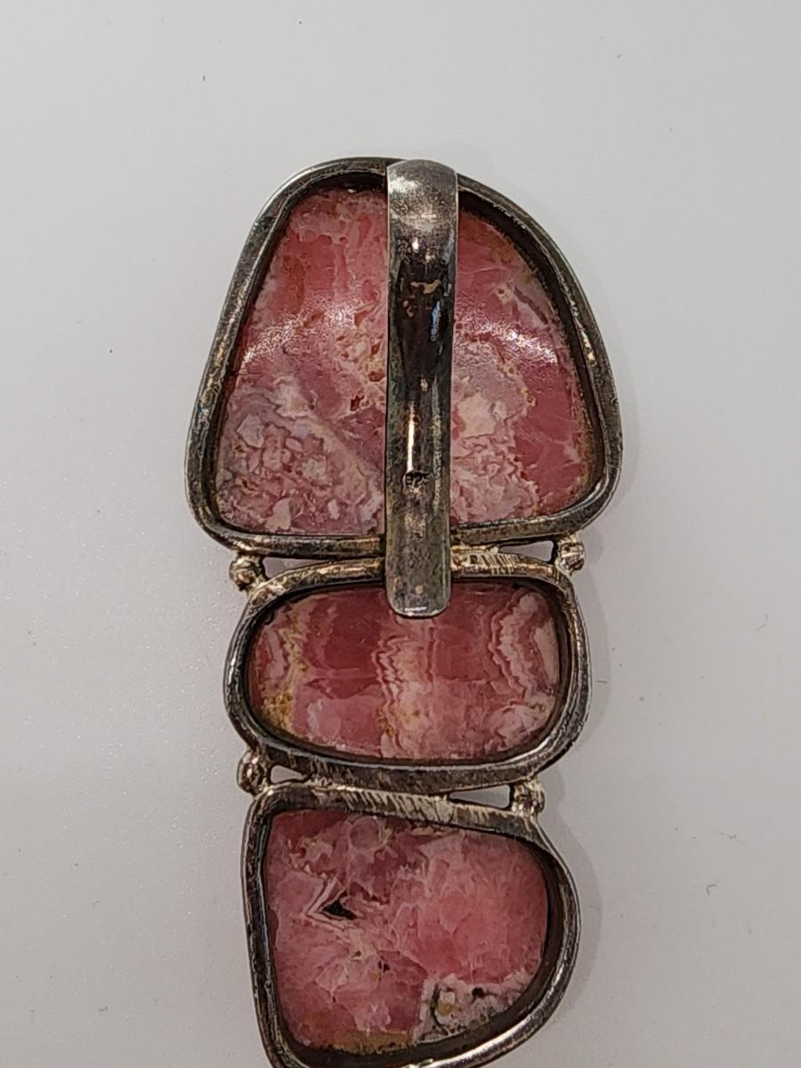 LOT 17:: Vintage Large Natural Rhodochrosite Pendant set in 925 Sterling Silver with 925 Italy 18" Chain