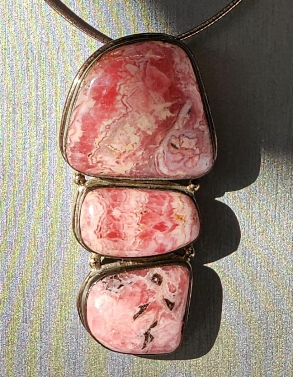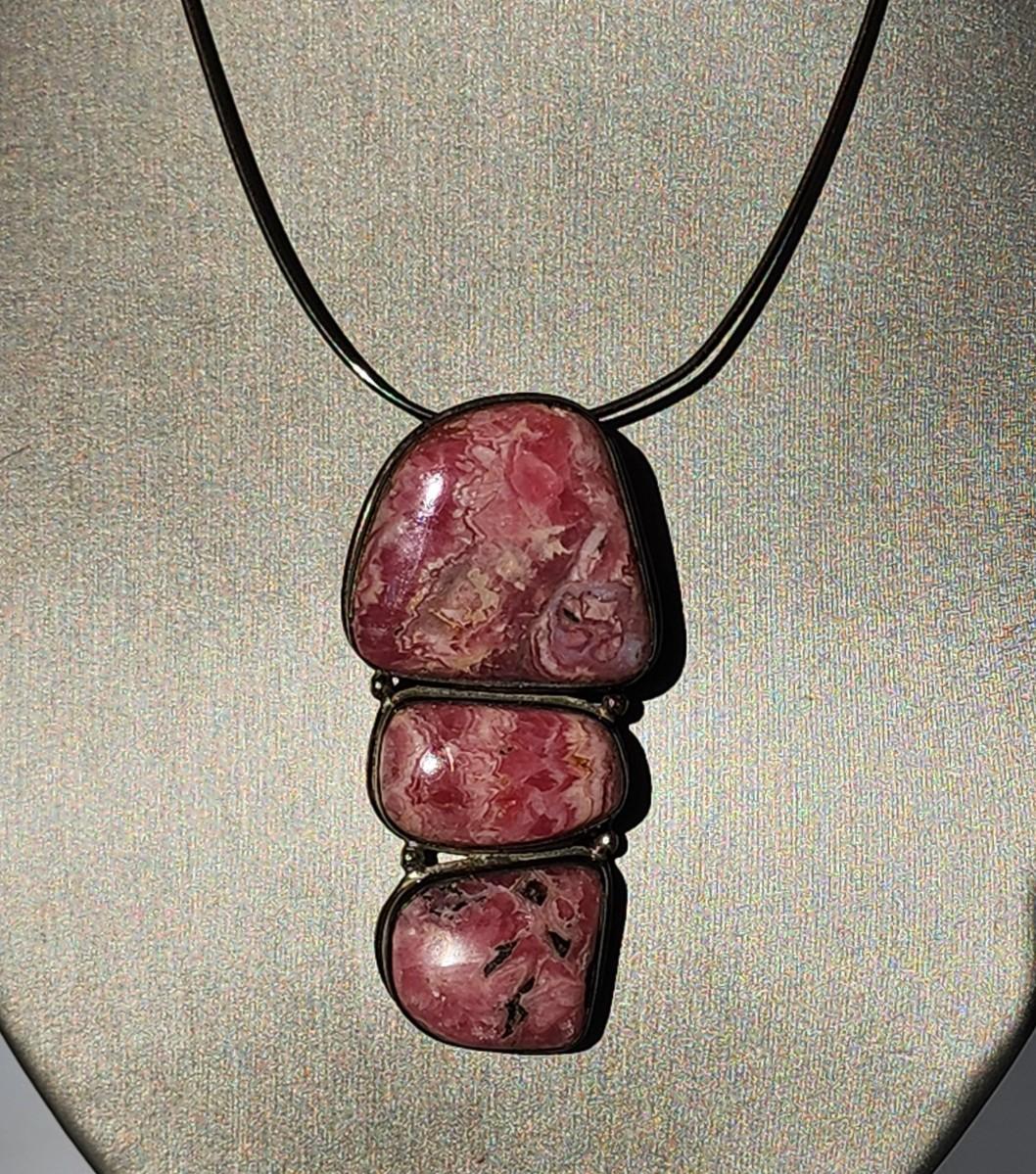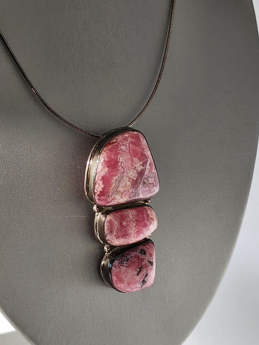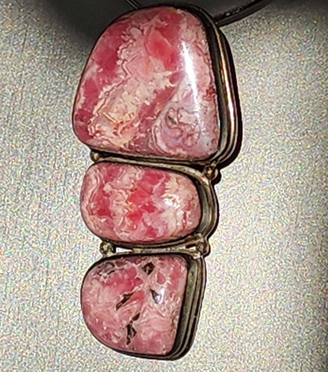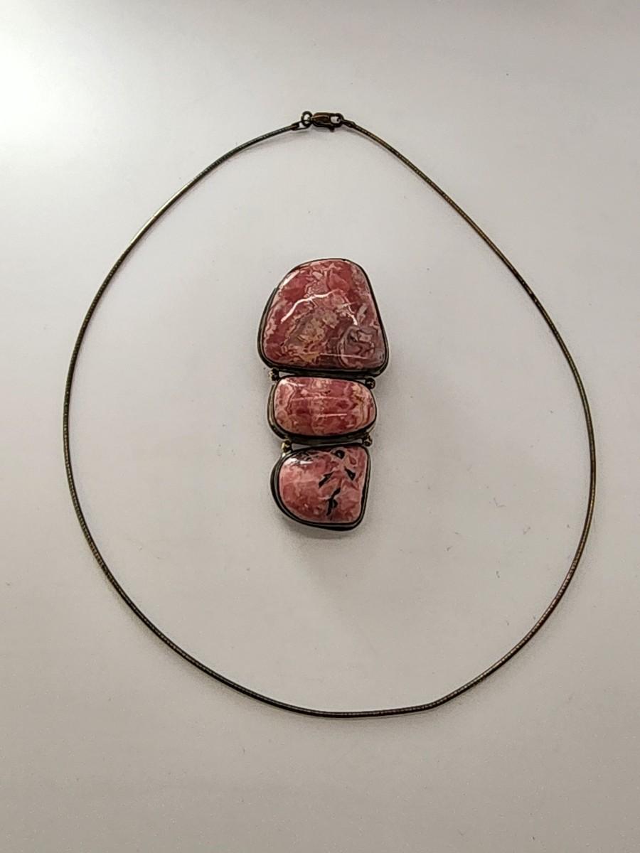 LOT 17:: Vintage Large Natural Rhodochrosite Pendant set in 925 Sterling Silver with 925 Italy 18" Chain