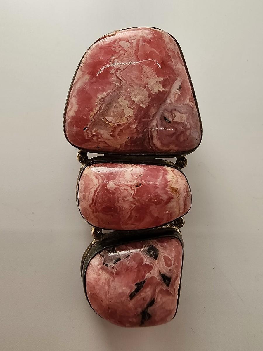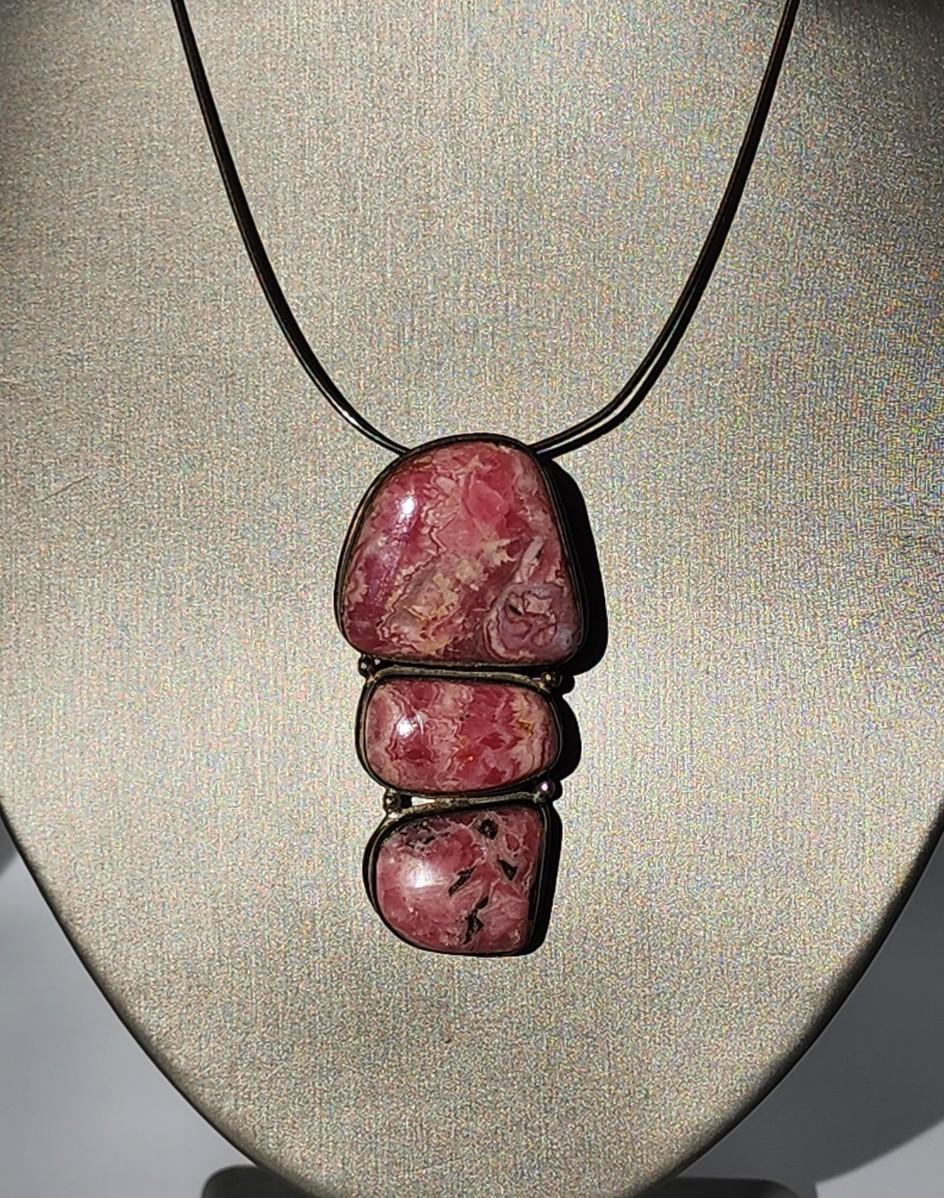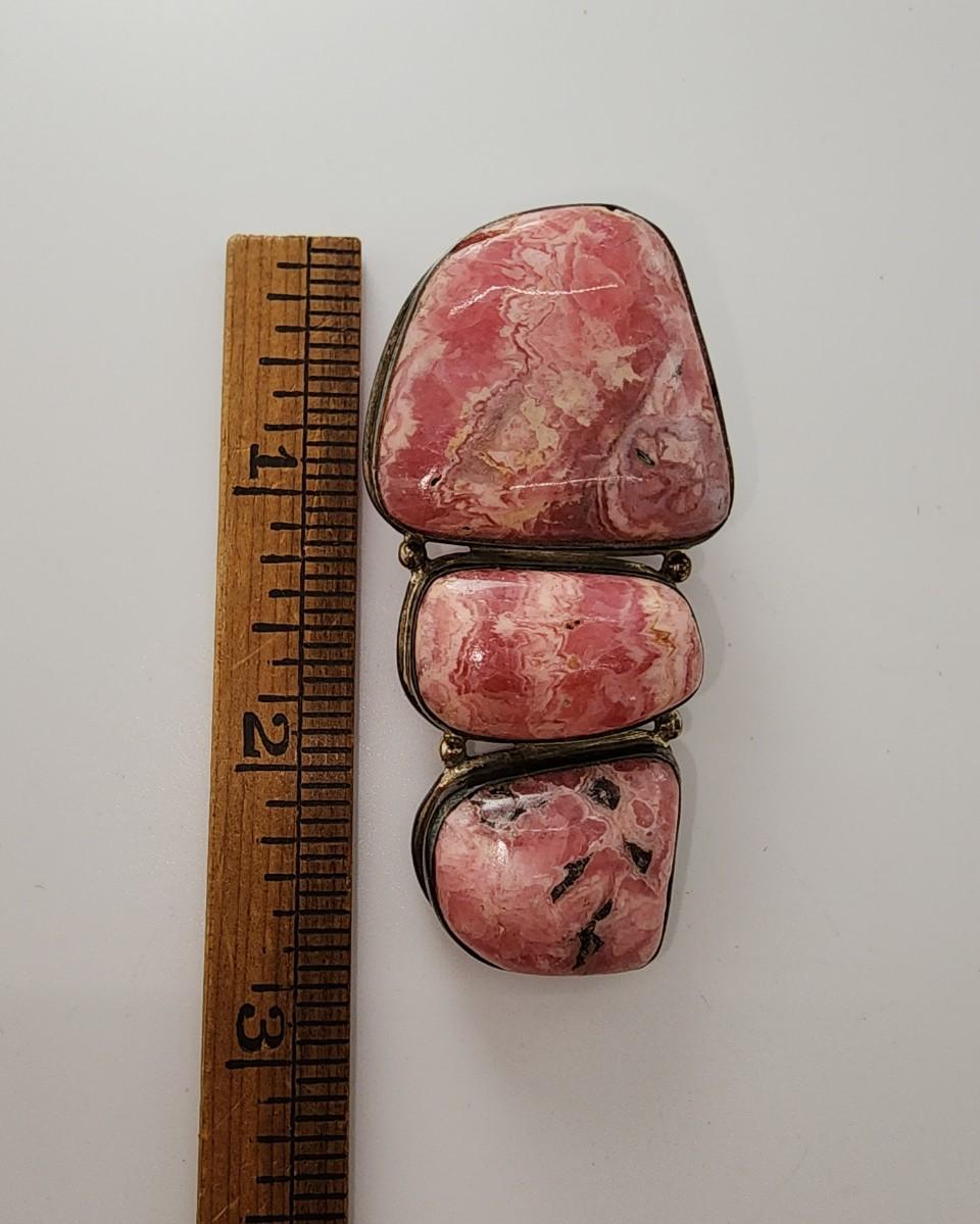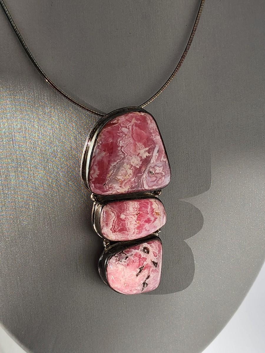 LOT 17:: Vintage Large Natural Rhodochrosite Pendant set in 925 Sterling Silver with 925 Italy 18" Chain