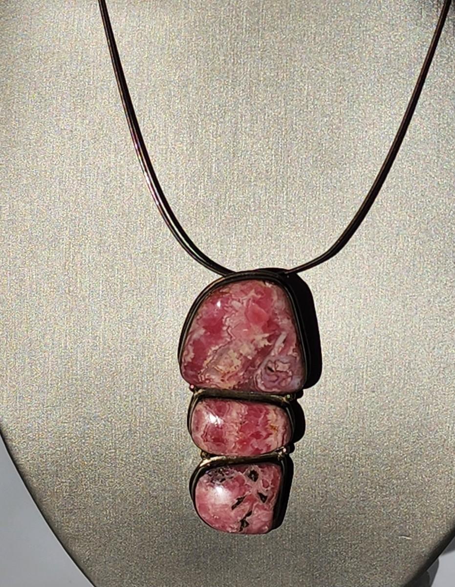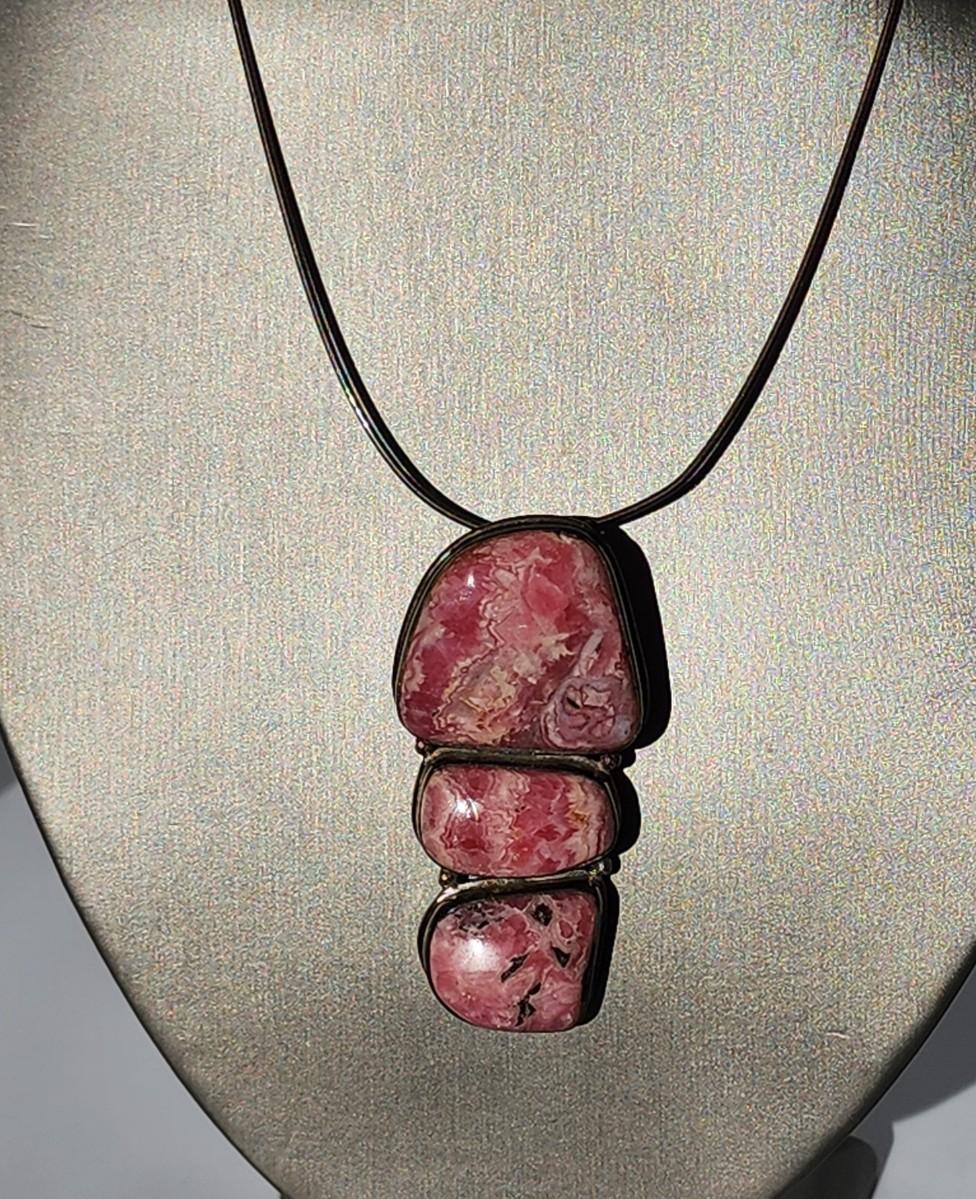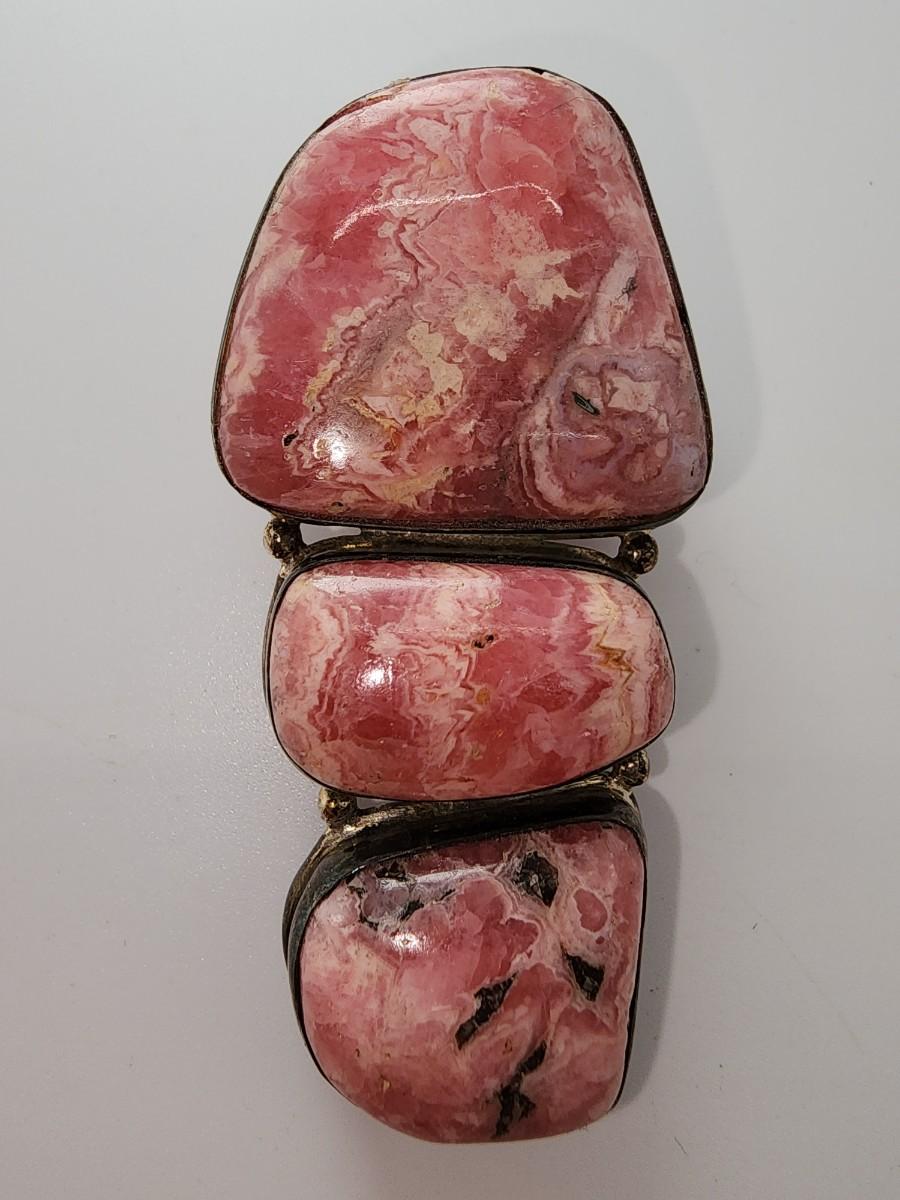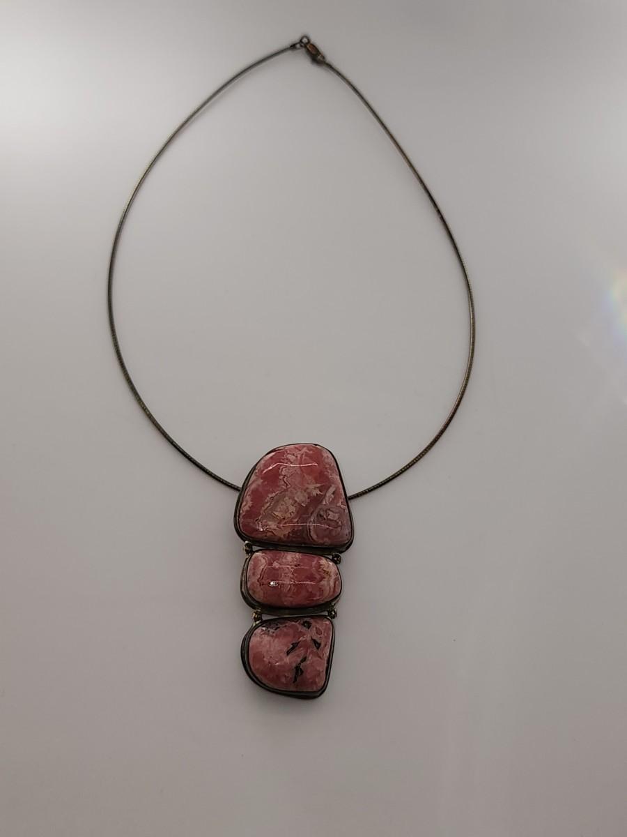 LOT 17:: Vintage Large Natural Rhodochrosite Pendant set in 925 Sterling Silver with 925 Italy 18" Chain