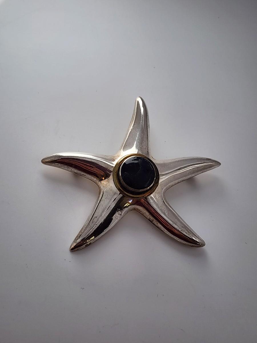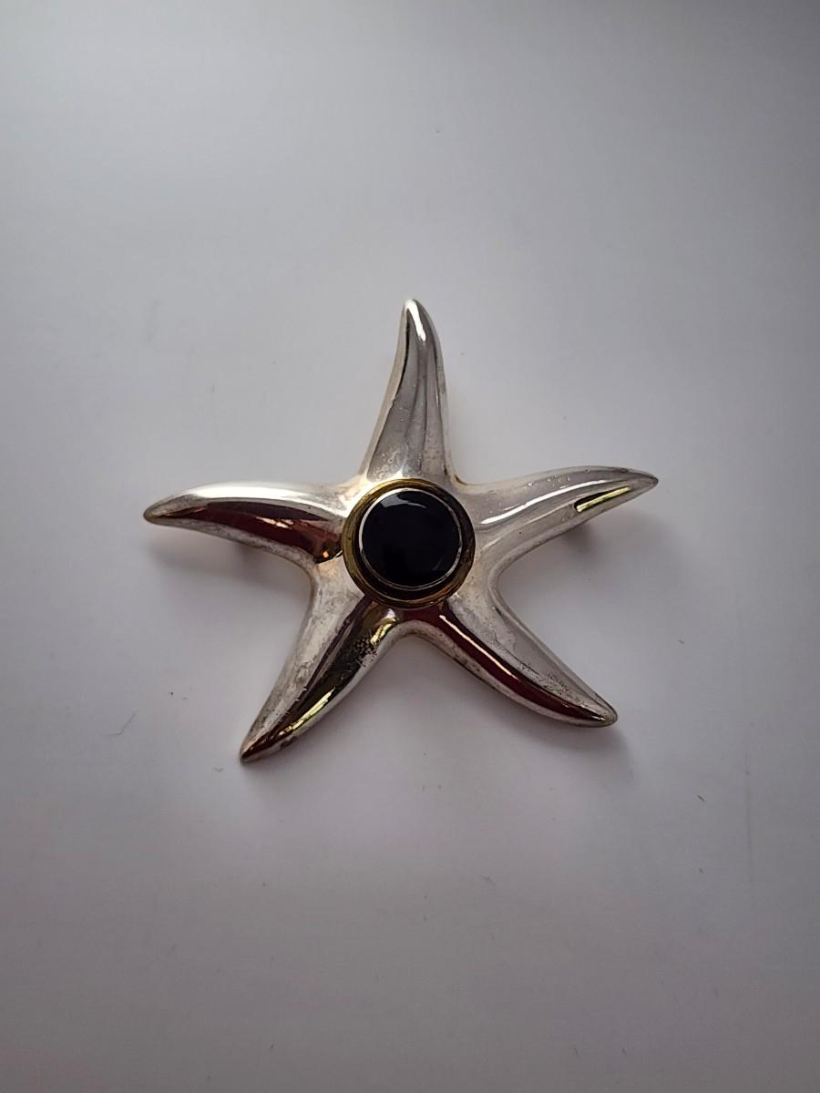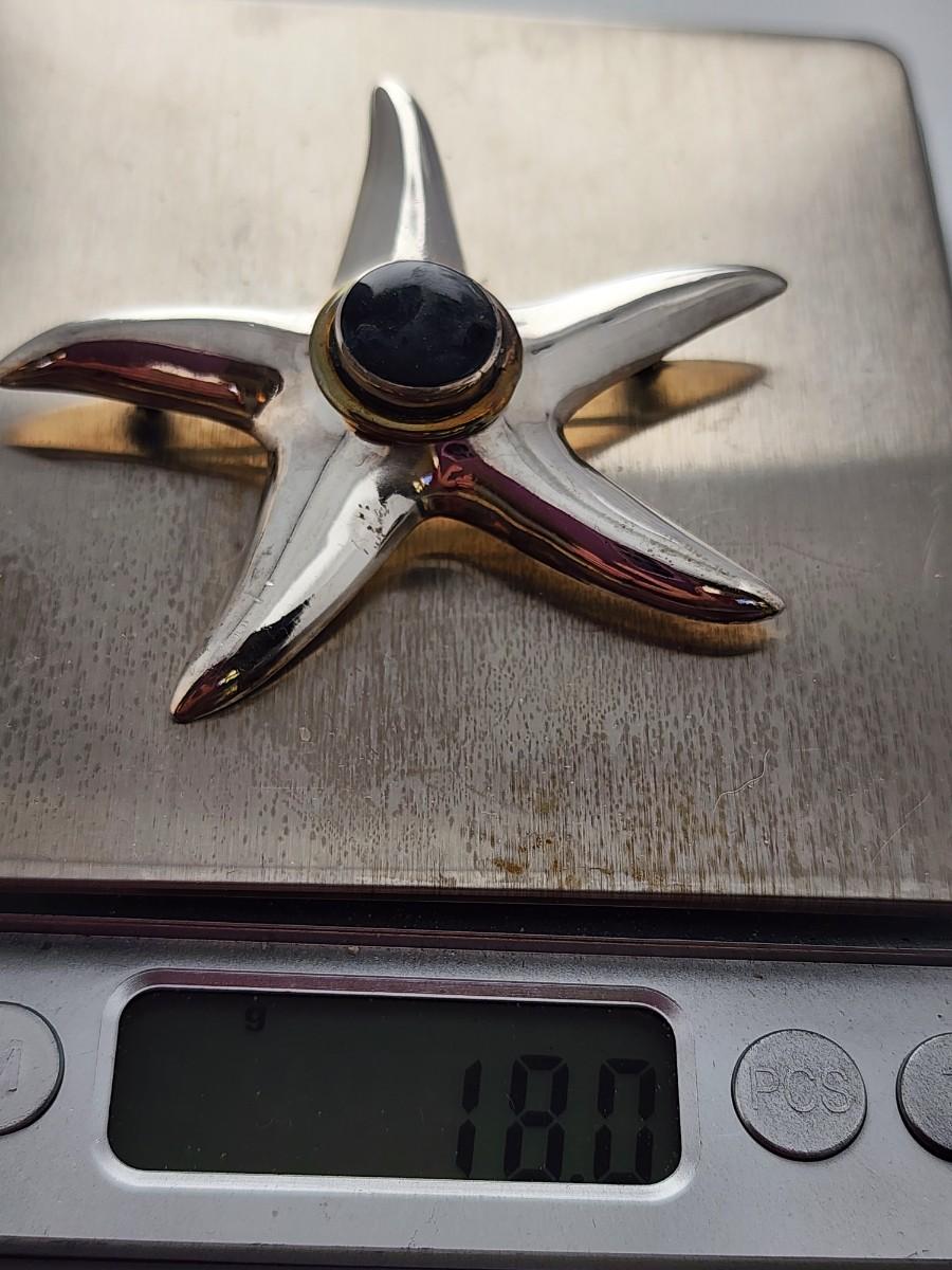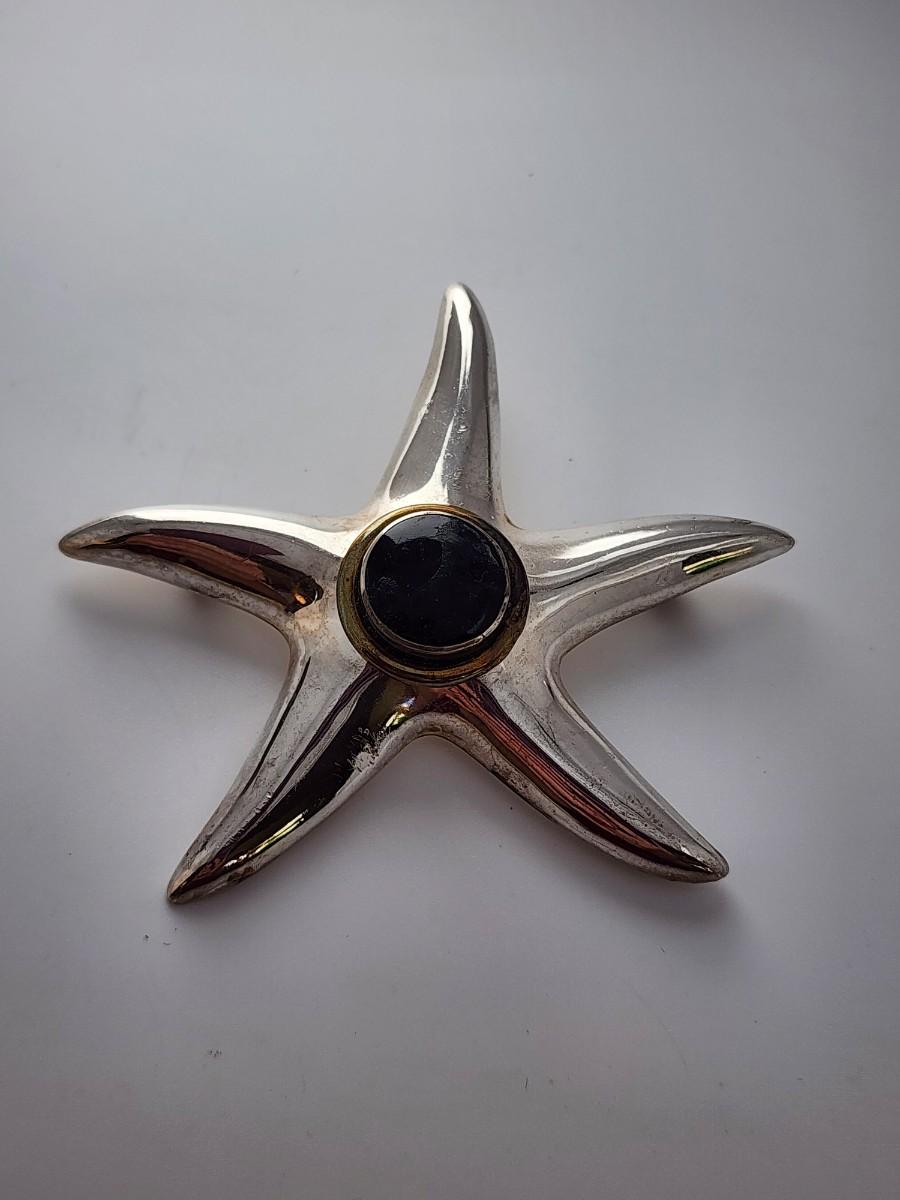 LOT 18:: Vintage Big Bold Beautiful Taxco Mexico Starfish Brooch Black Onyx center with gold vermeil highlights 18gtw