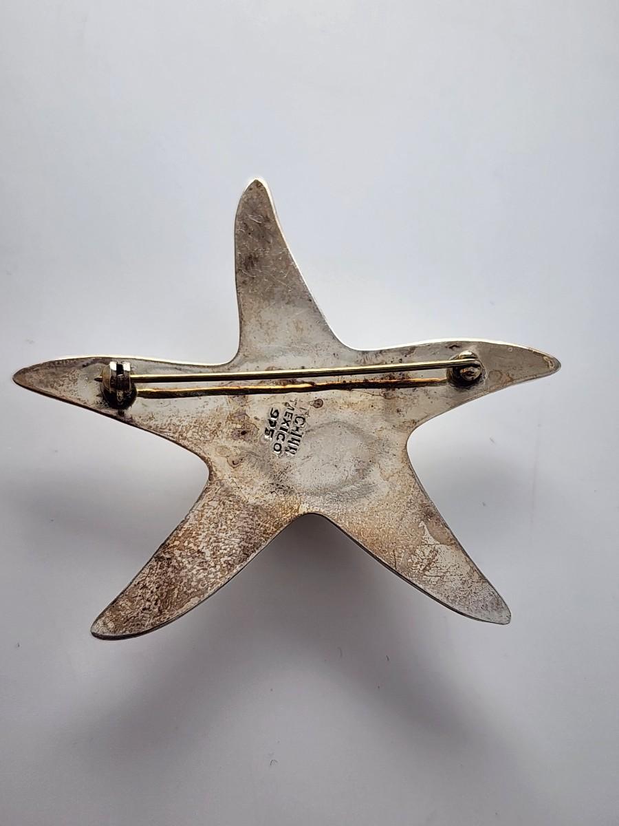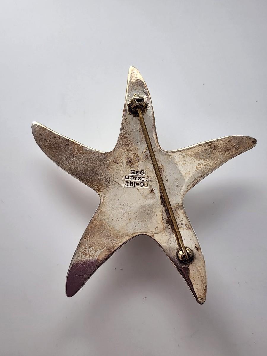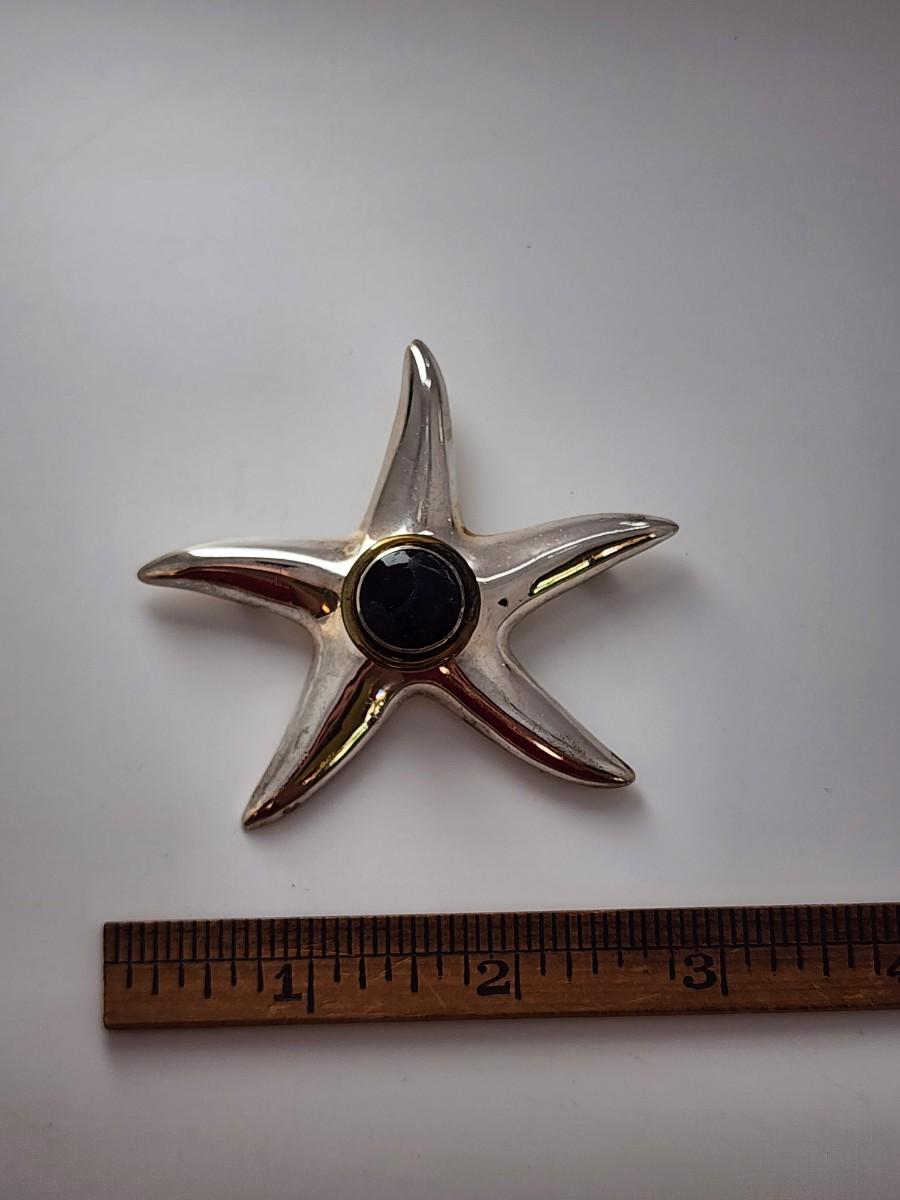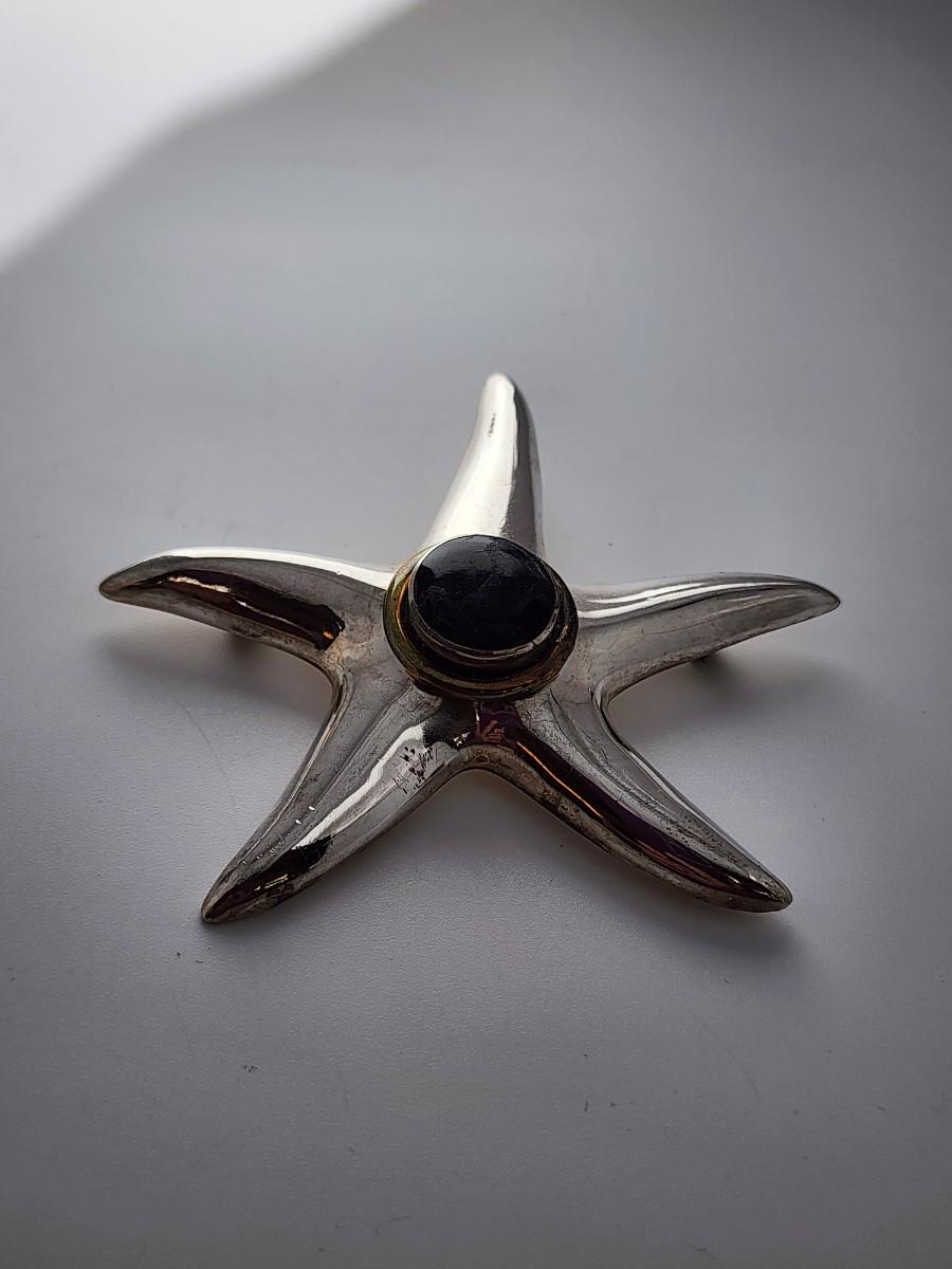 LOT 18:: Vintage Big Bold Beautiful Taxco Mexico Starfish Brooch Black Onyx center with gold vermeil highlights 18gtw
