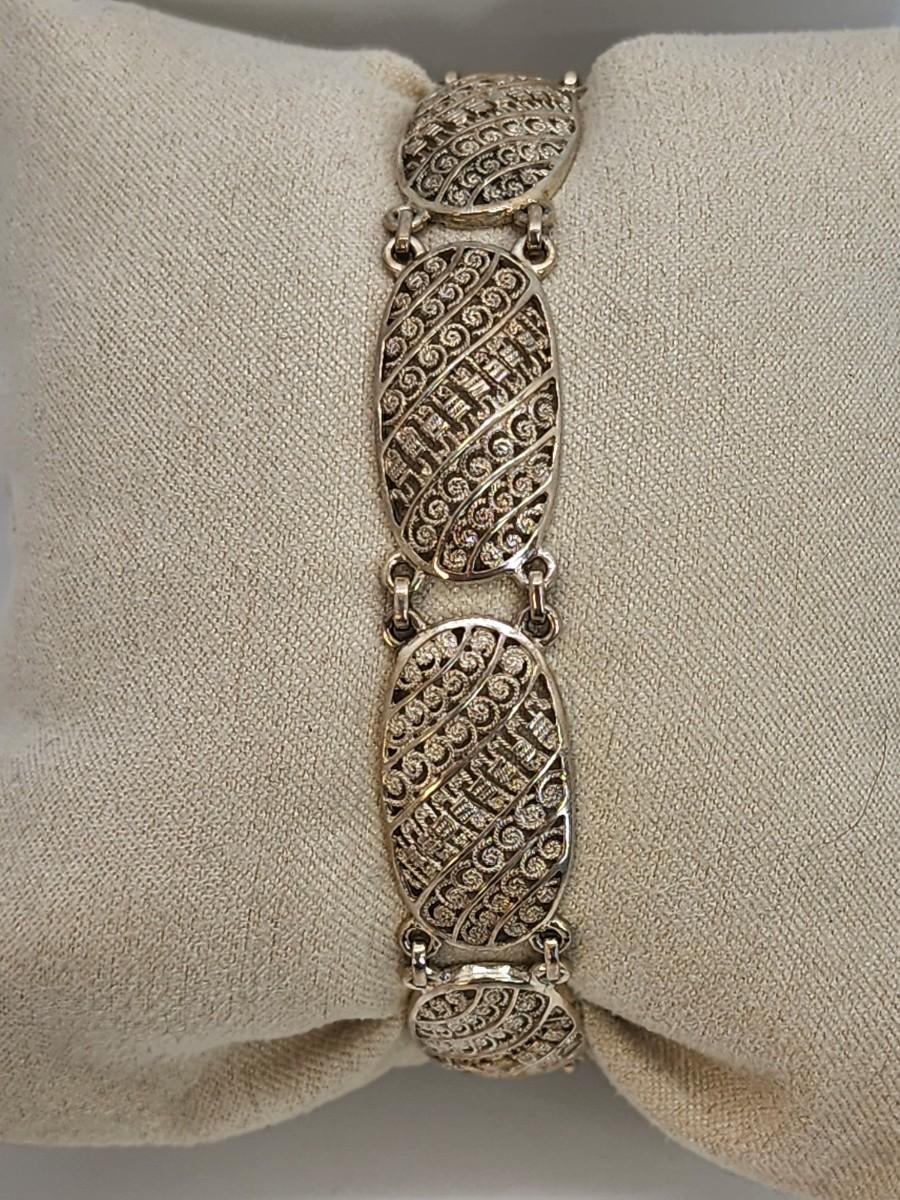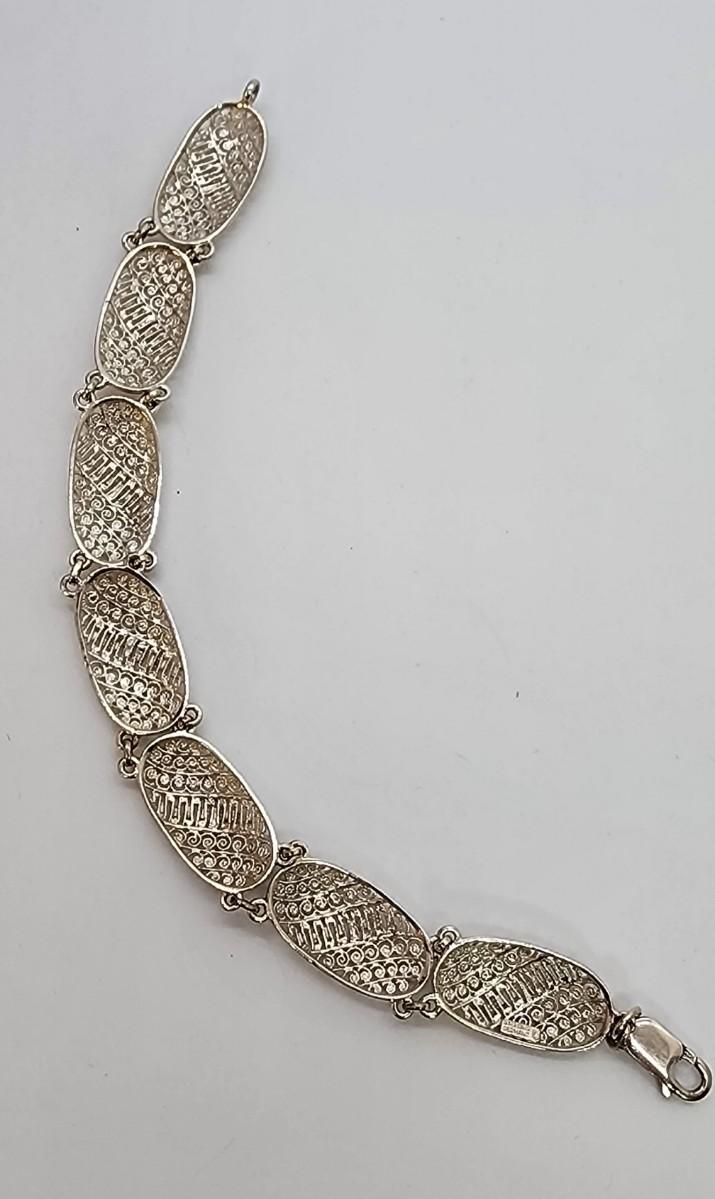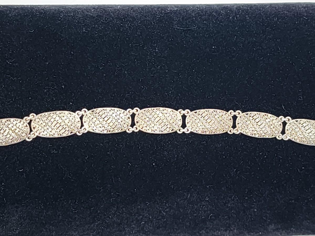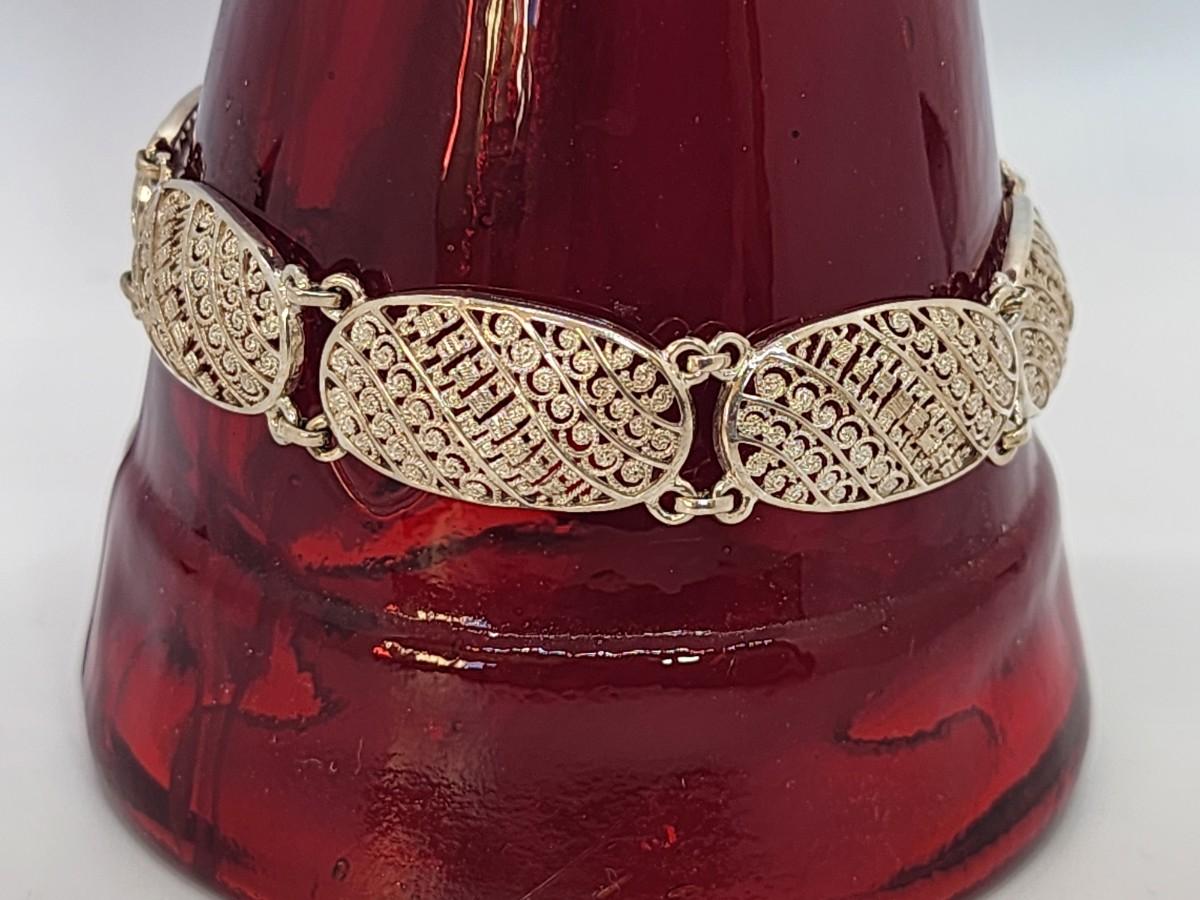 LOT 24:: Beautiful Sterling Filigree Link Bracelet Germany 7.5"L- 10.9g