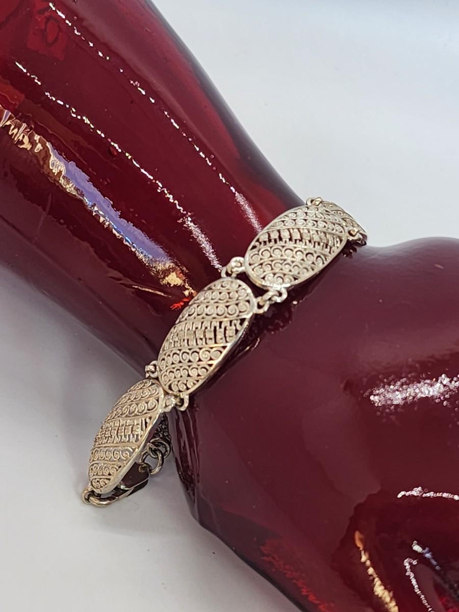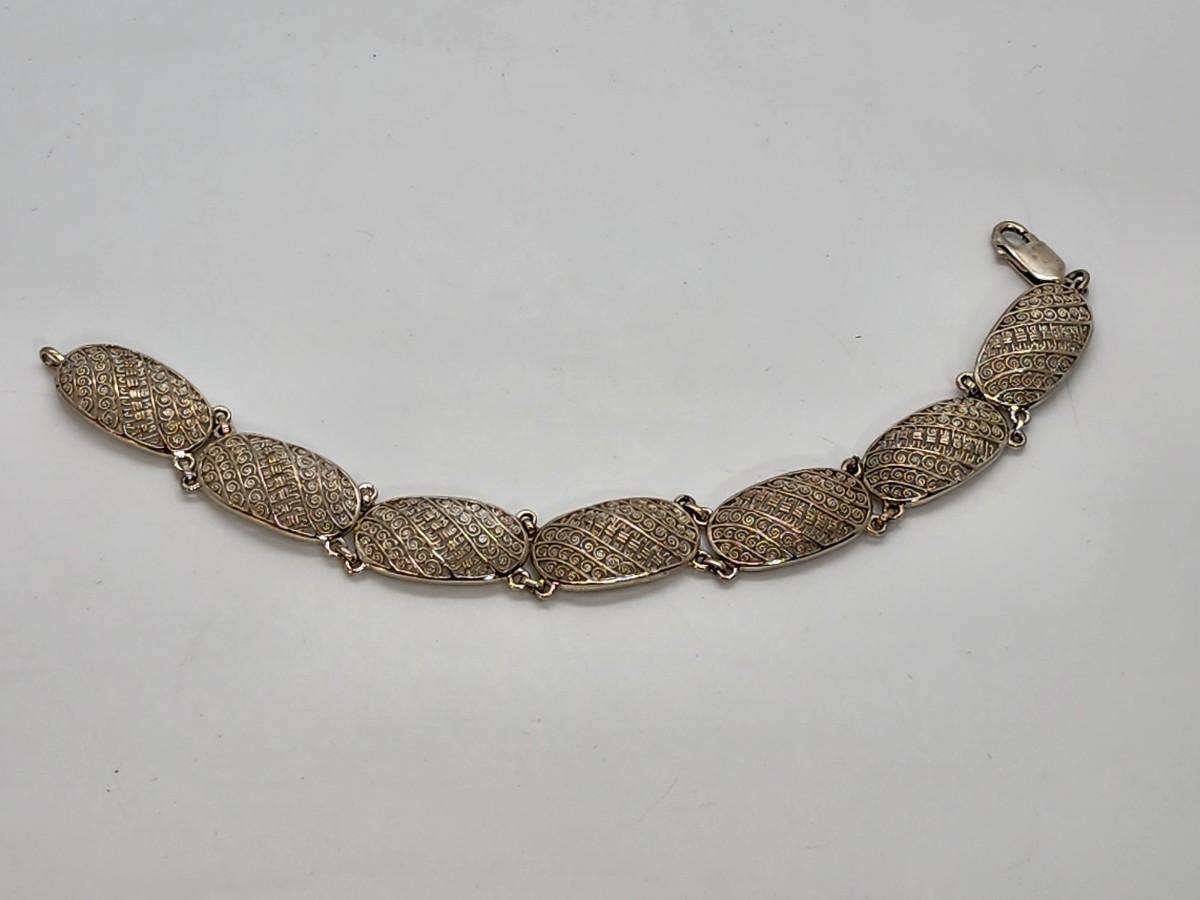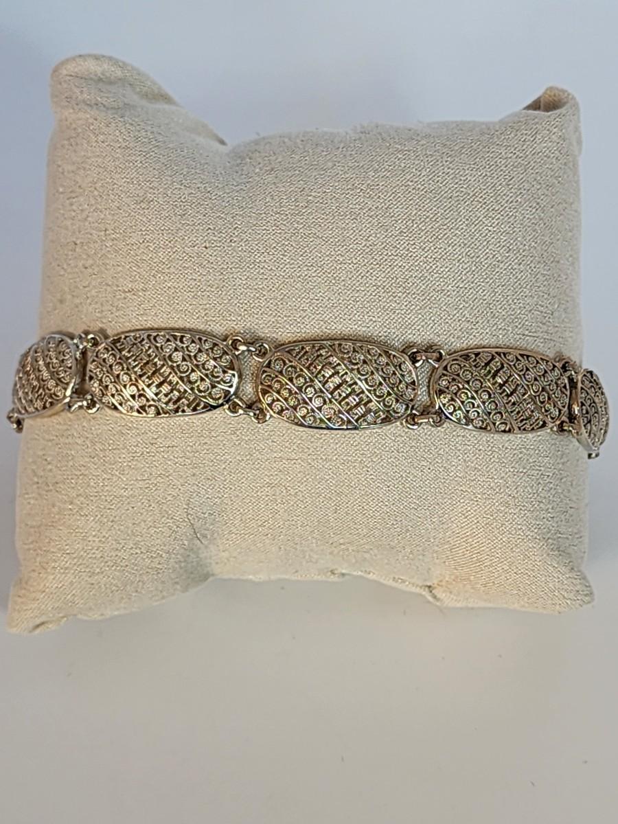 LOT 24:: Beautiful Sterling Filigree Link Bracelet Germany 7.5"L- 10.9g