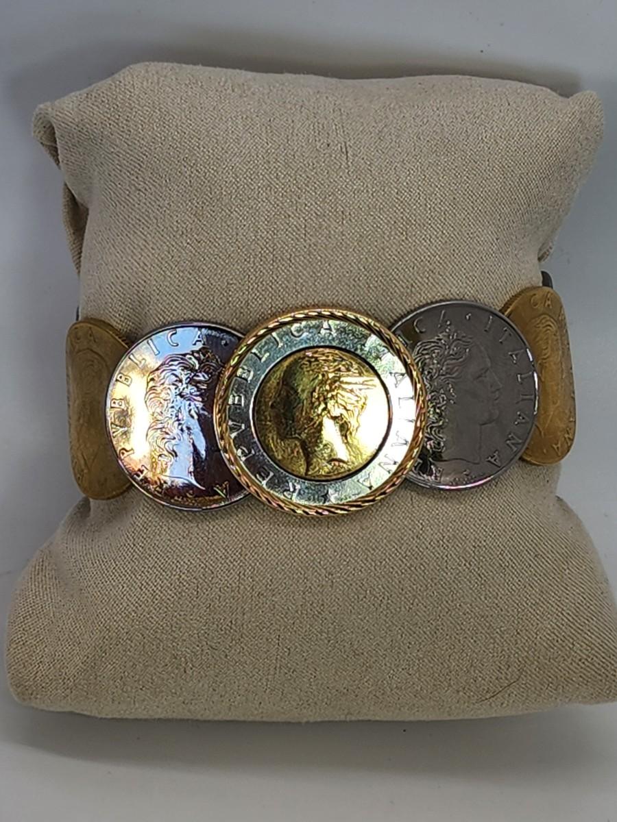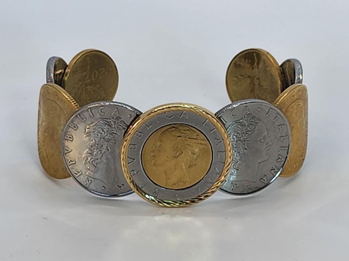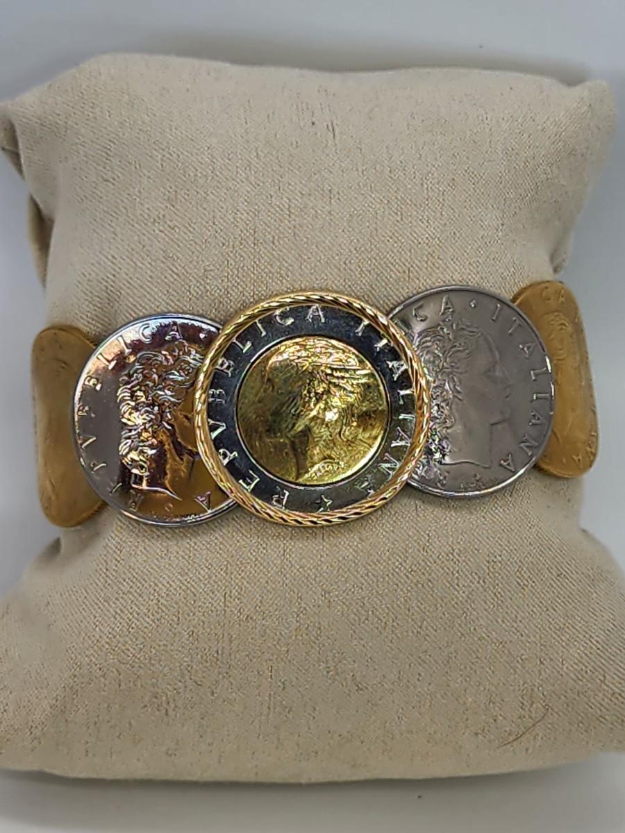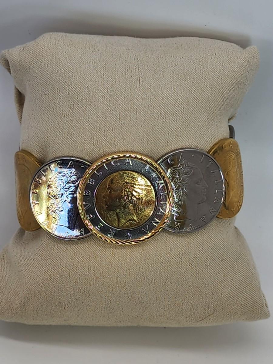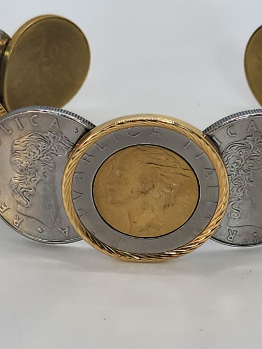 LOT 25:: 14k Gold Bezel Stainless Steel Milor Italy Two tone Coin Bracelet by QVC