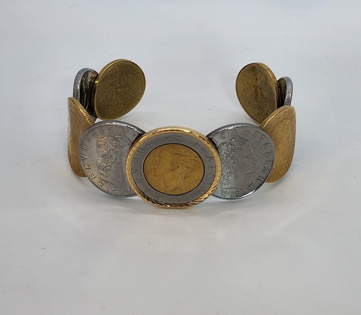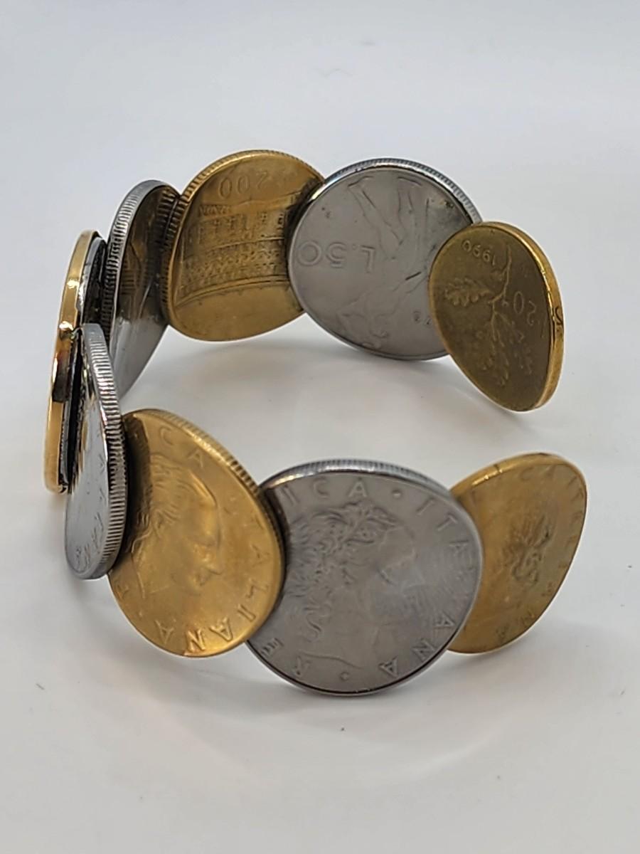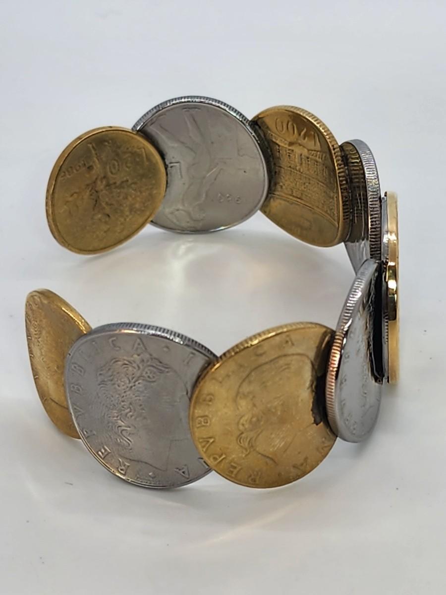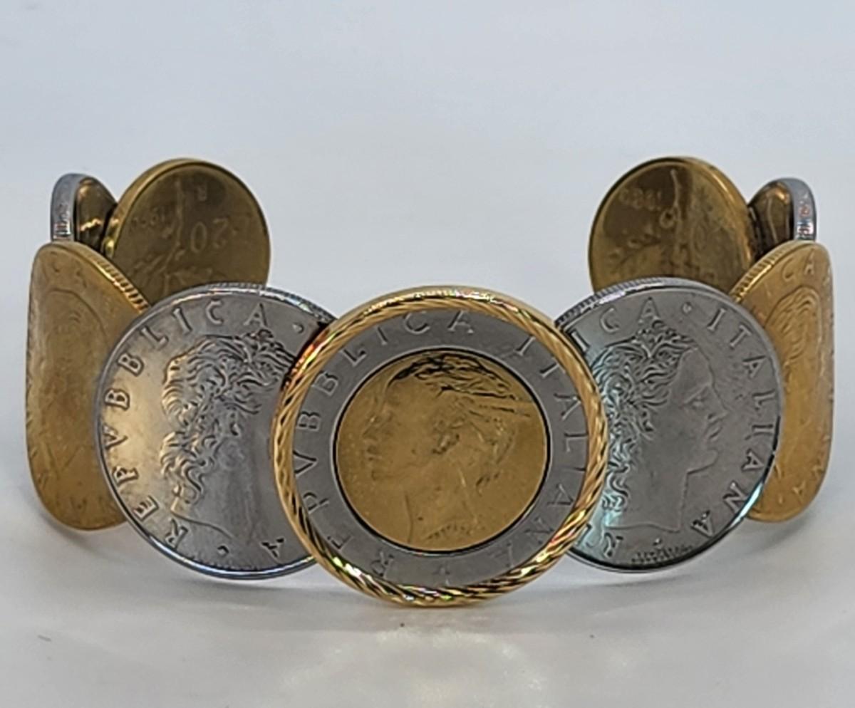 LOT 25:: 14k Gold Bezel Stainless Steel Milor Italy Two tone Coin Bracelet by QVC