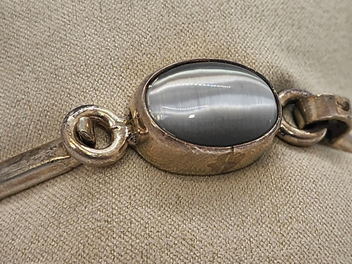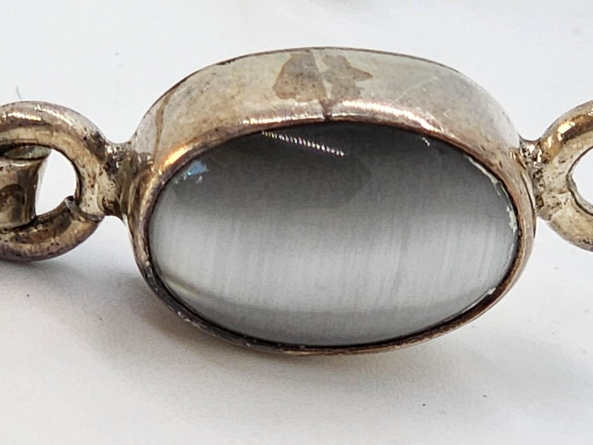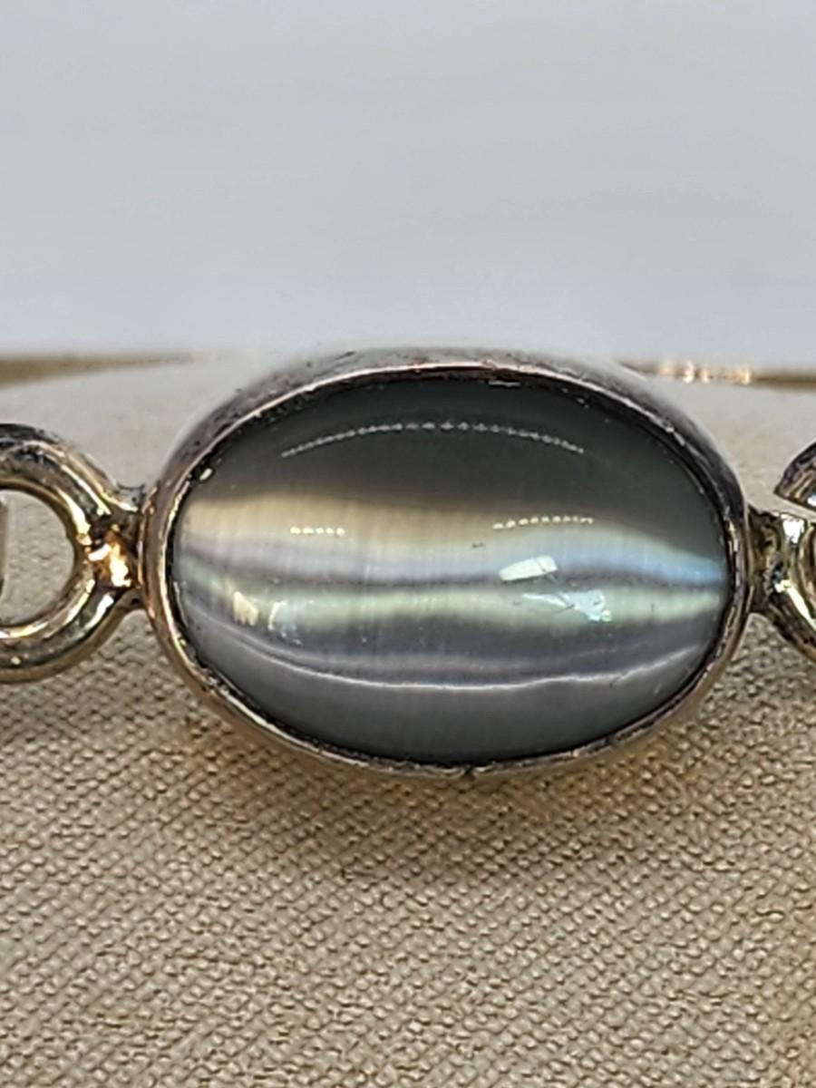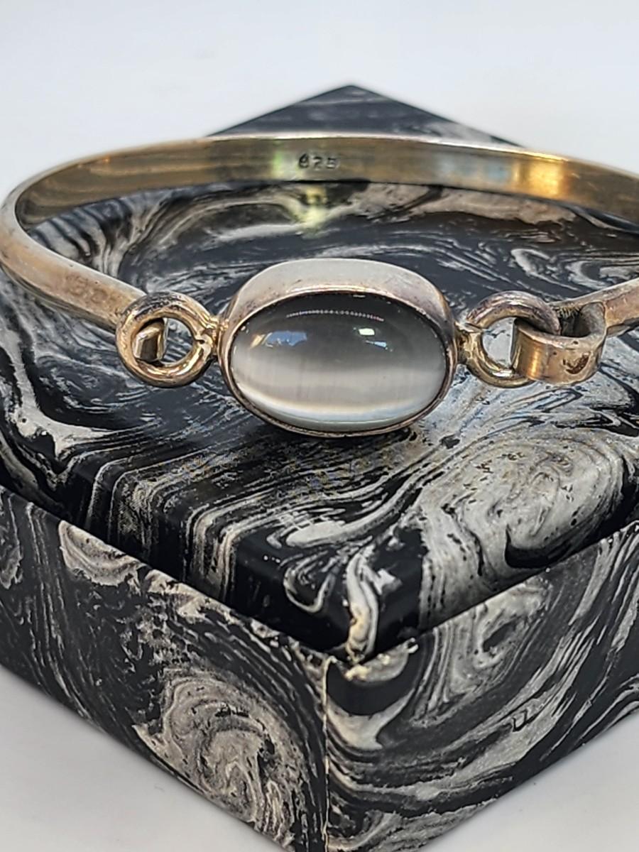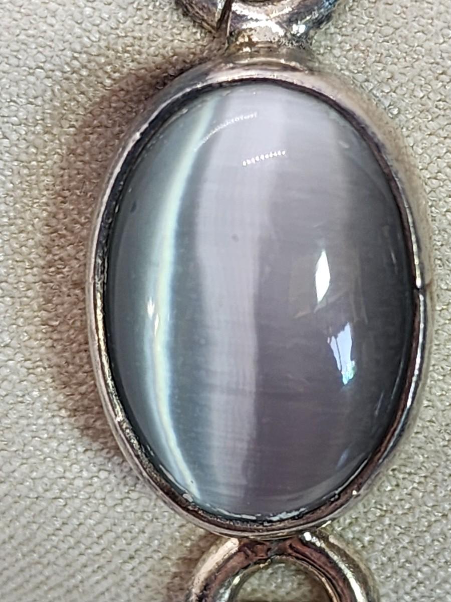 This gem has been referred to as dark mother of pearl, grey moonstone and dark cats eye and fiber optic glass. Whatever it is one thing is certain, it's gorgeous!