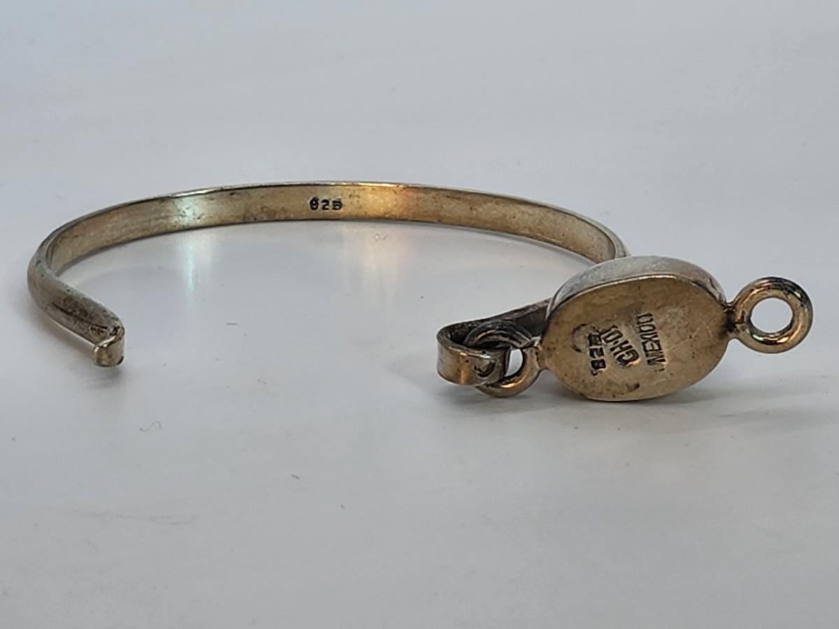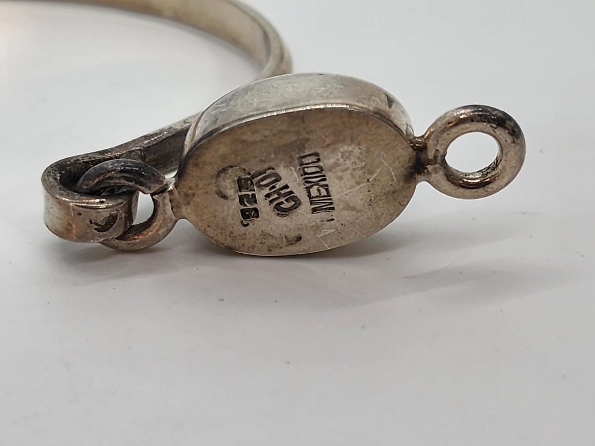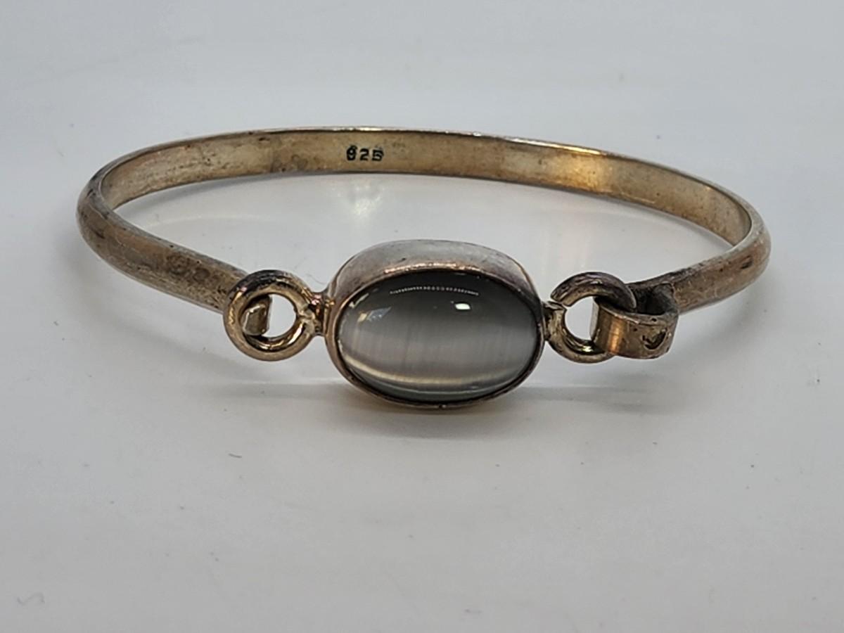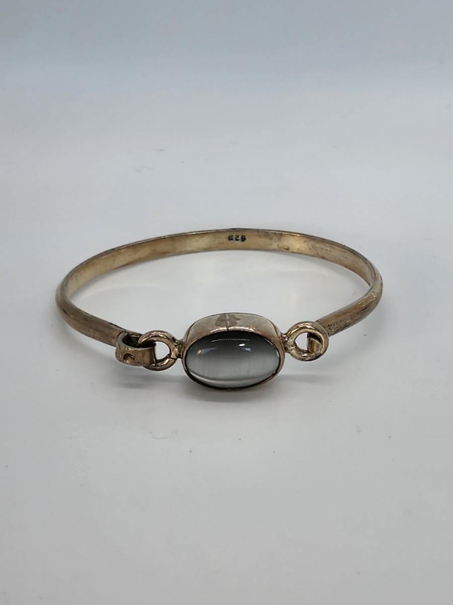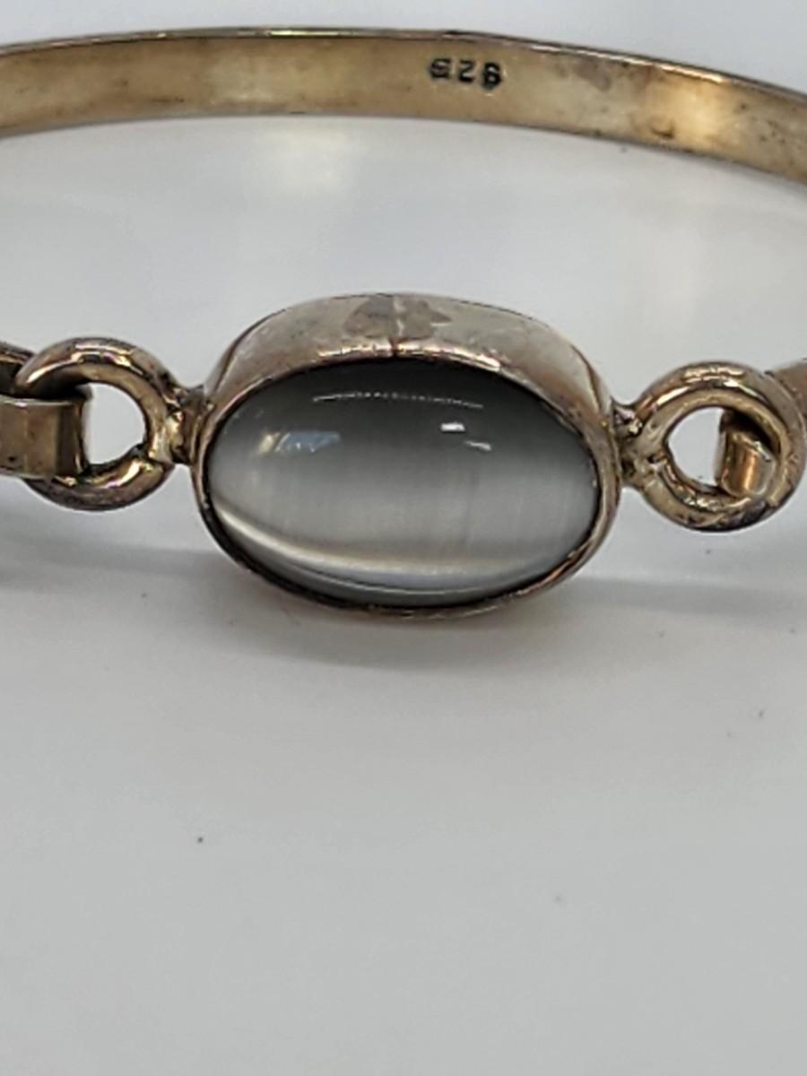 LOT 26 :: 925 Mexico Sterling Silver Hinged Gemstone Bangle Bracelet - 19.7gtw