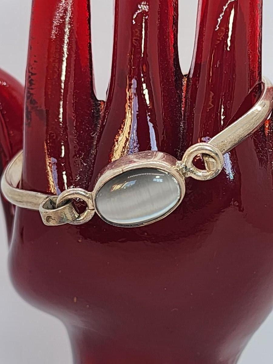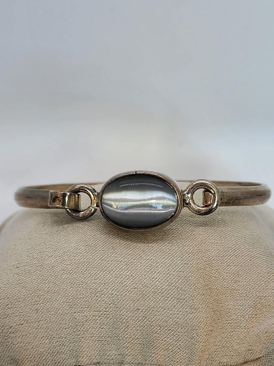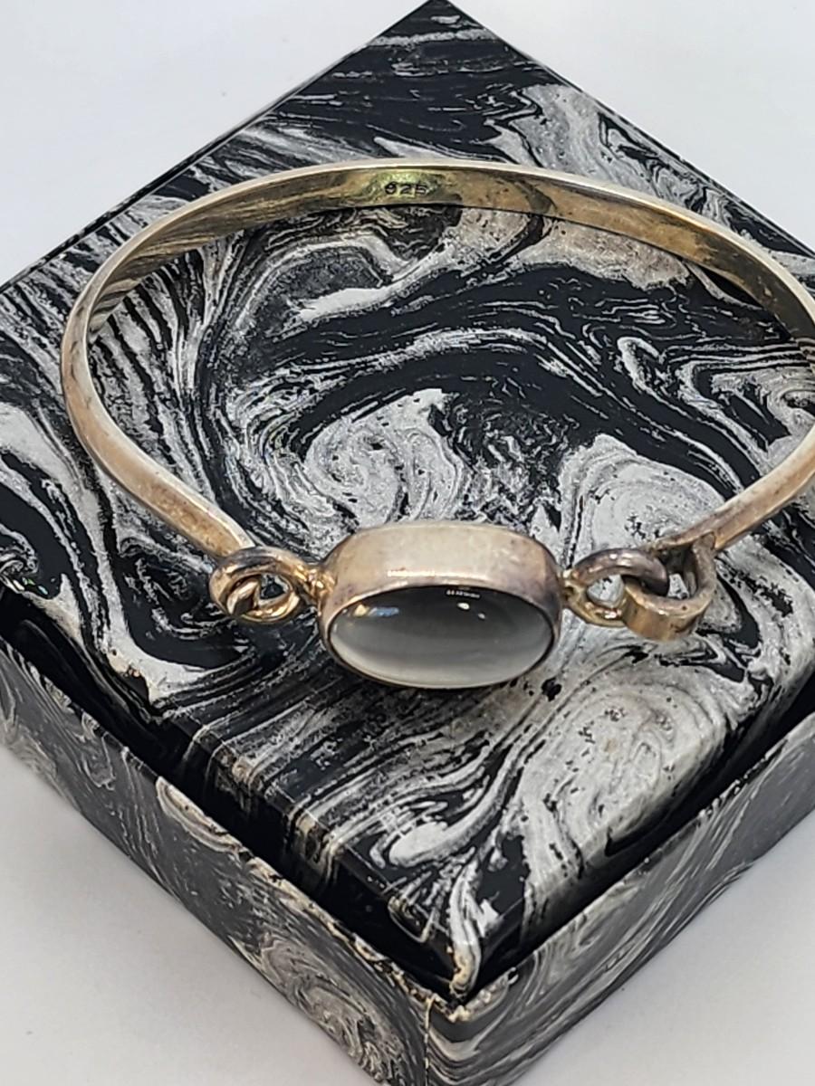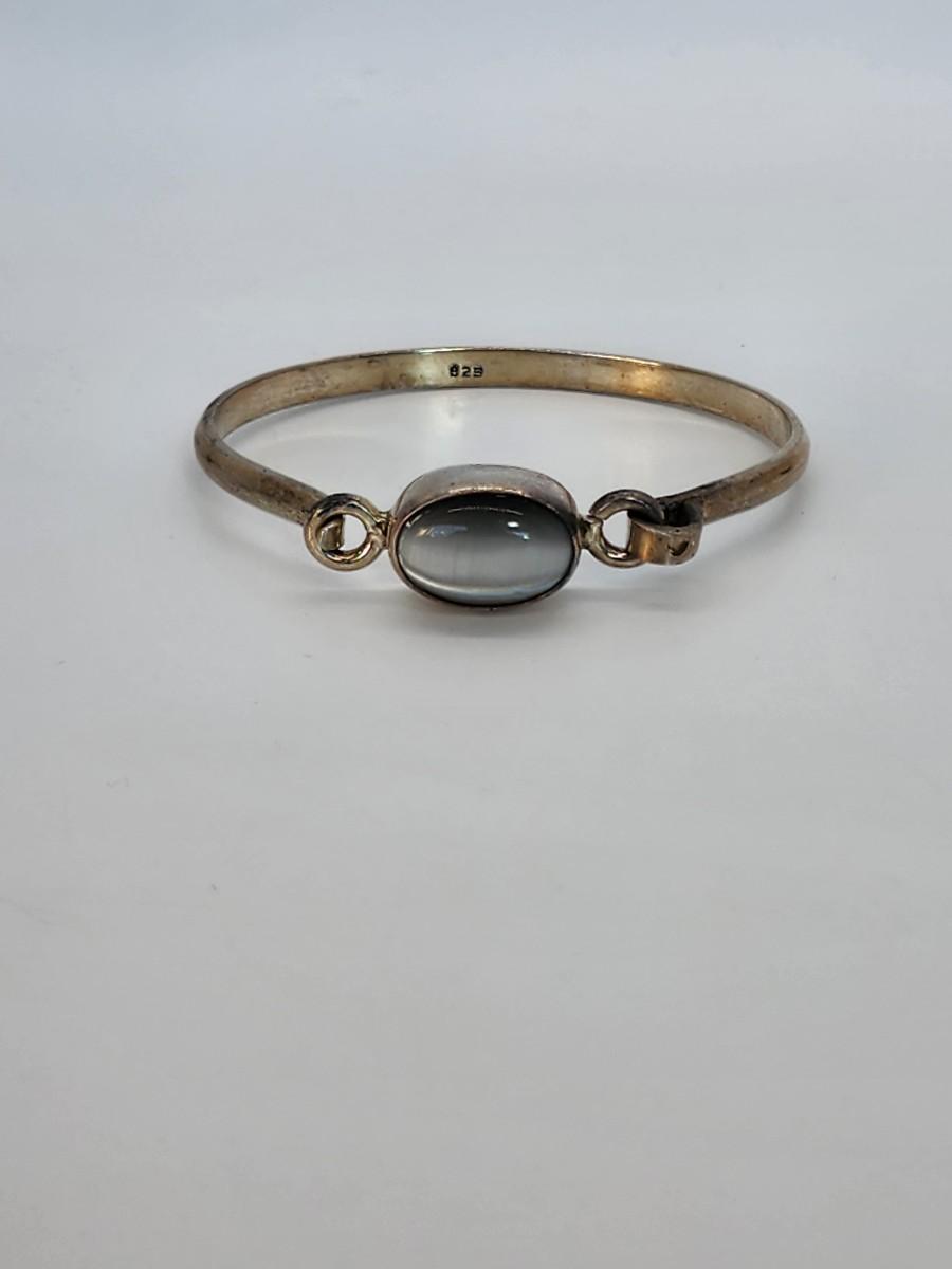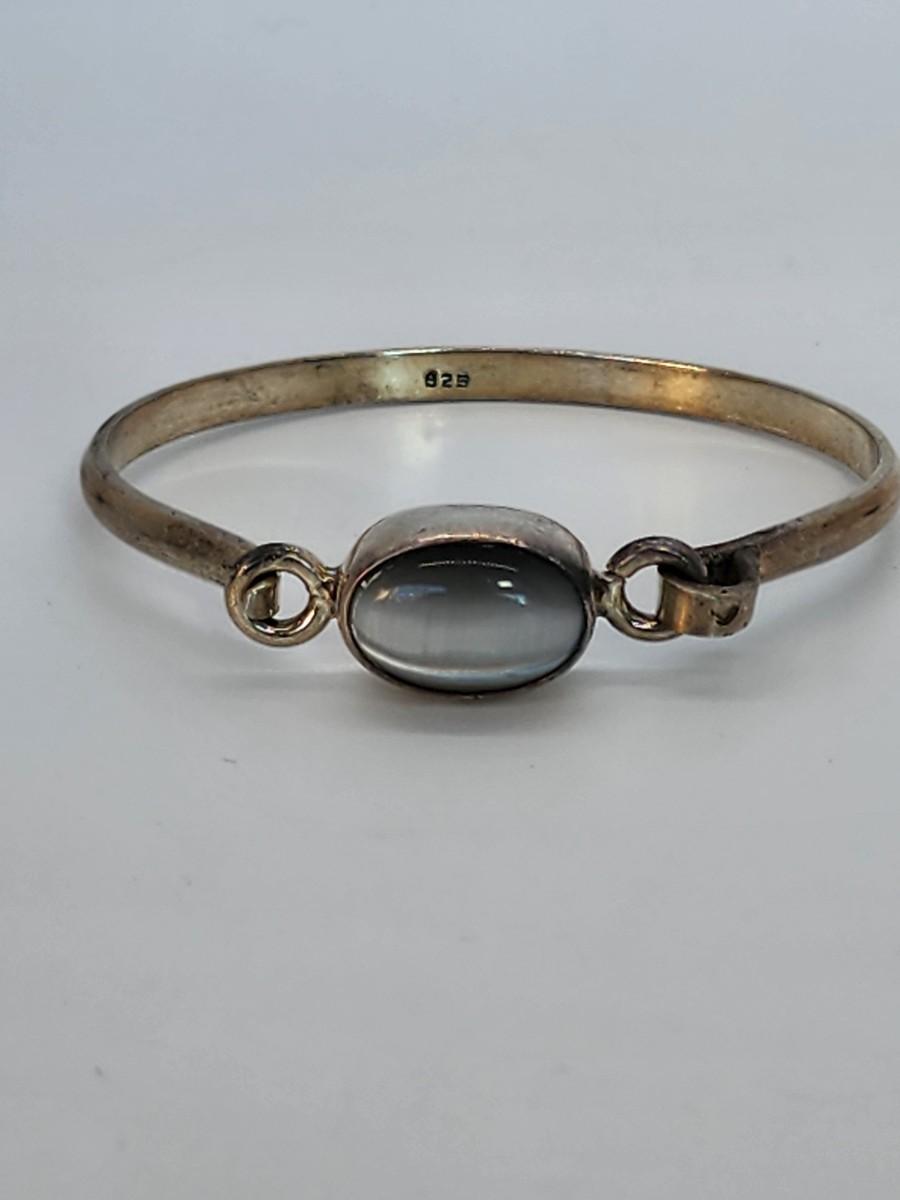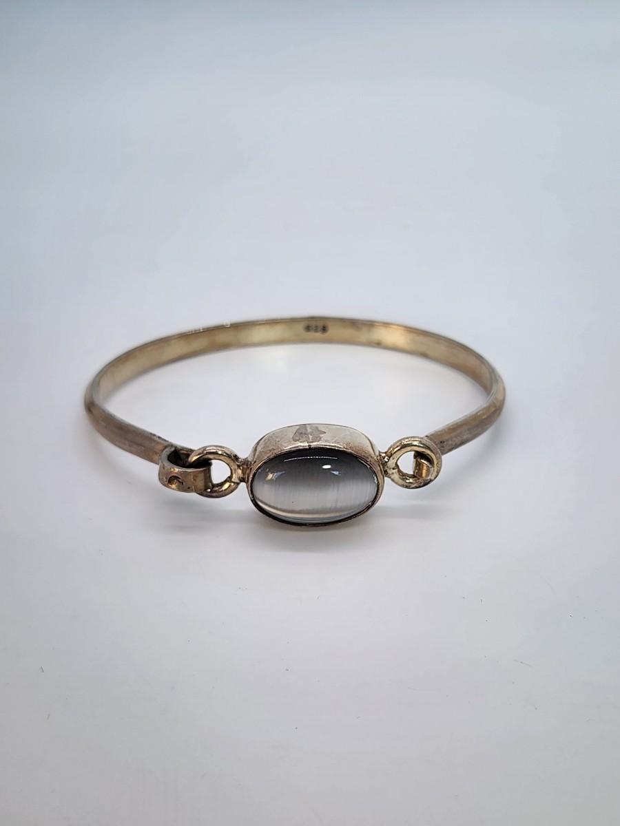 LOT 26 :: 925 Mexico Sterling Silver Hinged Gemstone Bangle Bracelet - 19.7gtw