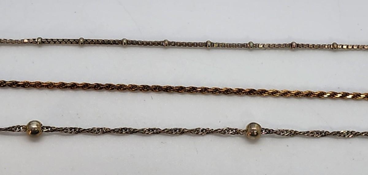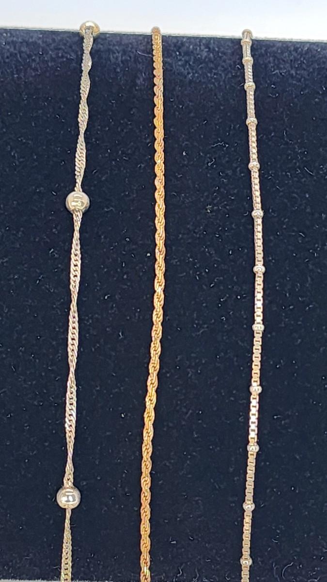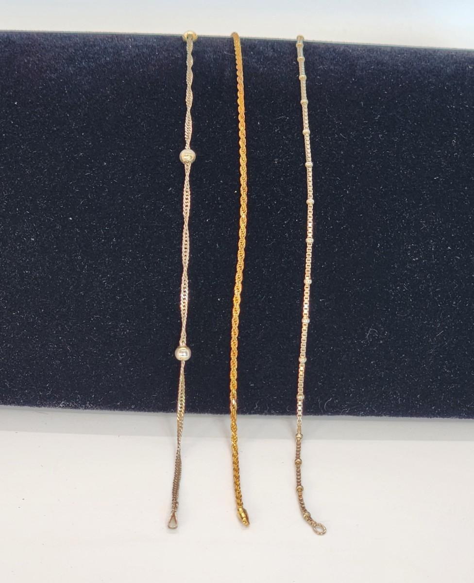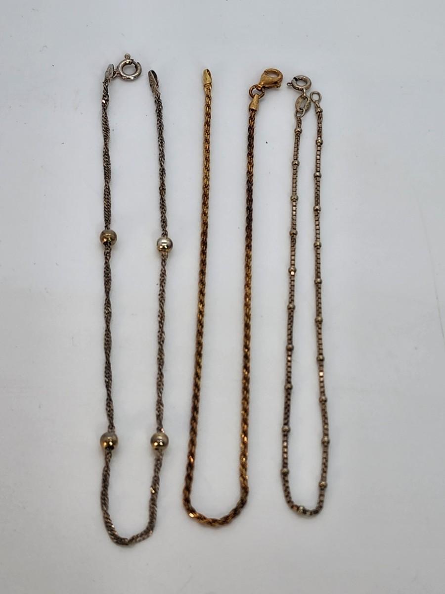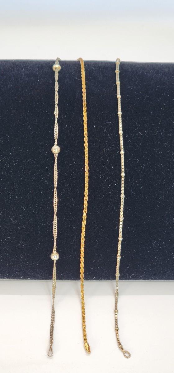 LOT 27:: Three Sterling Silver 925 Italy Ankle Bracelets- one is gold vermeil