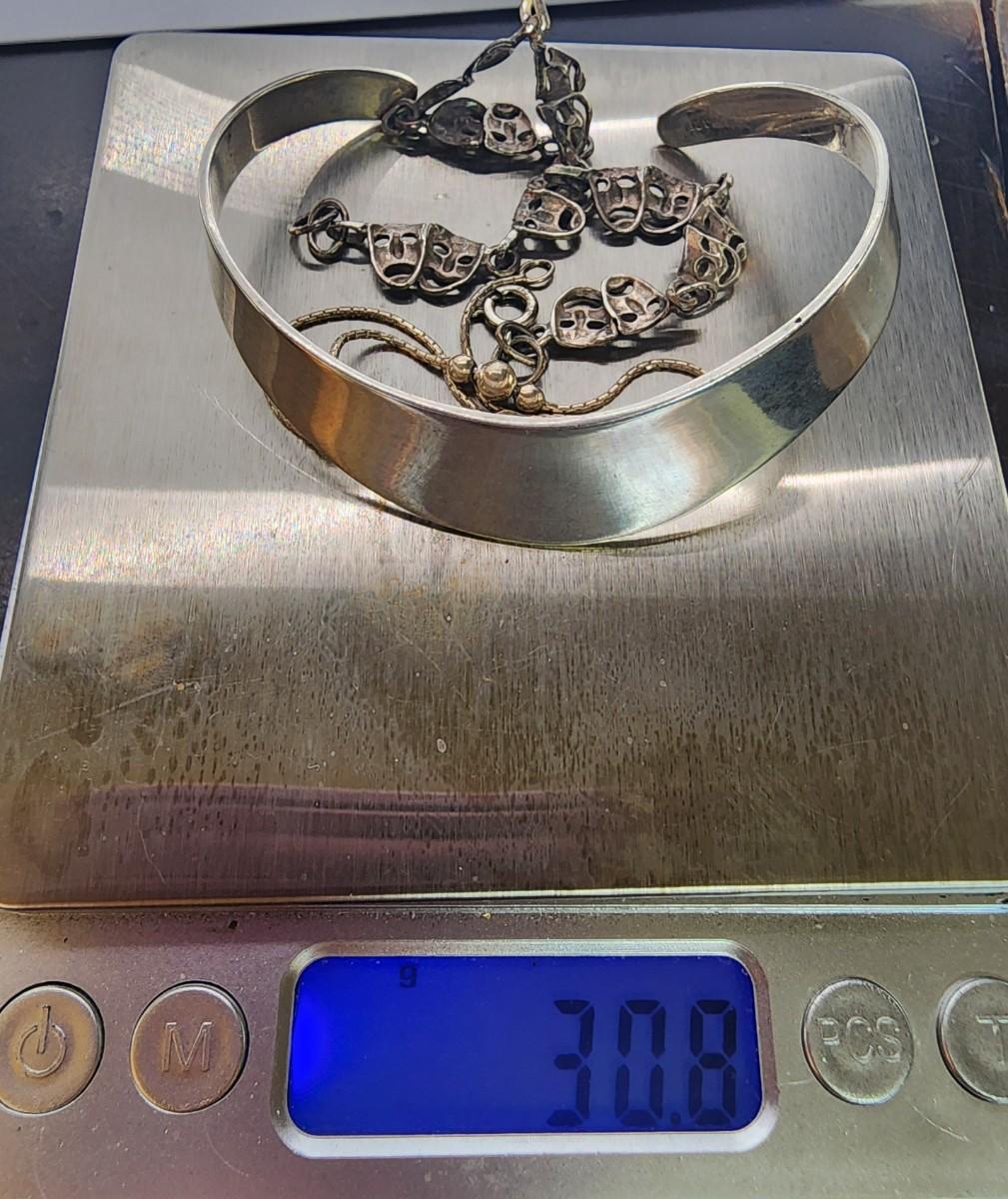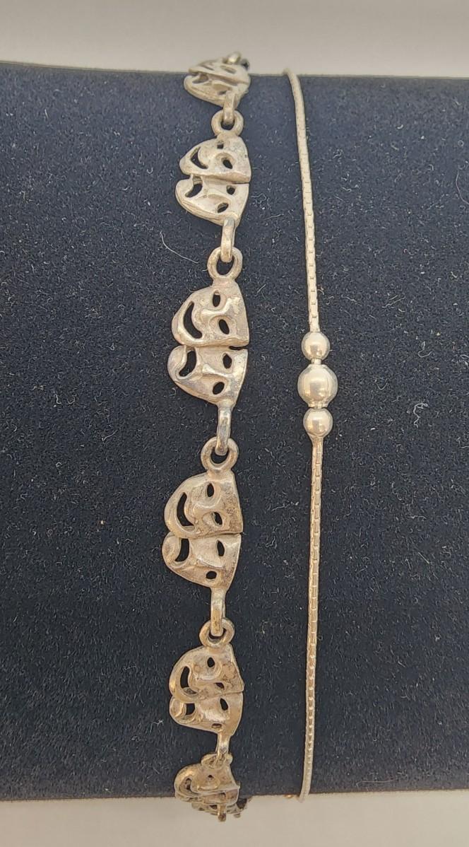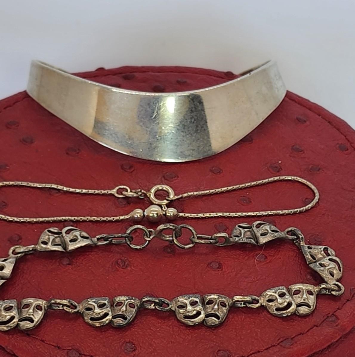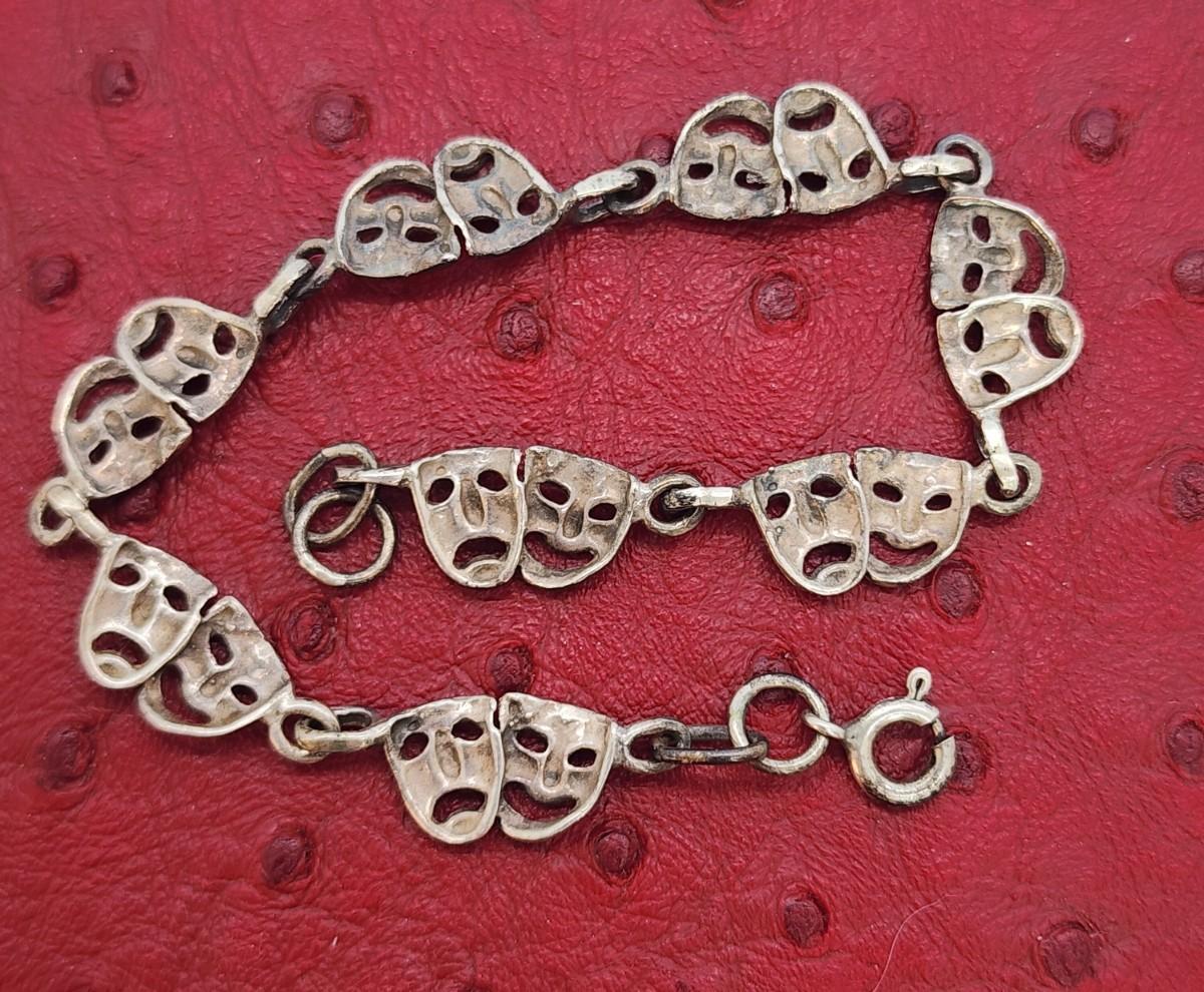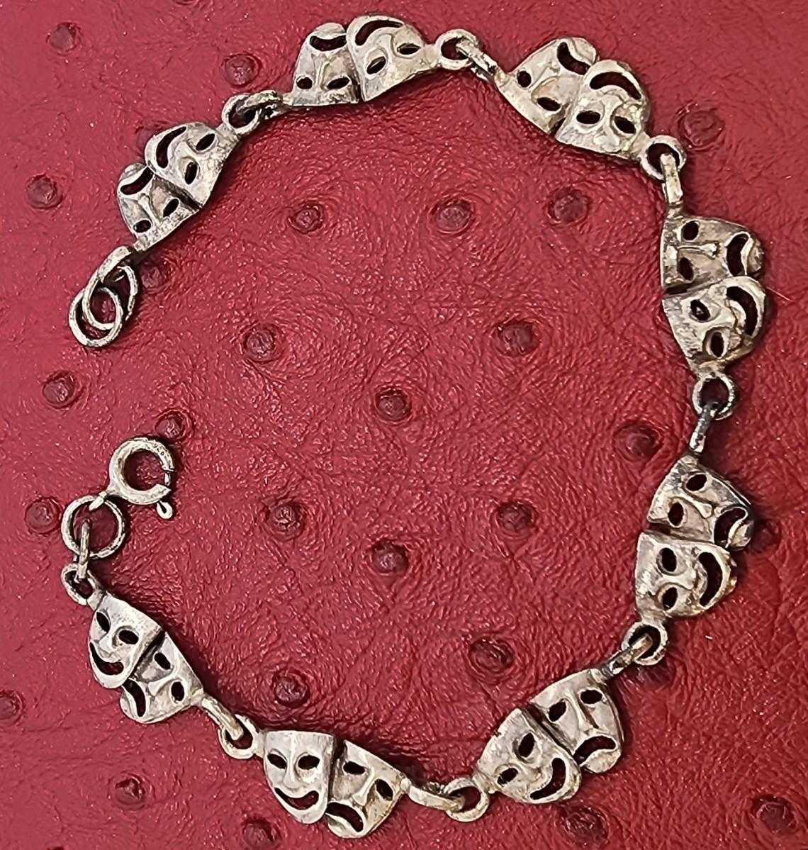 LOT:: Sterling Silver Bracelets- Classis Wave Cuff, I7" L Italian balls on rope chain and 7" L Comedy tragedy theater masks 30.8g