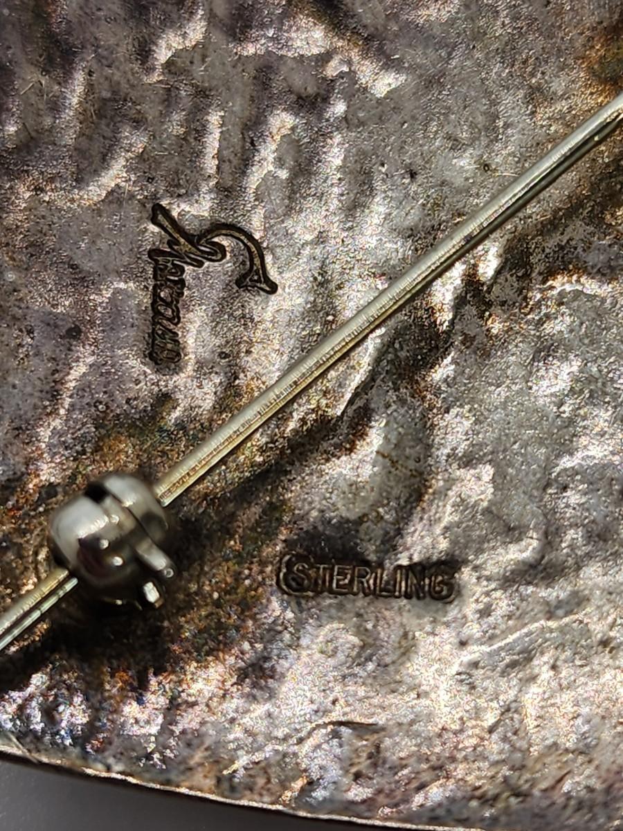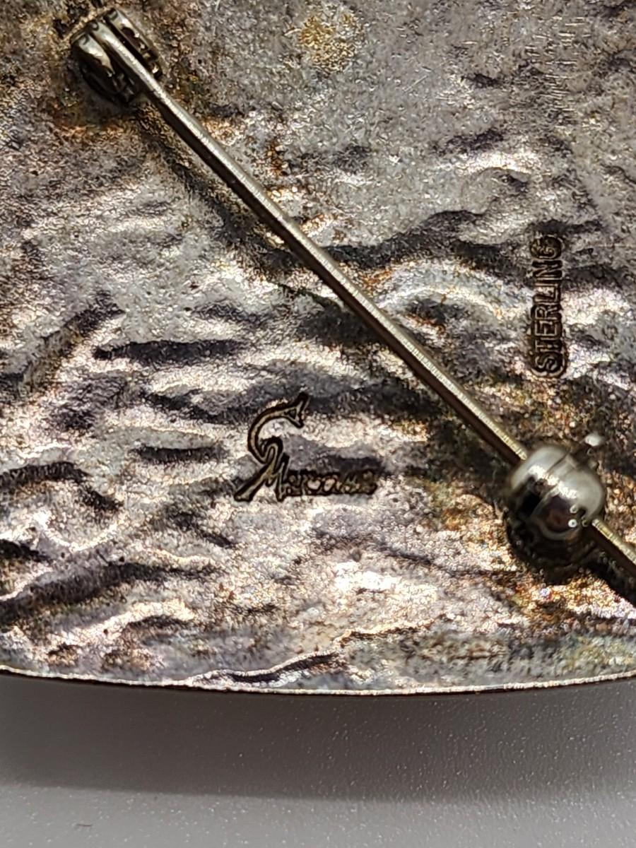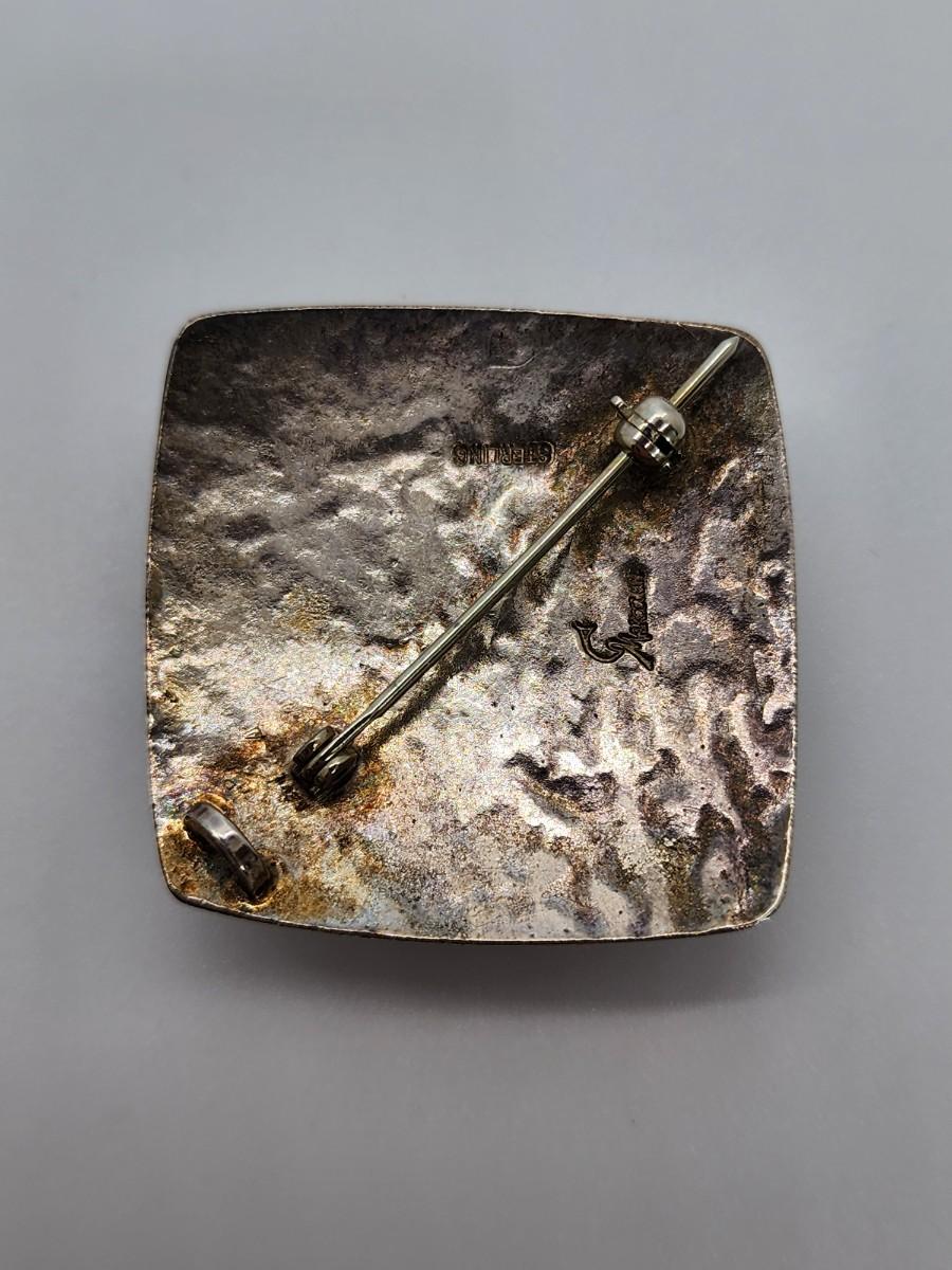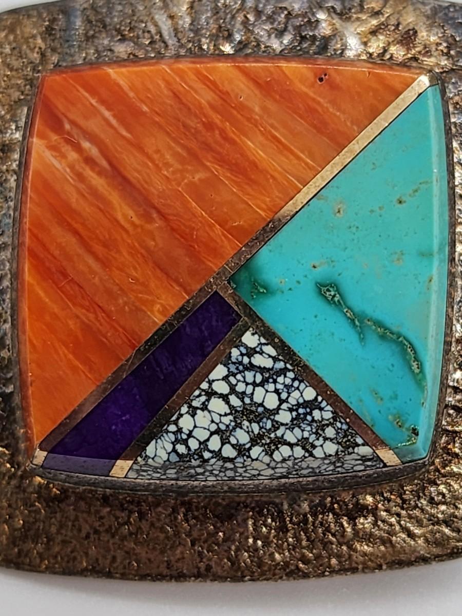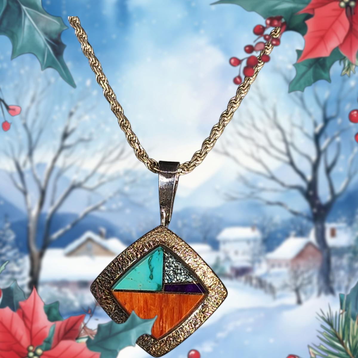 LOT 36:: Vintage Beautiful Inlaid Turquoise and other gemstones Pendant/Brooch with removable Bail and a thick 18"L Chain 925 Italy