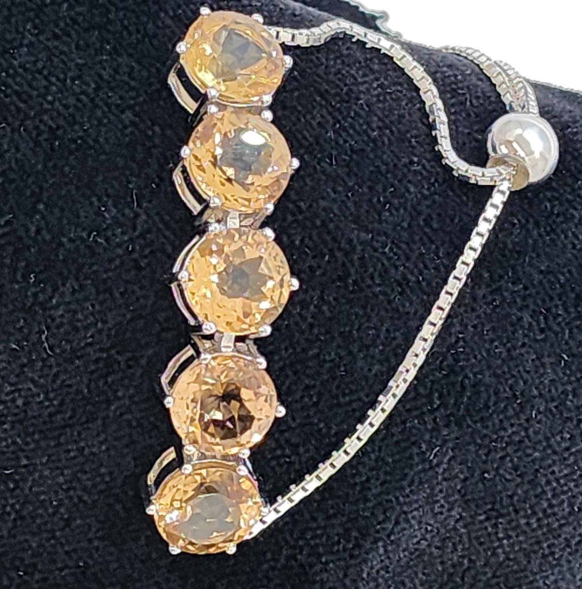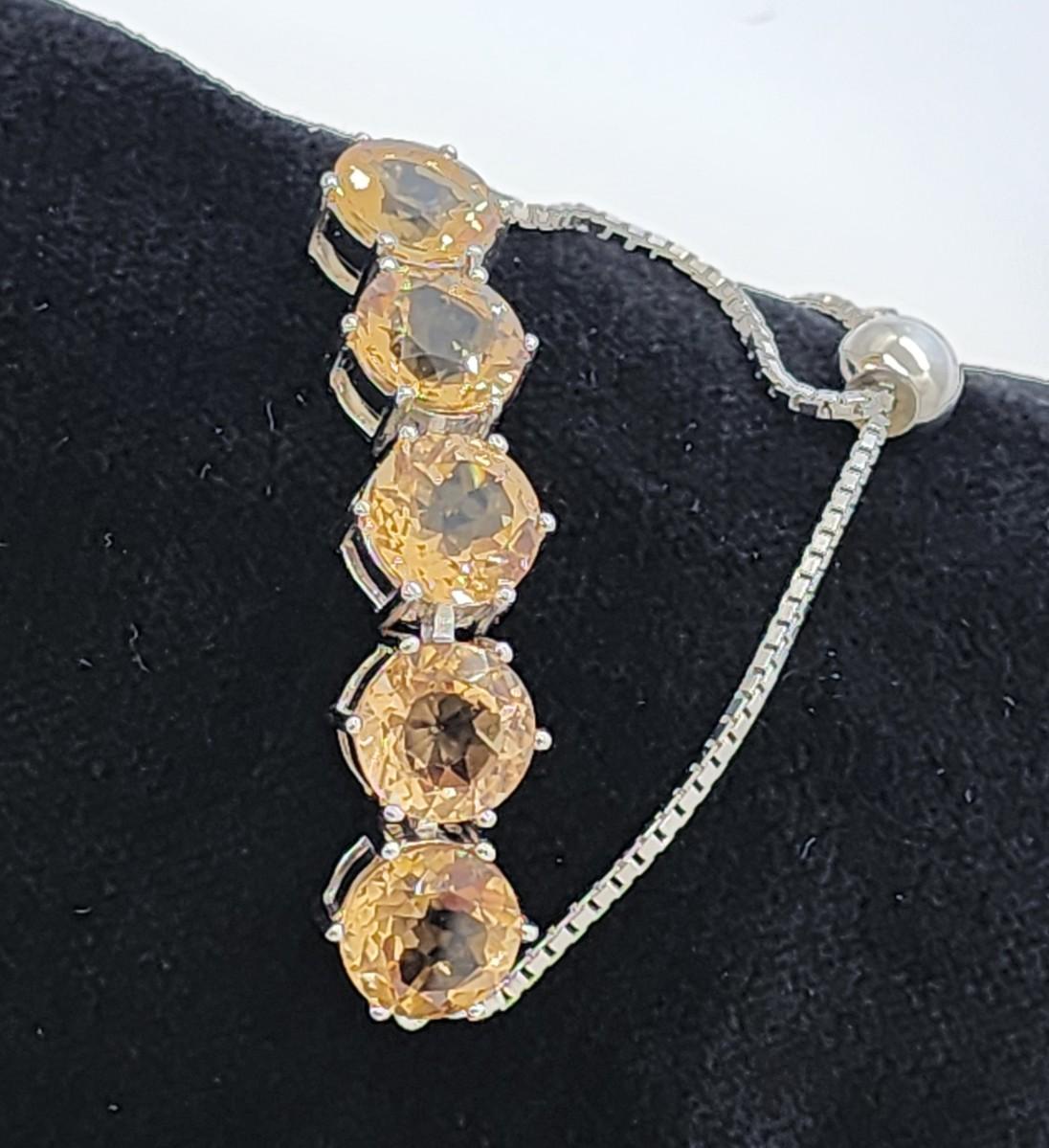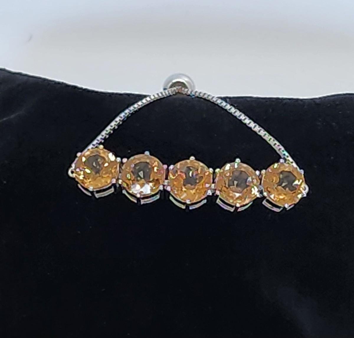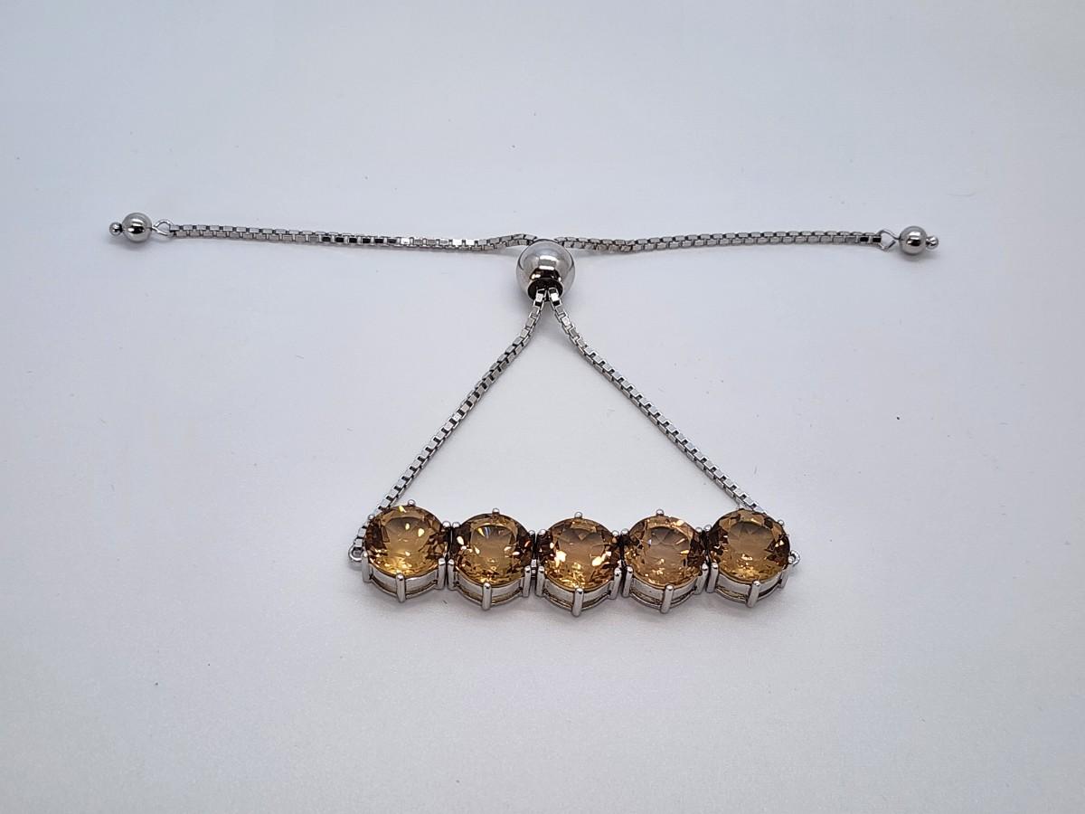 LOT 39:: Beautiful Citrine Sterling Silver Bolo Slide Bracelet- New in Box !