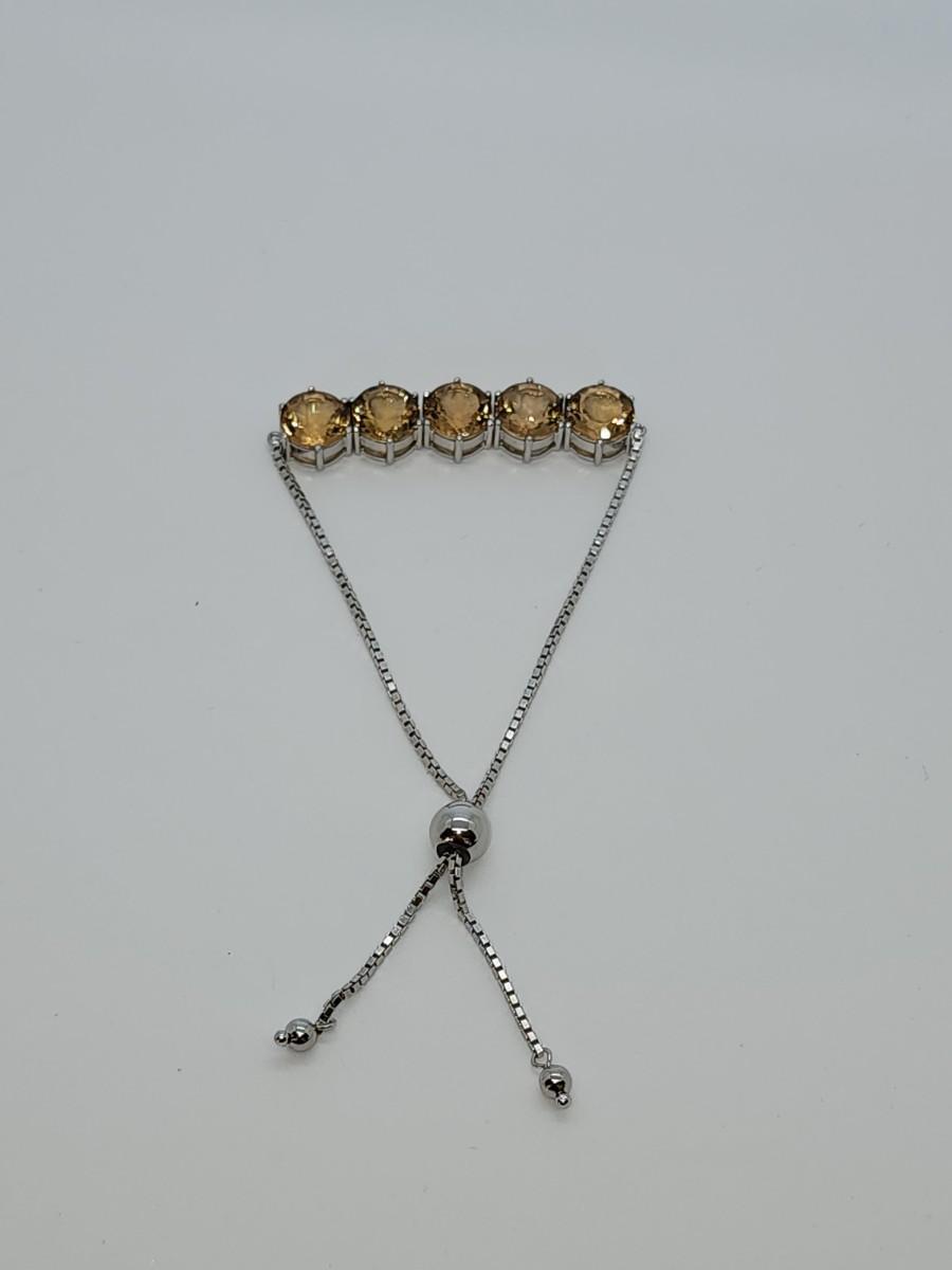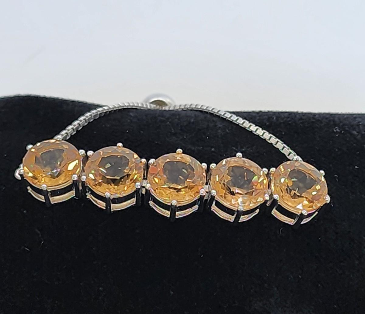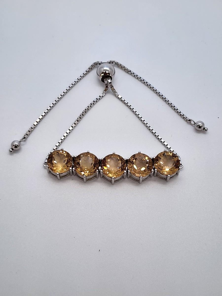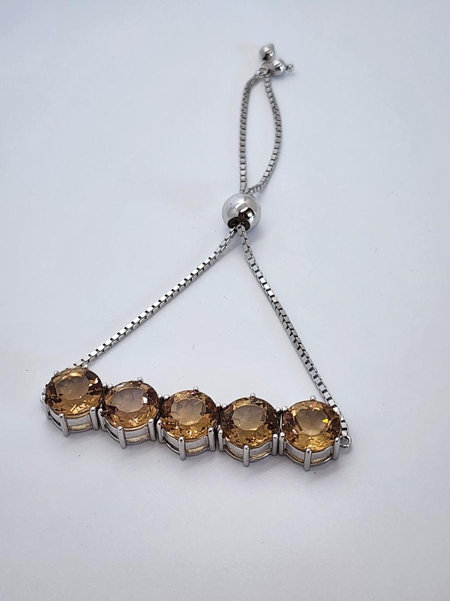 LOT 39:: Beautiful Citrine Sterling Silver Bolo Slide Bracelet- New in Box !