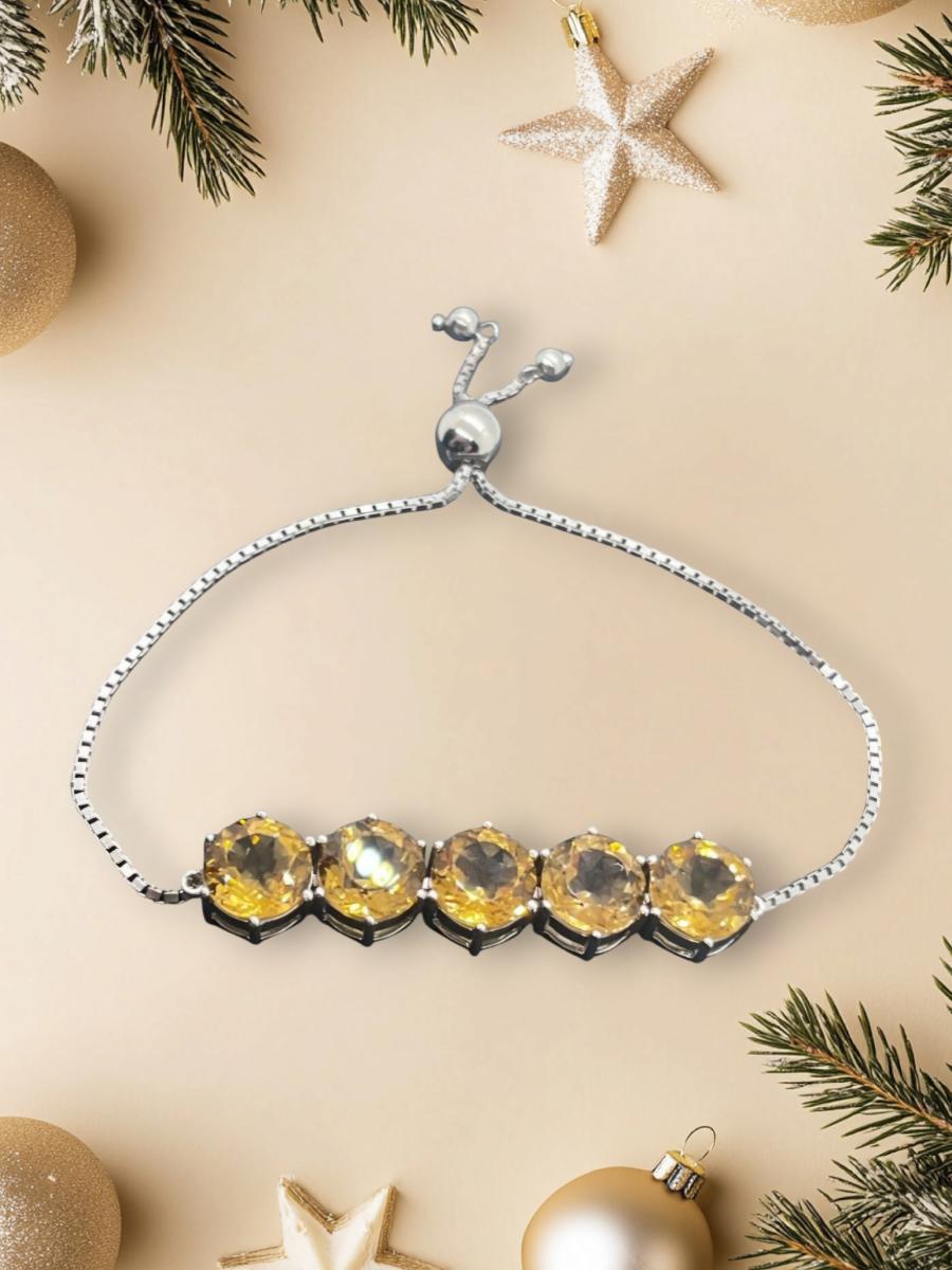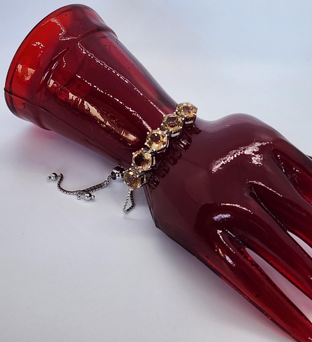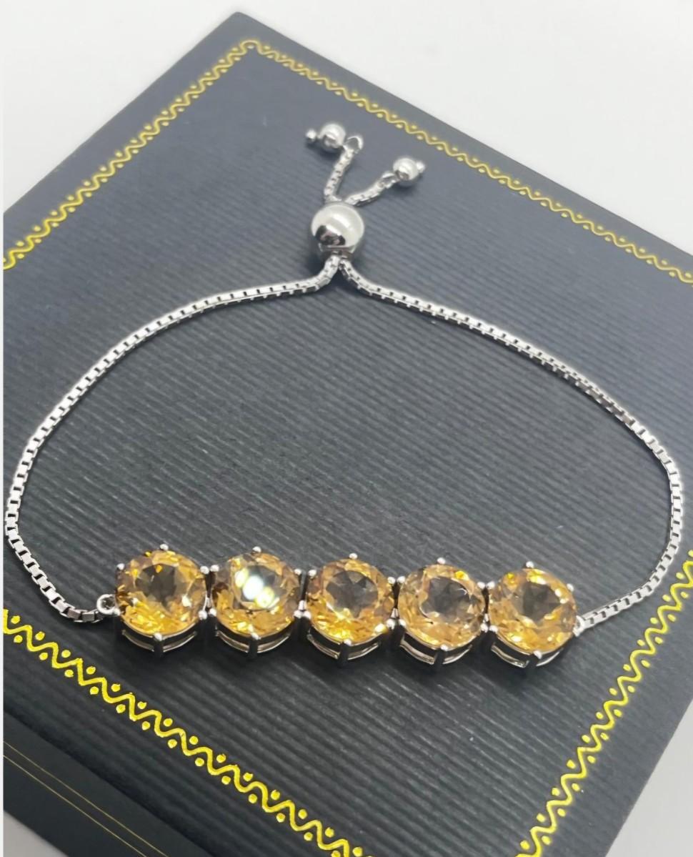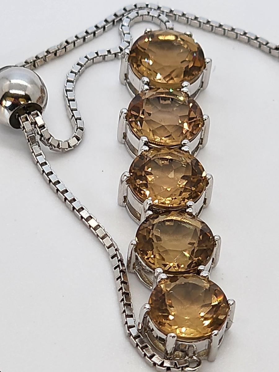 LOT 39:: Beautiful Citrine Sterling Silver Bolo Slide Bracelet- New in Box !