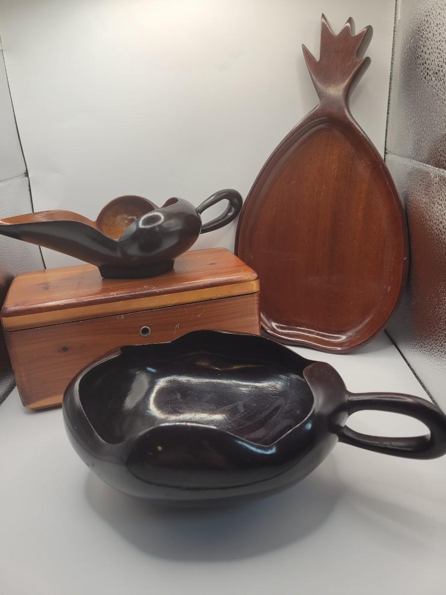 LOT:: 56 Mini Lane Chest & Three MCM Serving Pieces