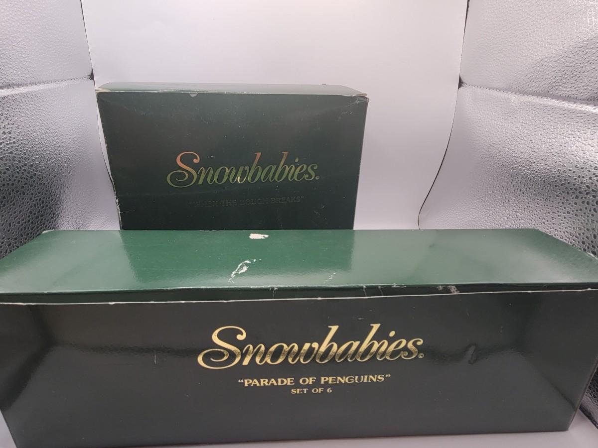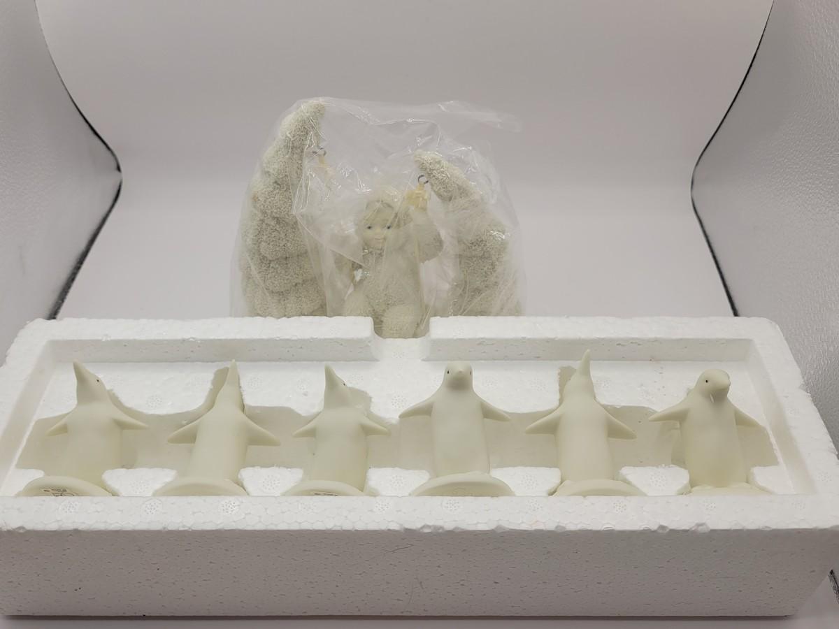 LOT:: 63 Snowbabies "When The Bough Breaks" & "Parade Of Penguins" (6pc) & Two Ornaments