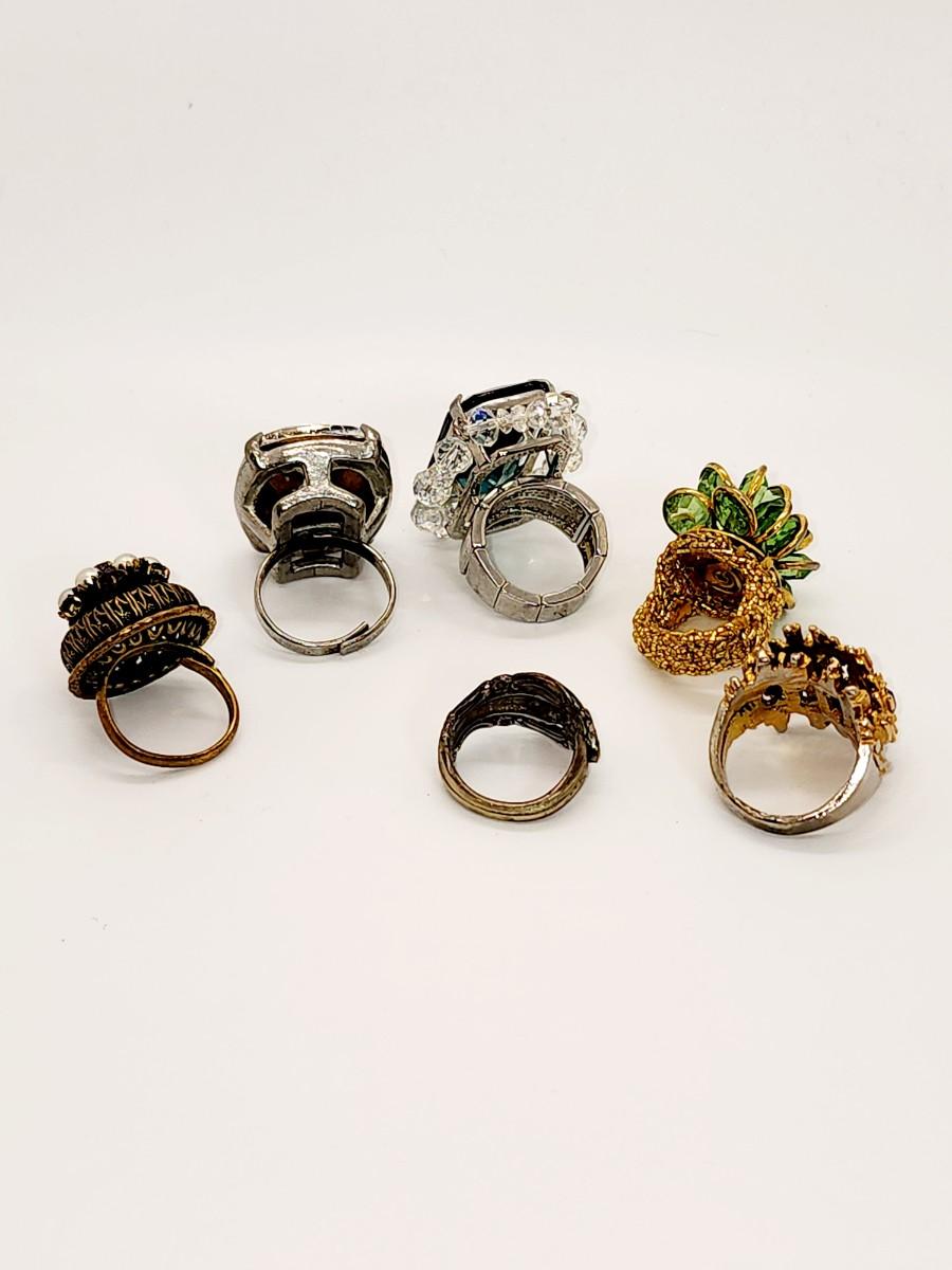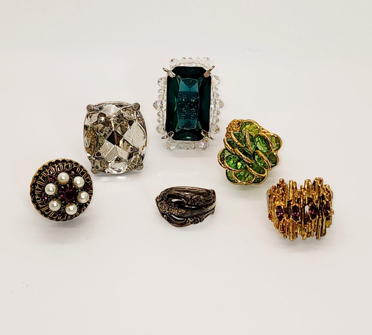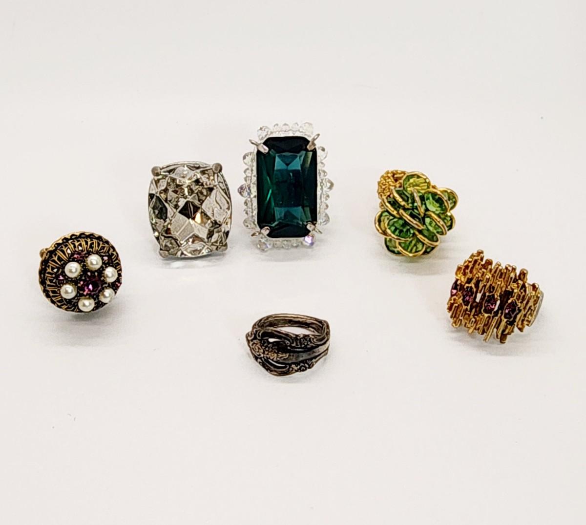 LOT 94:: Vintage Ring LOT - Siverplate- Community spoon ring sz 7, Brutalist Purple stones sz 9 and rest Stretch