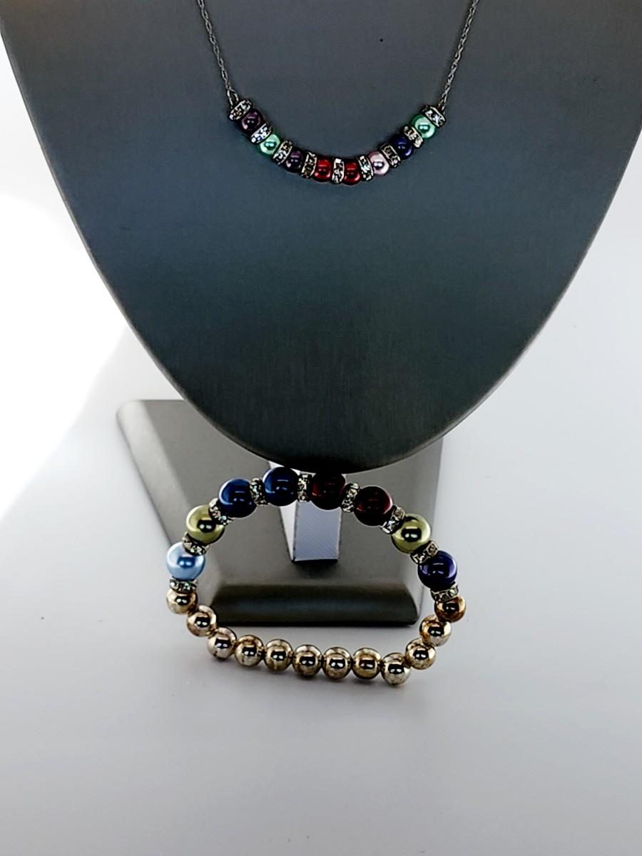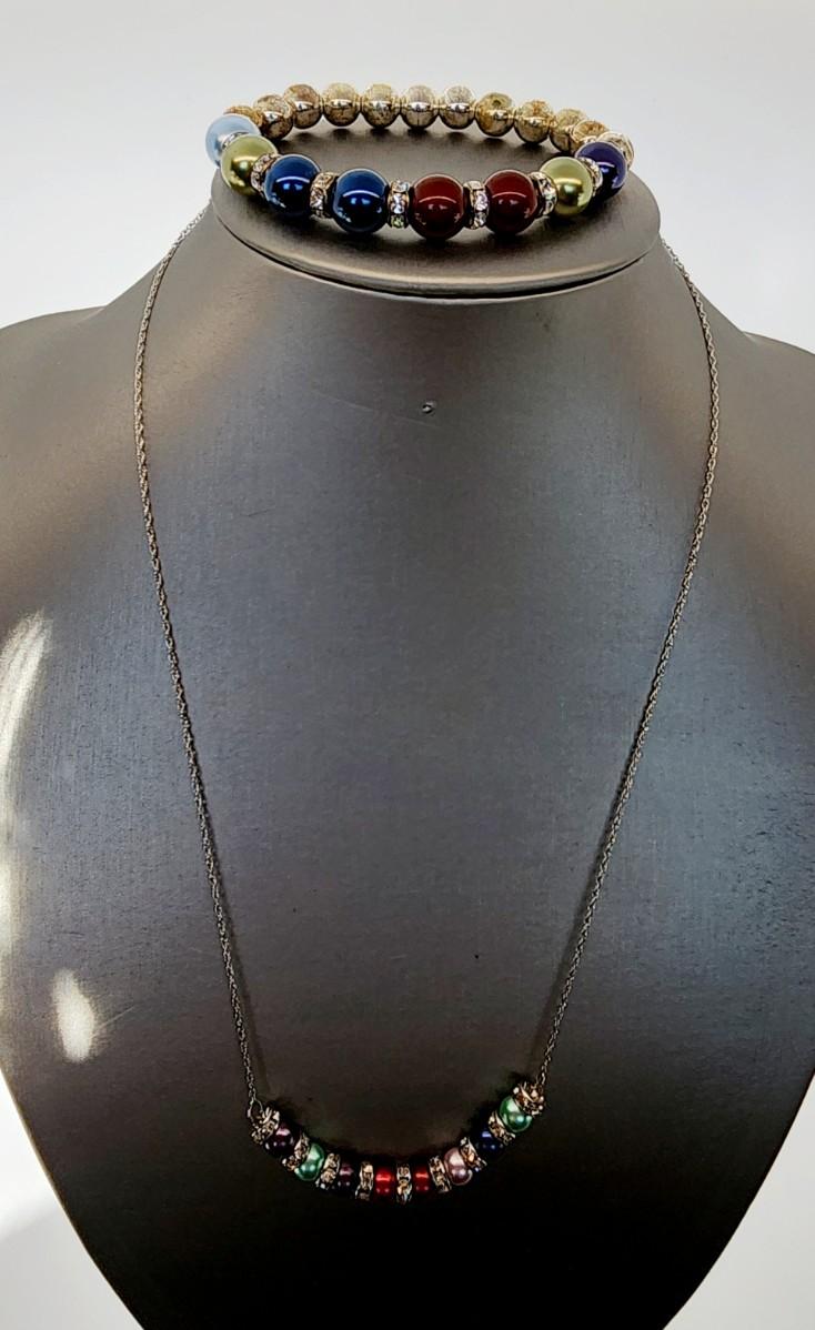LOT 101:: New Sterling Silver Pearl and Crystal Necklace and Bracelet Set