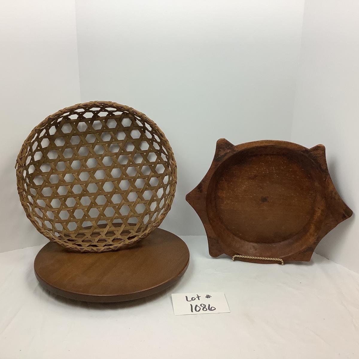 Lot # 1086  African Hand-carved Wood Artisanal Serving Bowl, Wooden Lazy-susan, VintageTobacco Bowl