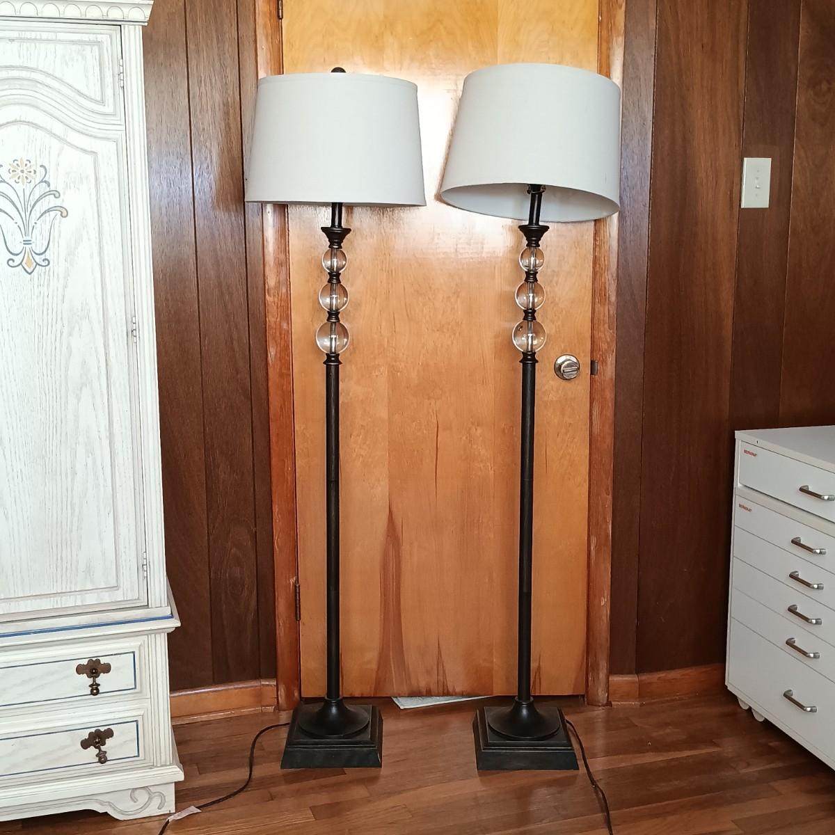 LOT 14: 5ft Metal and Glass Floor Lamps
