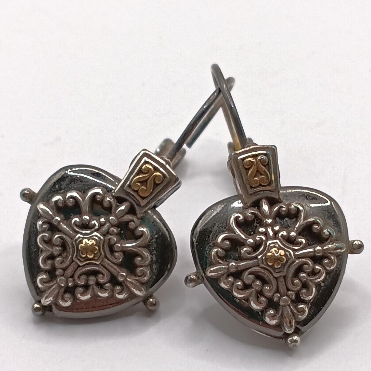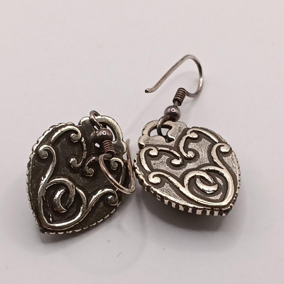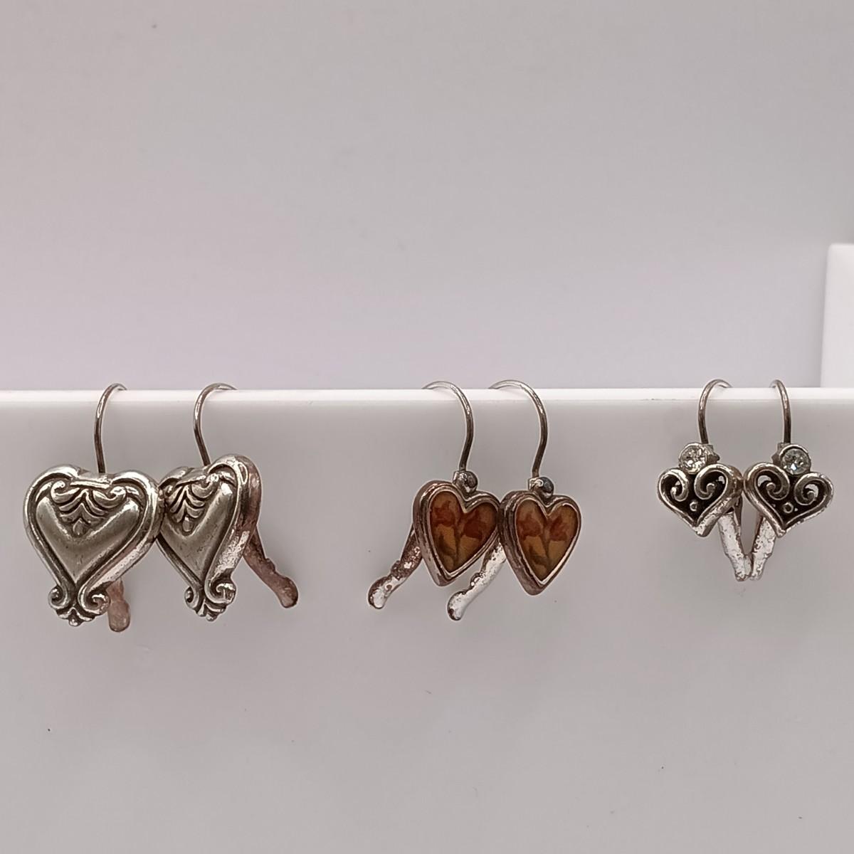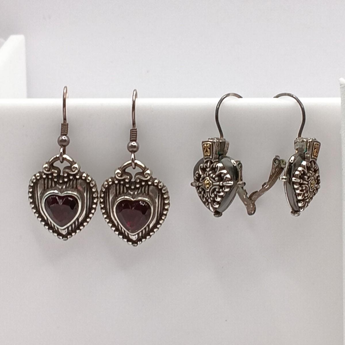 LOT 23: Sterling 925 Basket Weave Heart Earrings w/ a Collection of Silver-Tone Heart Earrings