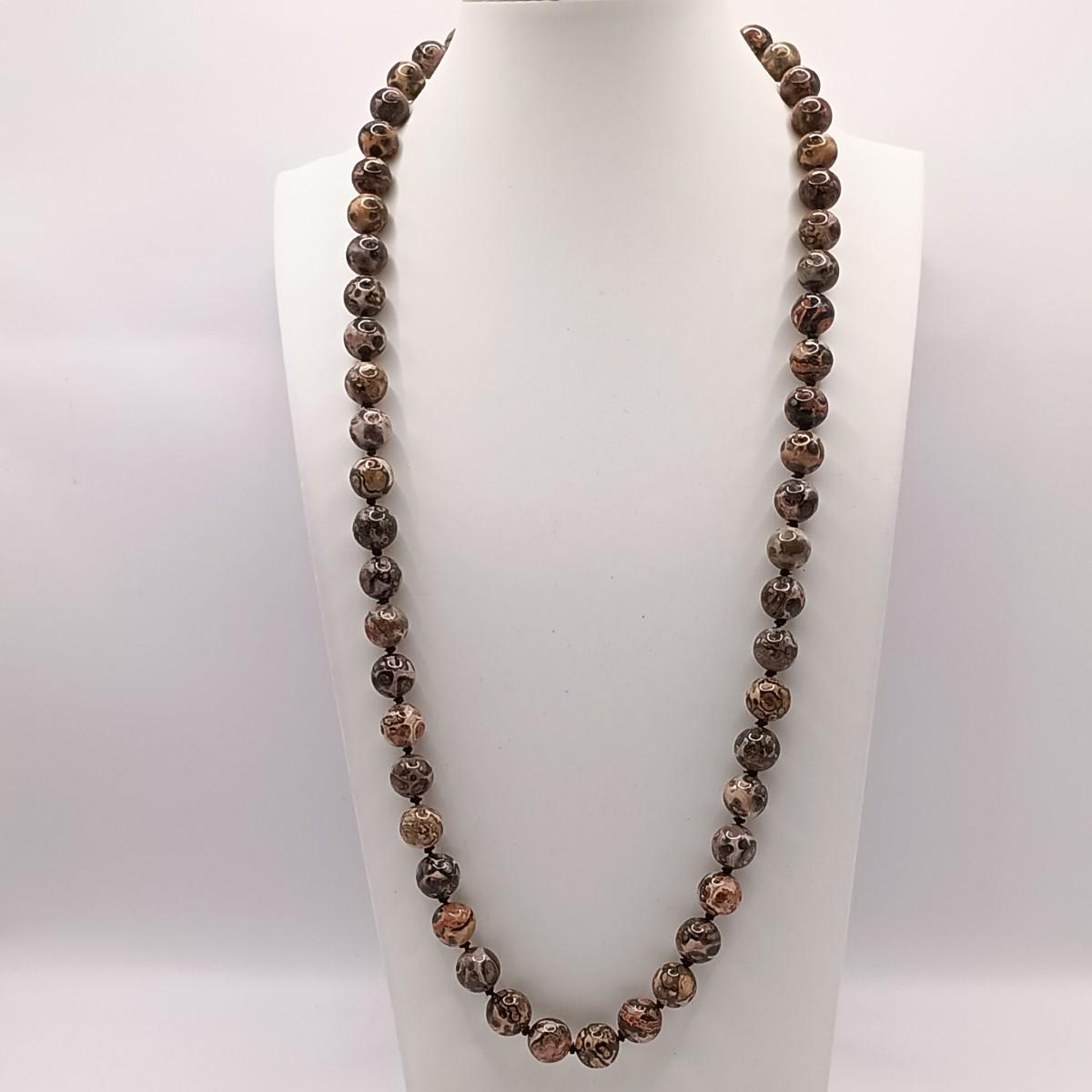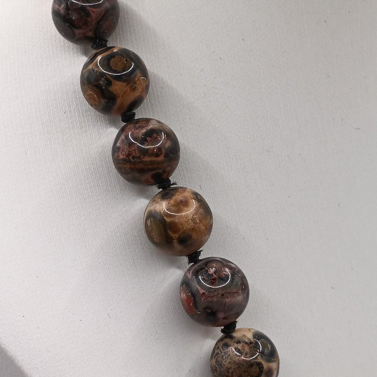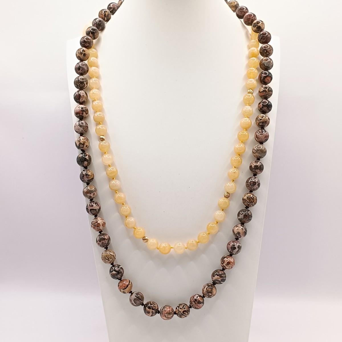 LOT 25: Leopard Skin Jasper Stone Bead Necklace w/ Honey-Tone Art Glass Bead Necklace