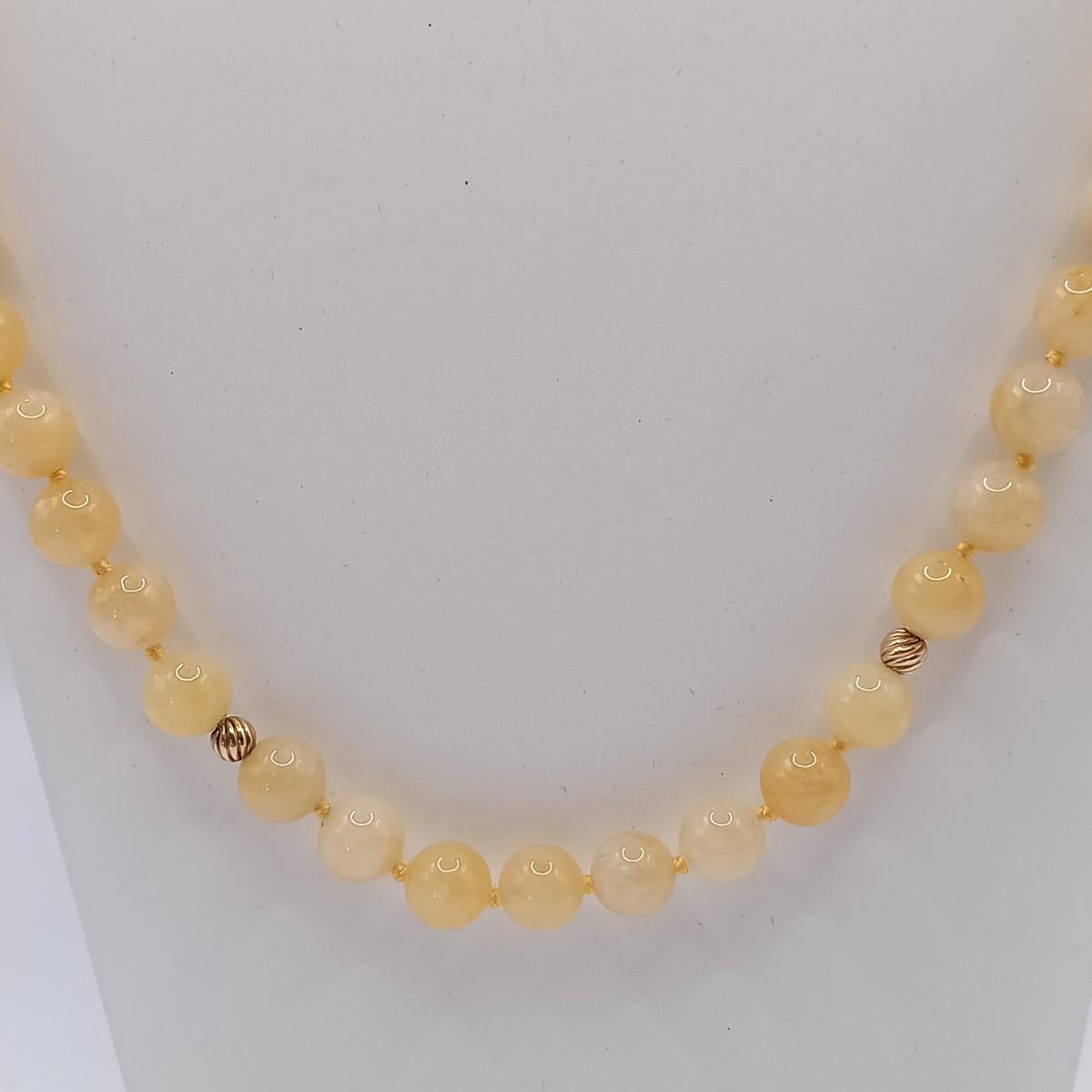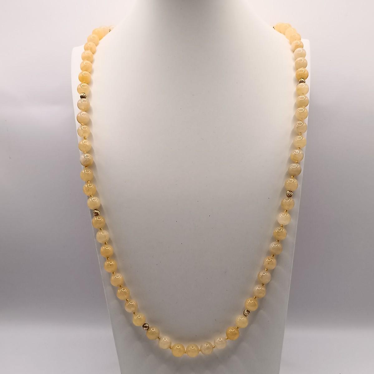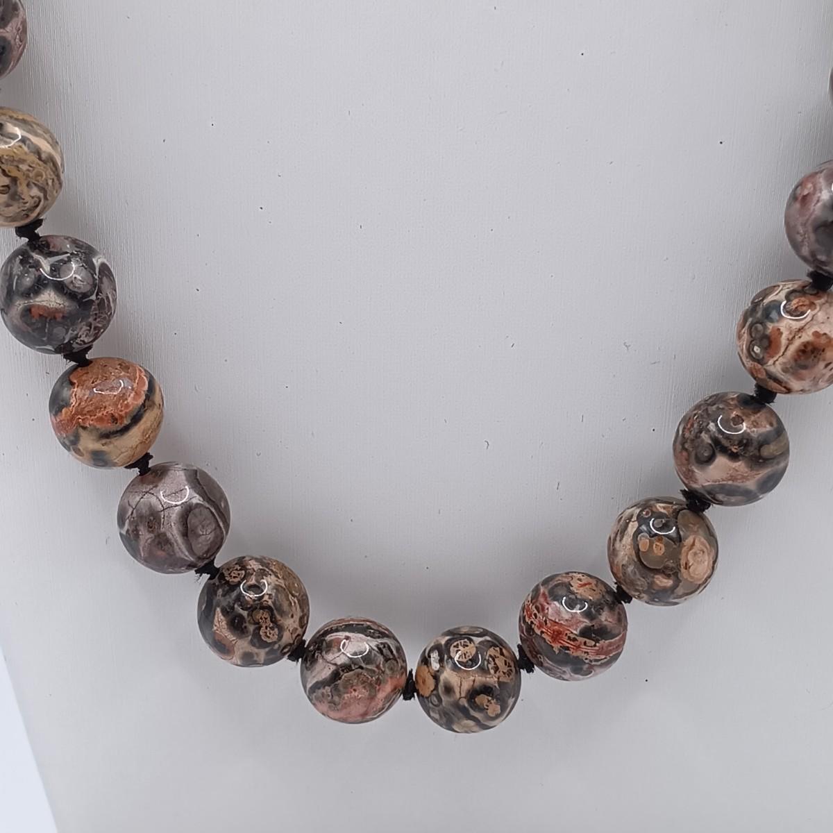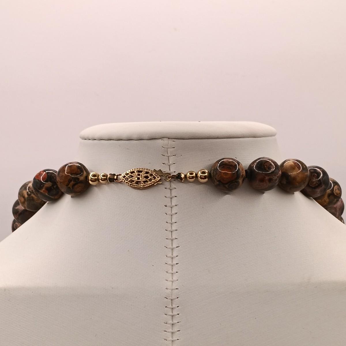 LOT 25: Leopard Skin Jasper Stone Bead Necklace w/ Honey-Tone Art Glass Bead Necklace