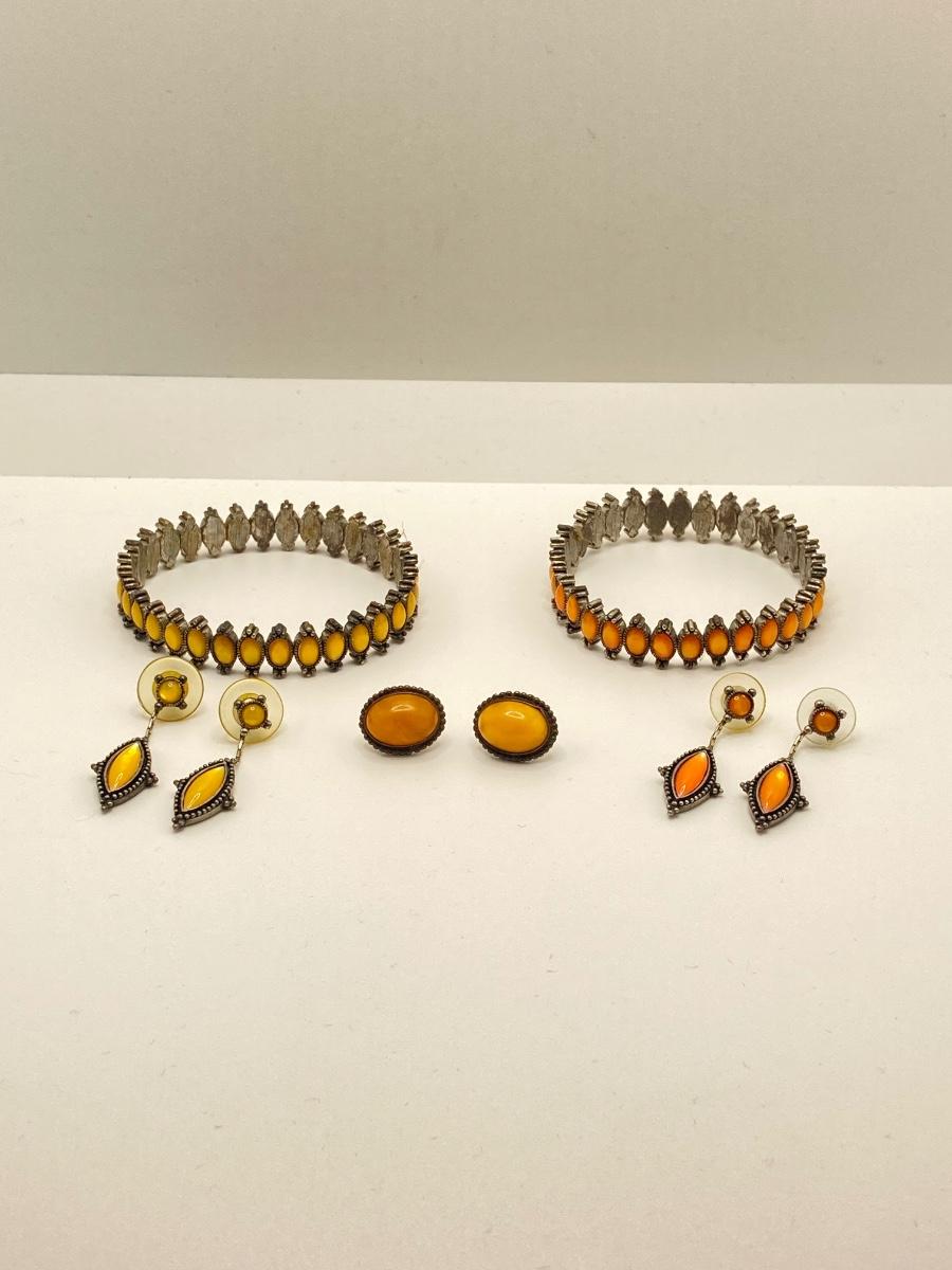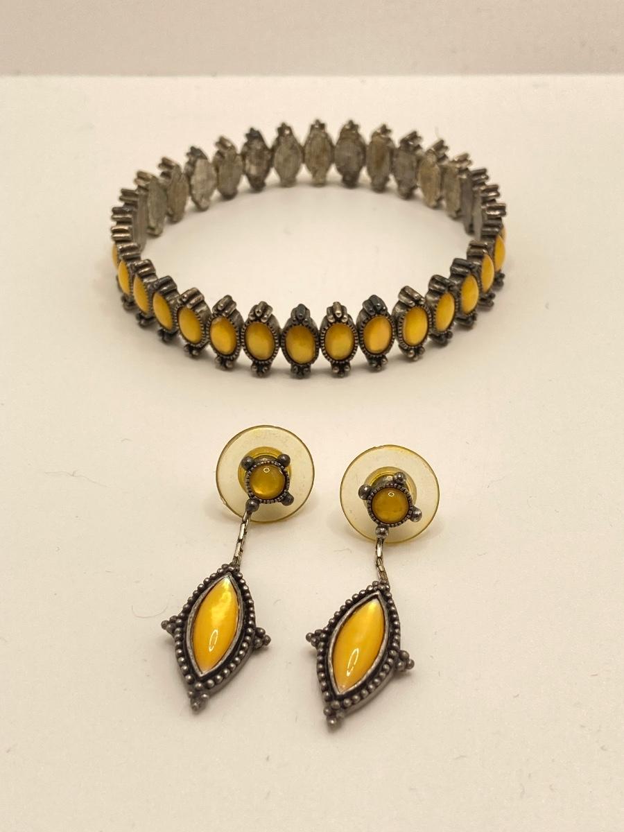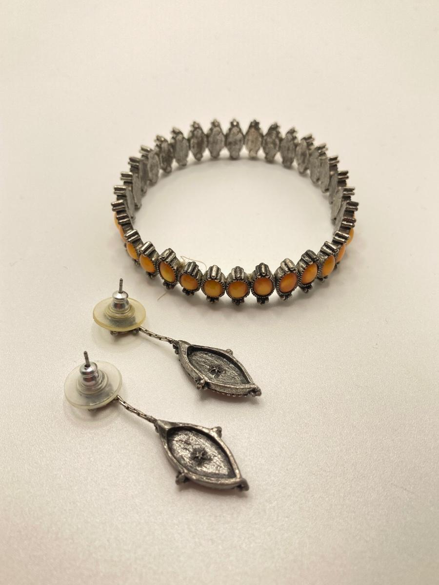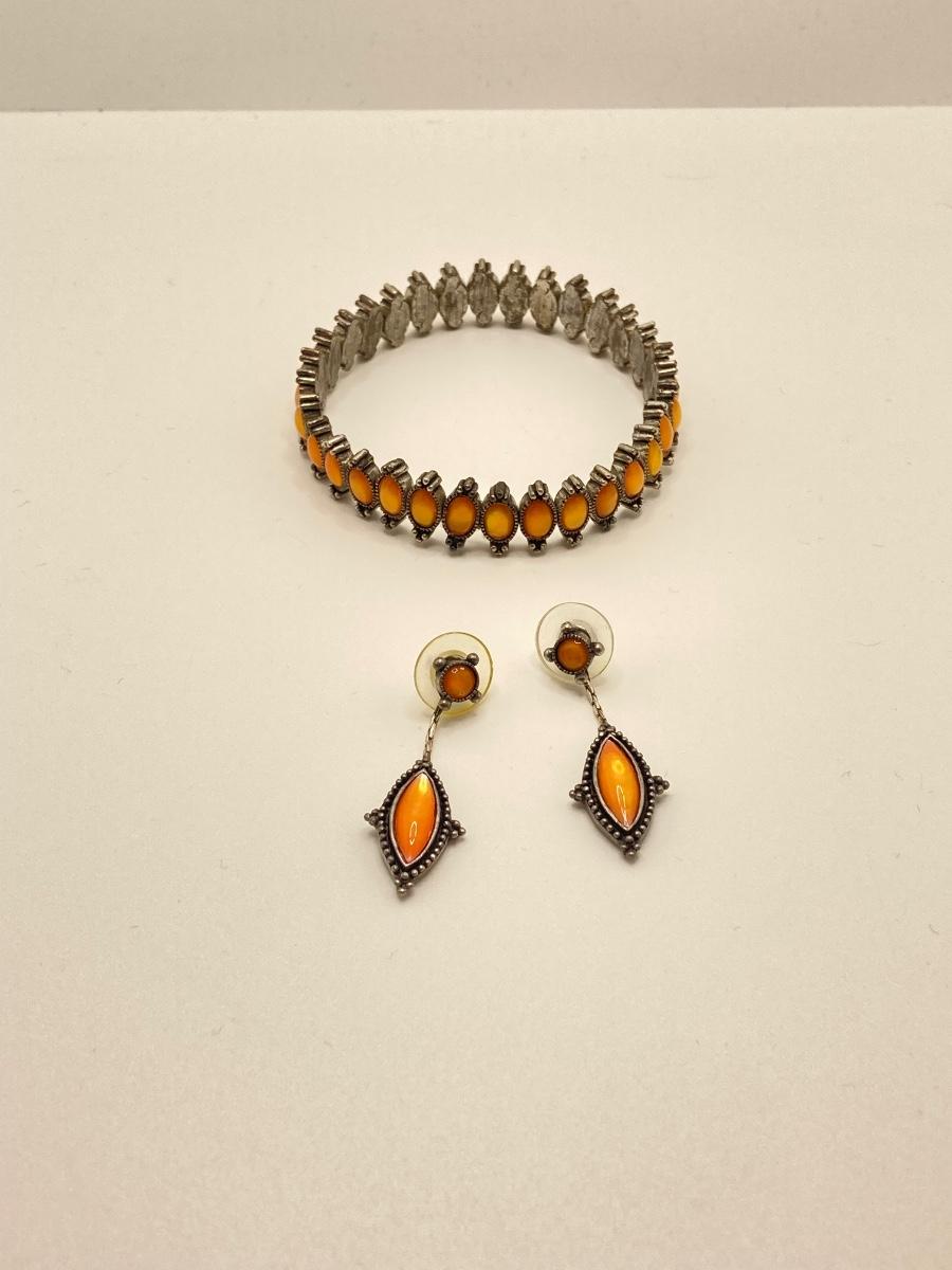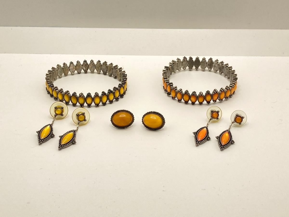 LOT 28: Vintage Stretch Bracelets and Three Pair of Pierced Earrings
