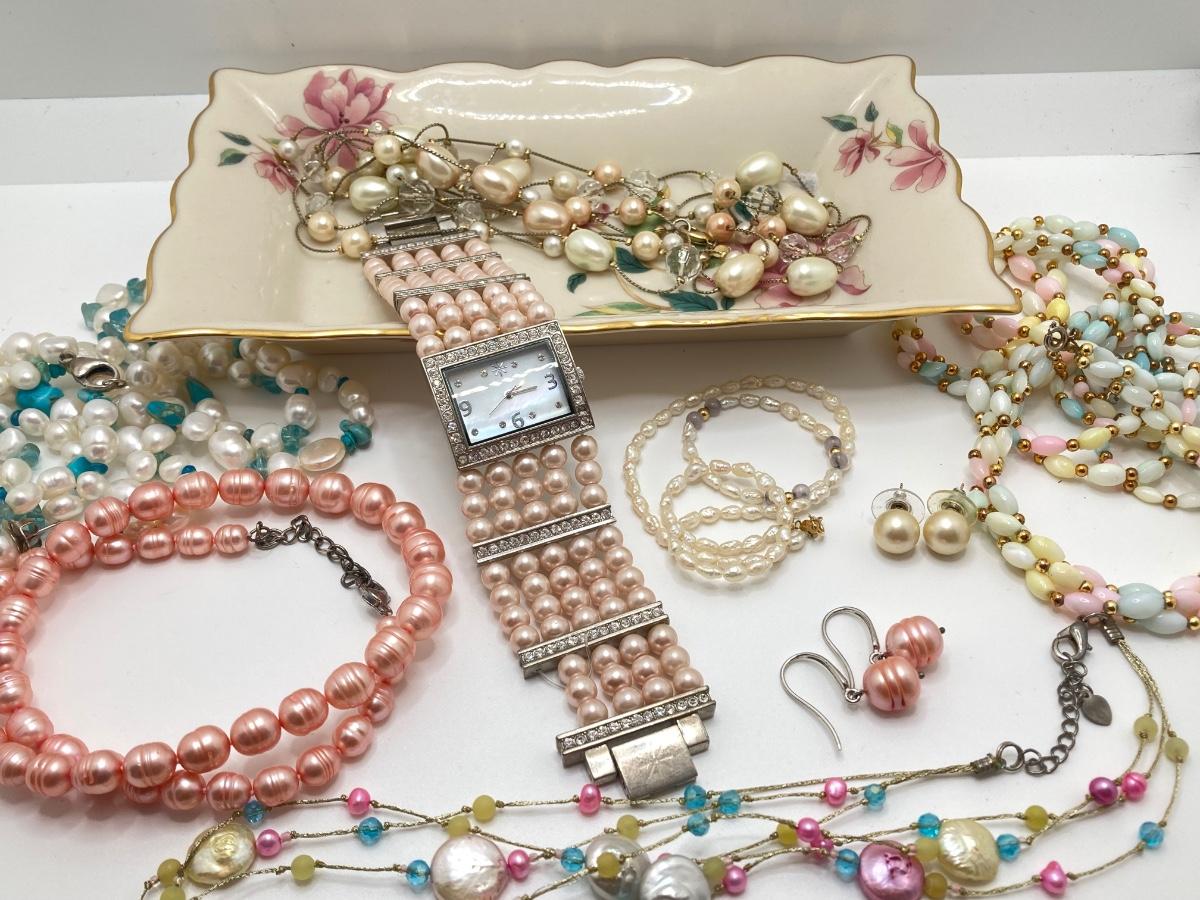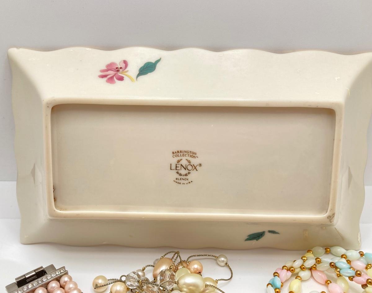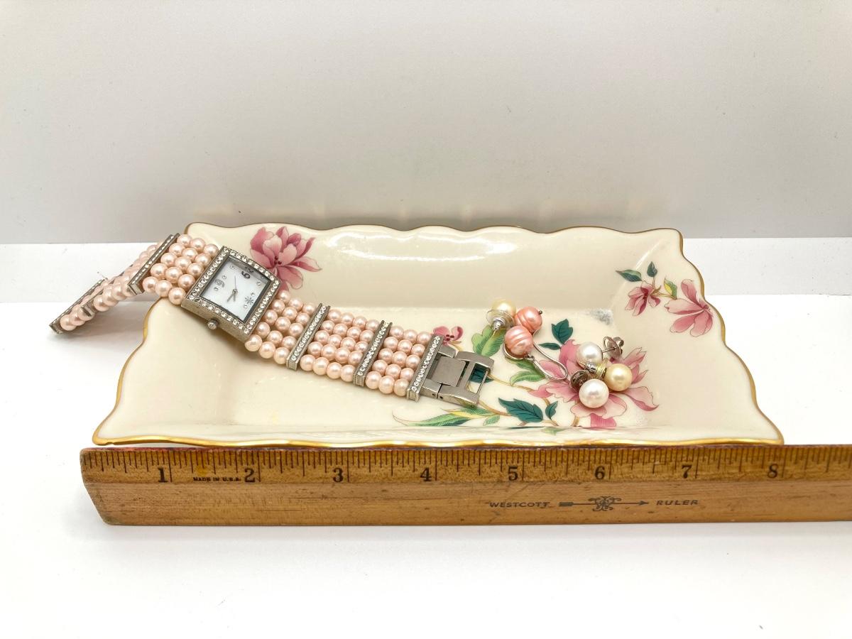 LOT 32: Lenox Barrington Collection Dish with Pearl / Pastel Jewelry and Watch