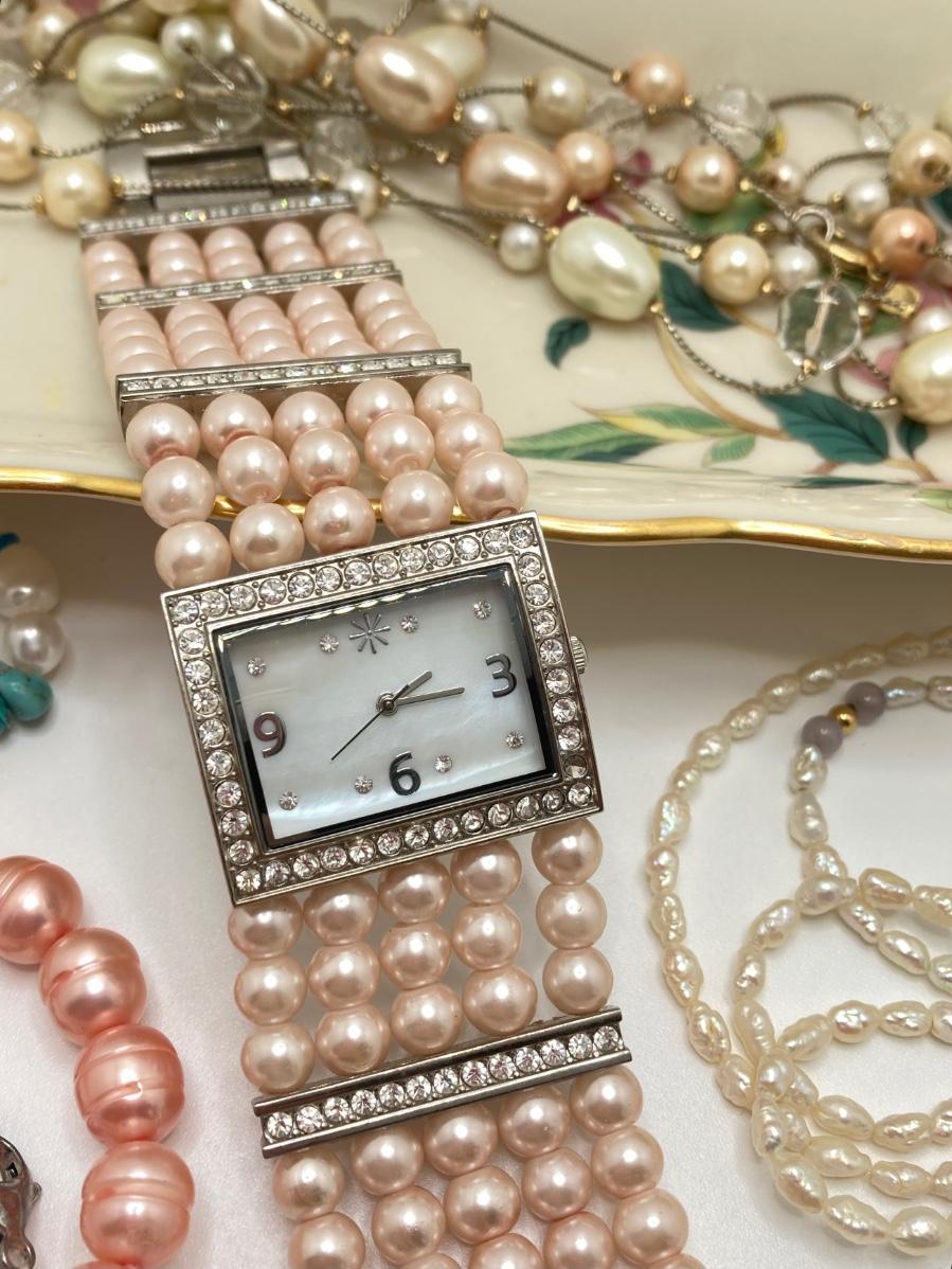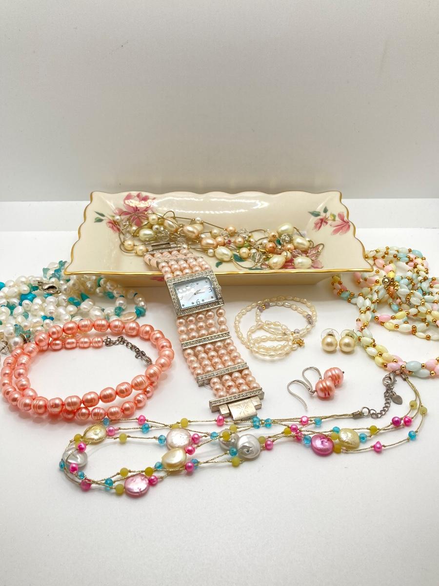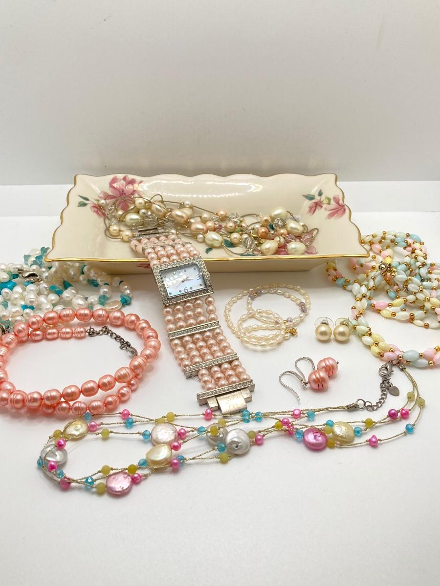 LOT 32: Lenox Barrington Collection Dish with Pearl / Pastel Jewelry and Watch