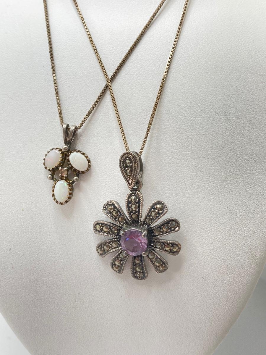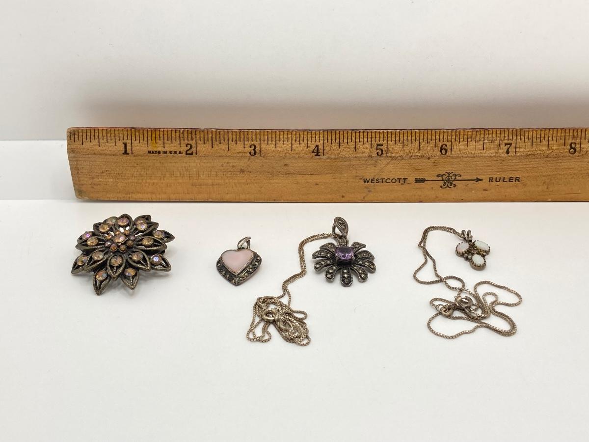 LOT 43: Collection of Vintage Sterling Pendants and Necklaces and More